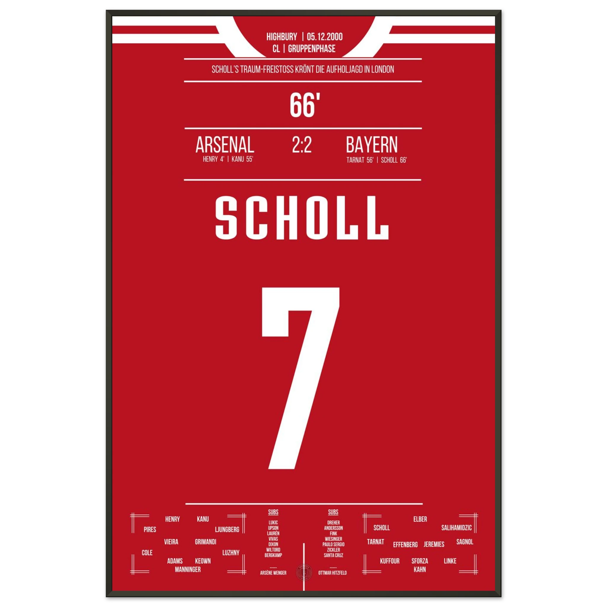 5. Dezember 2000 – Arsenal vs. Bayern 2:2 – Scholls Kunstwerk im Highbury: