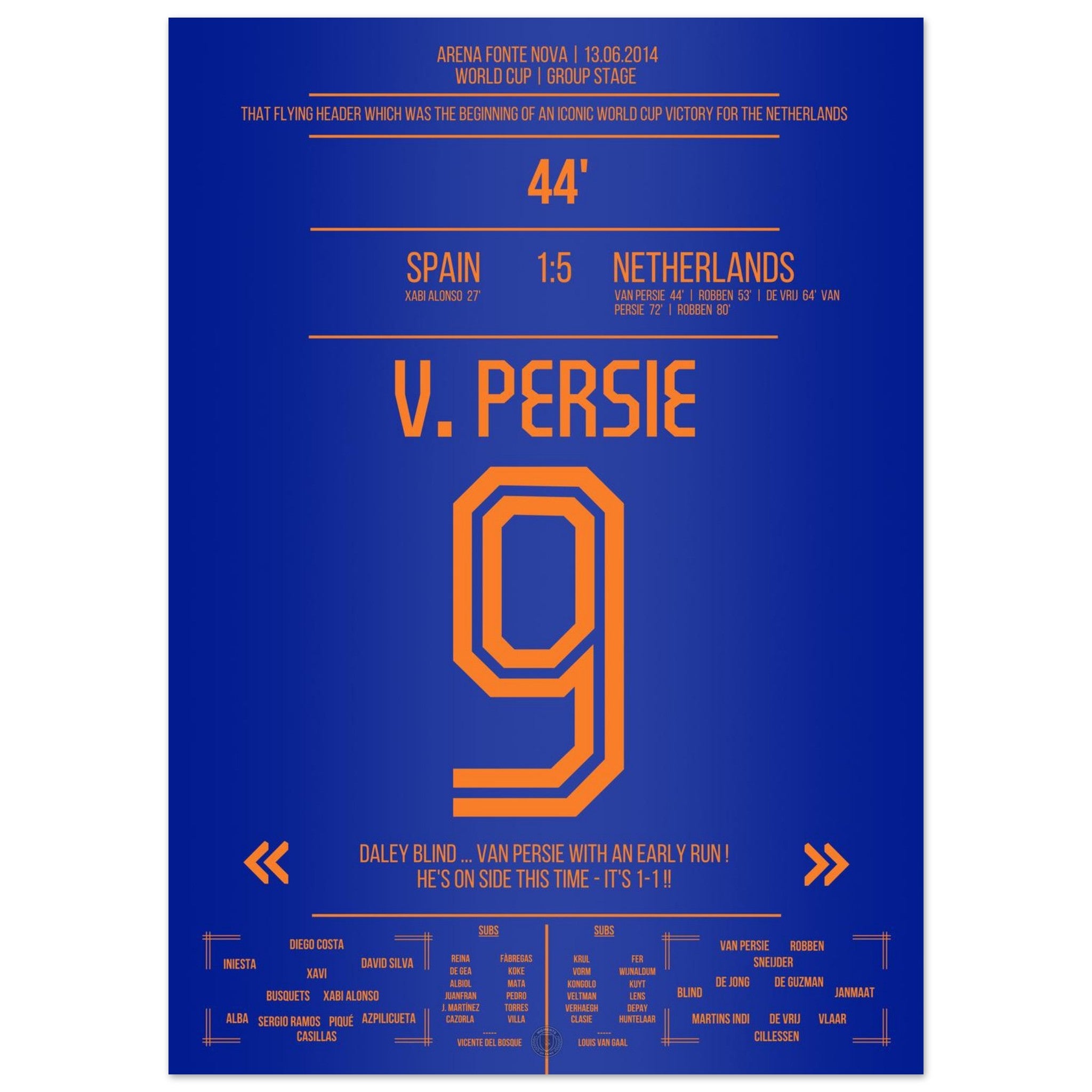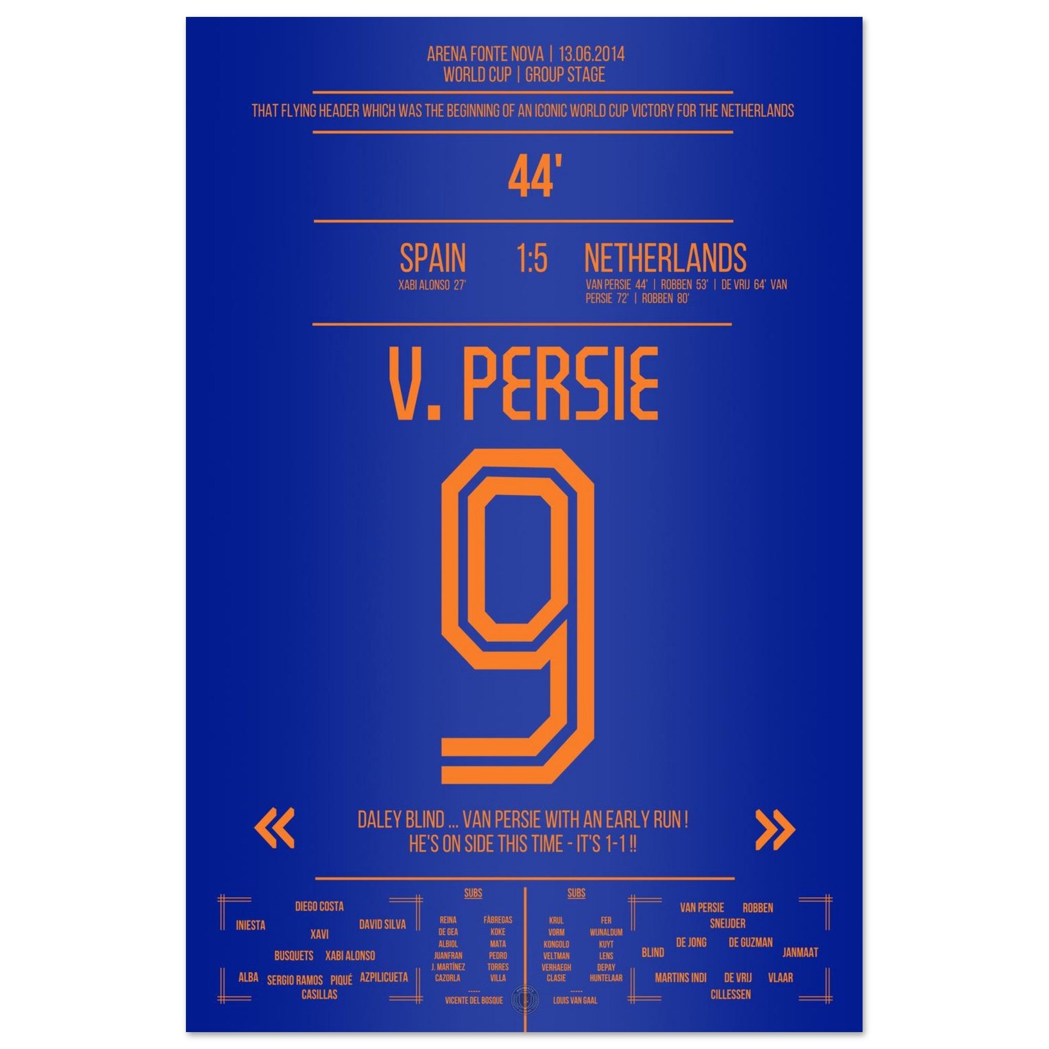 In Salvador schreibt Robin van Persie WM-Geschichte: Mit einem atemberaubenden Flugkopfball über Casillas hinweg gleicht er zum 1:1 aus und leitet Hollands rauschendes 5:1 gegen den Titelverteidiger ein. Ein Tor für die Ewigkeit – pure Eleganz, pure Genialität.