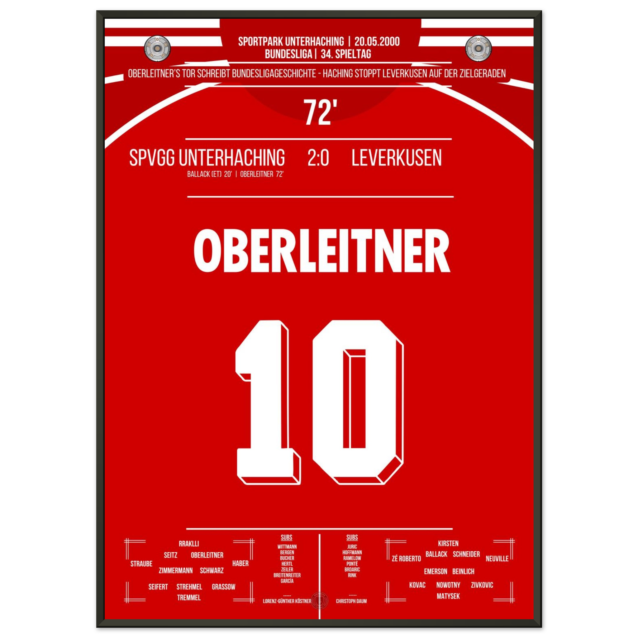 Am letzten Spieltag sorgt Unterhaching für eine der größten Sensationen der Liga-Historie. Markus Oberleitner trifft in der 72. Minute zum 2:0 und stürzt damit Leverkusen im Titelrennen – der Traum vom ersten Meistertitel ist dahin.