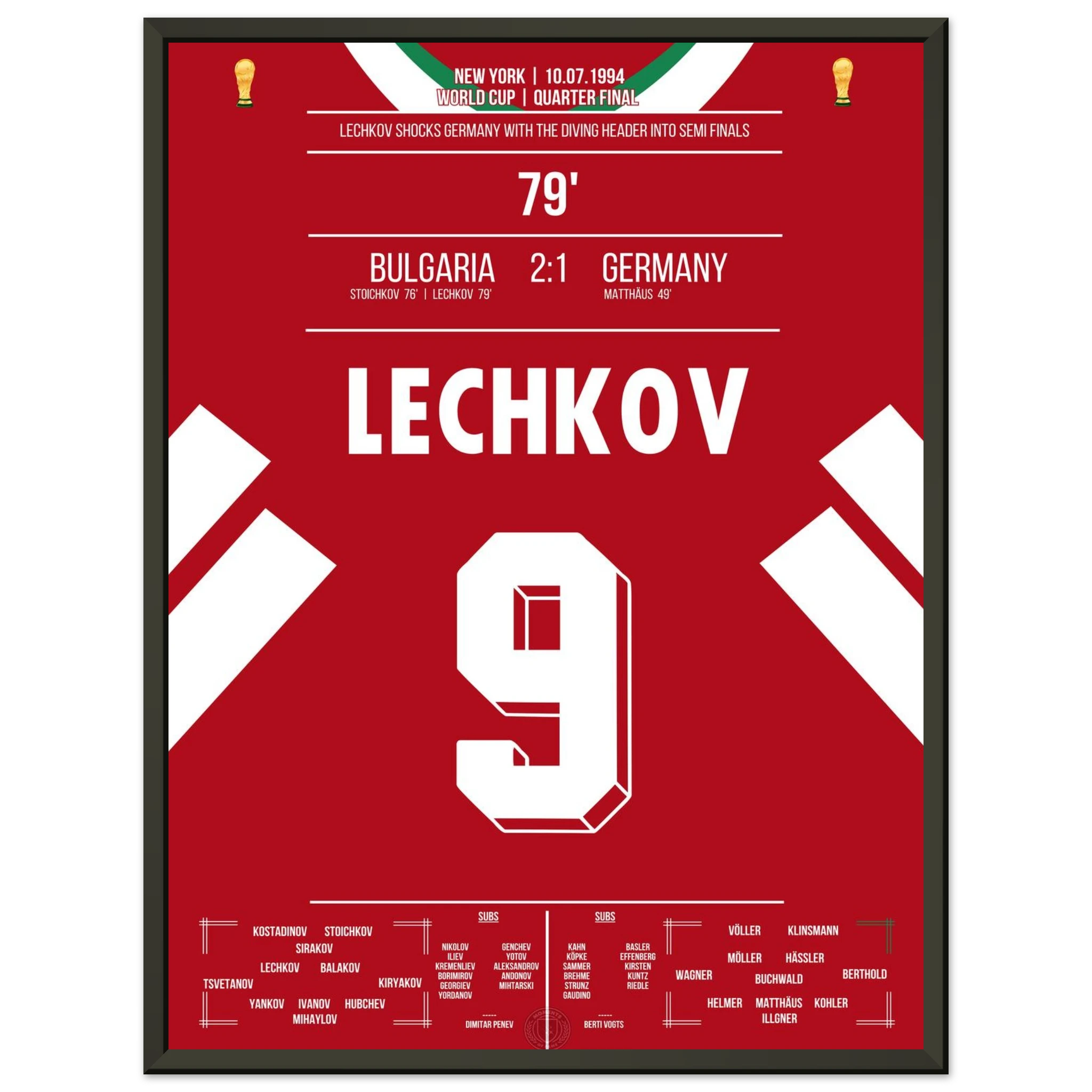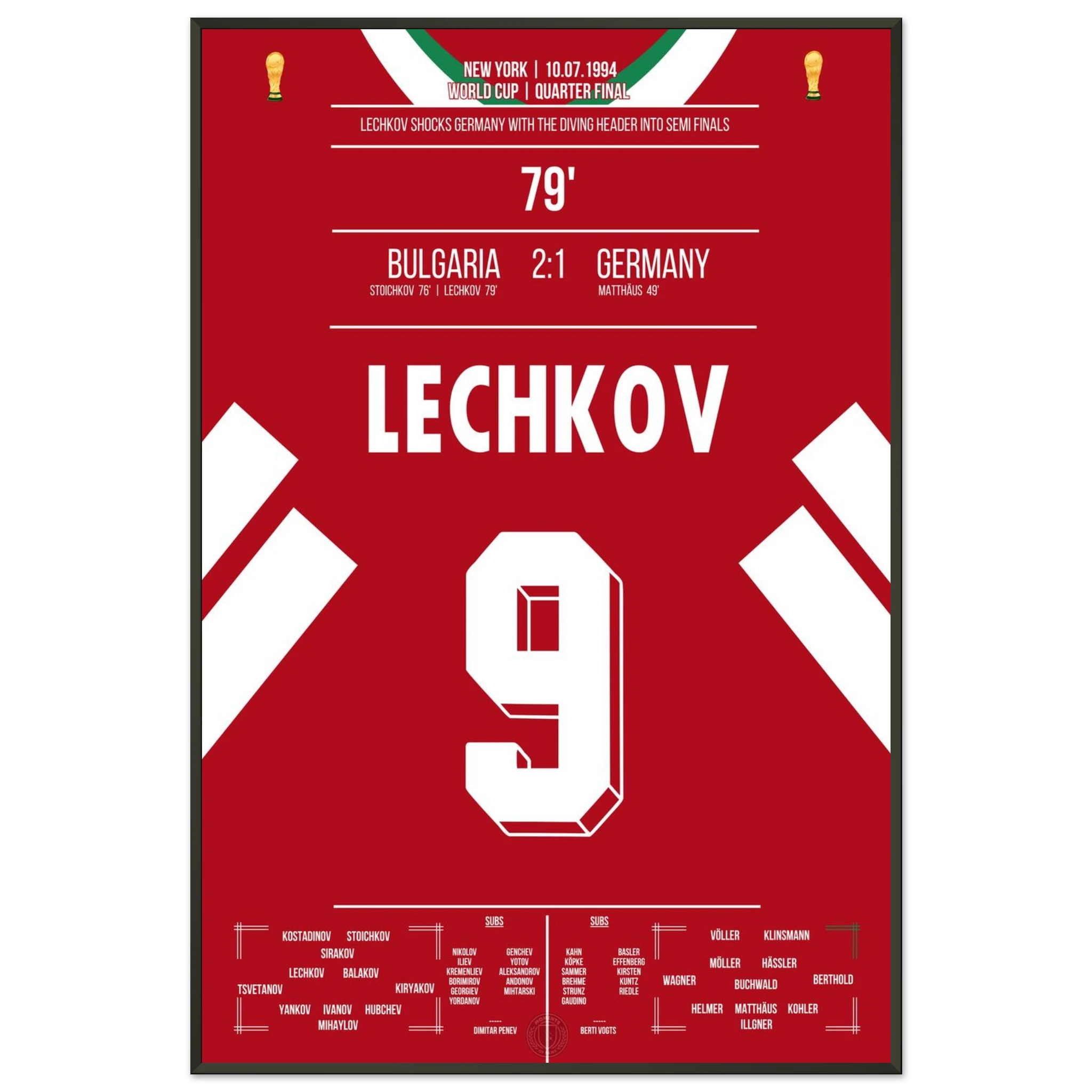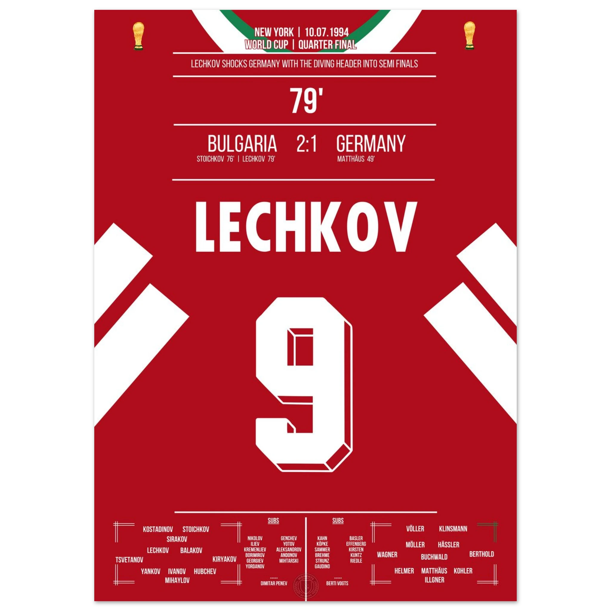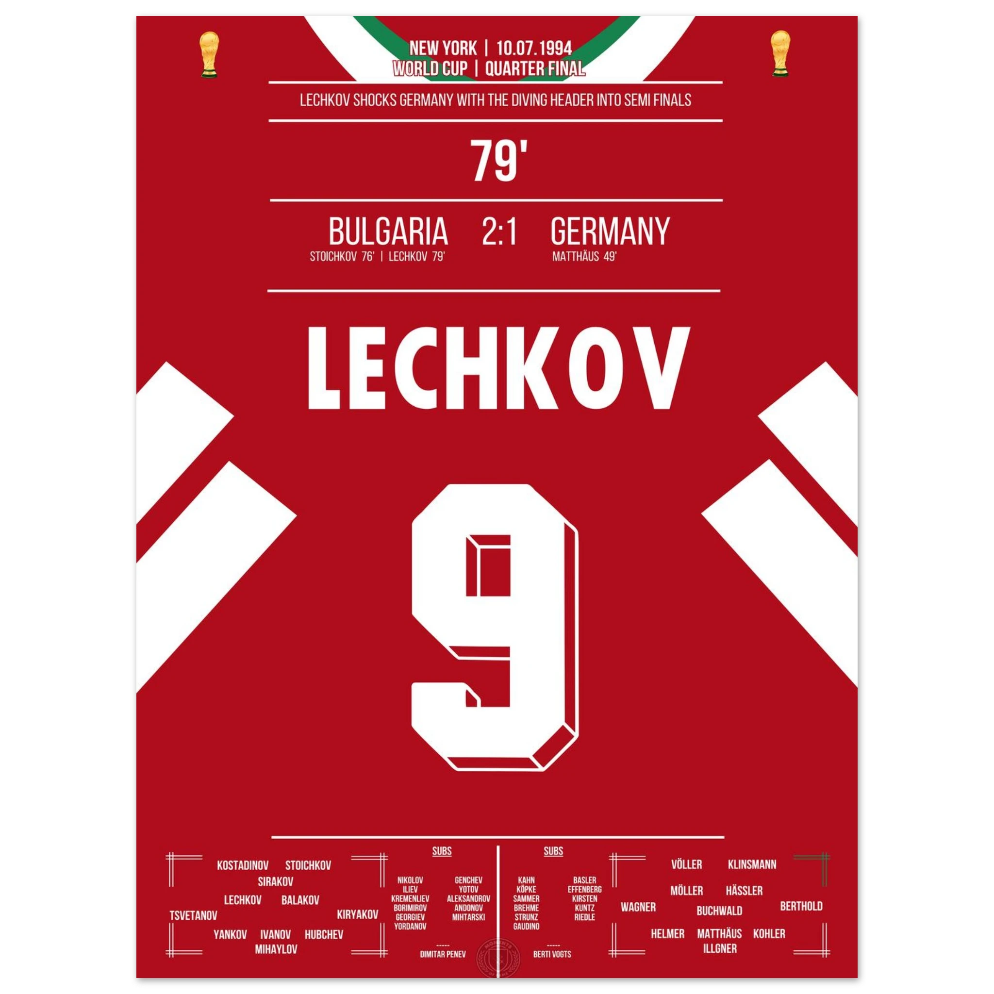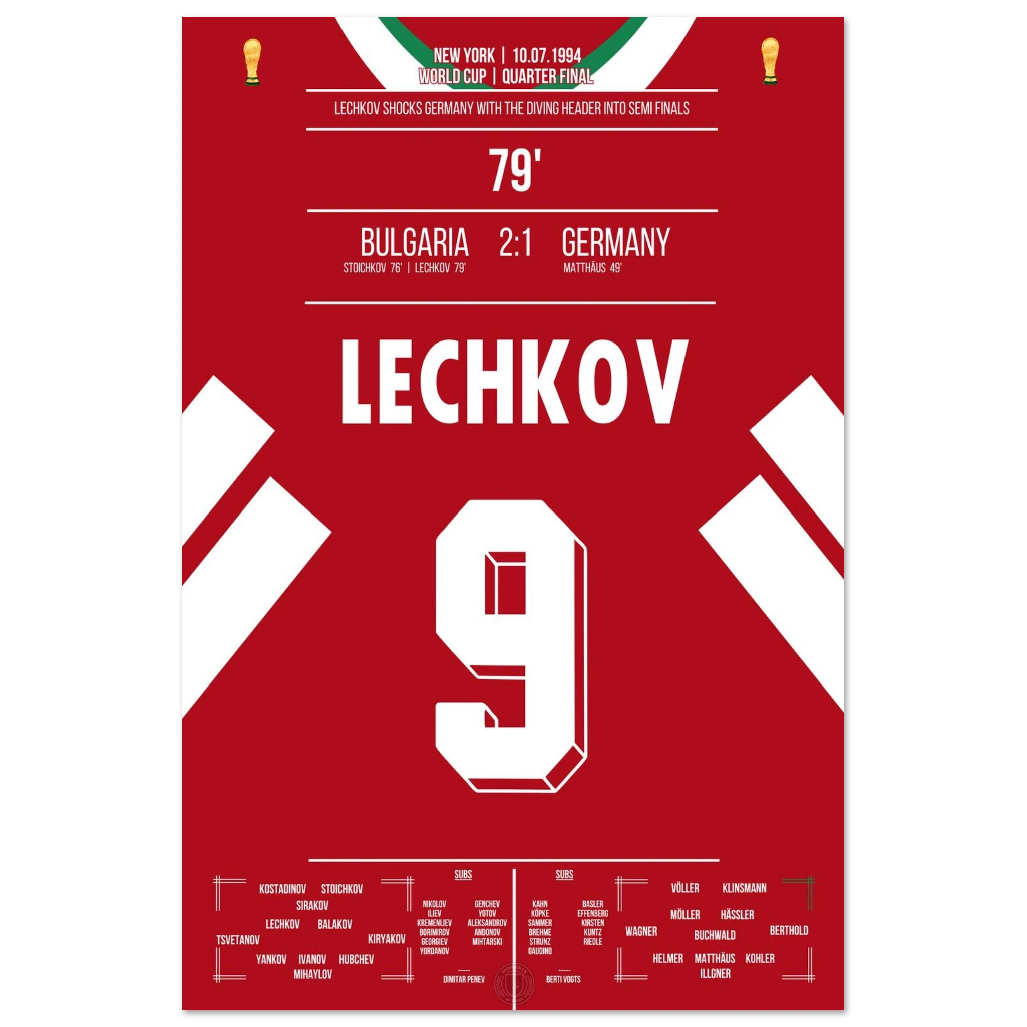 Im WM-Viertelfinale von 1994 schockt Bulgarien den amtierenden Weltmeister. Nachdem Letchkov in der 79. Minute per Flugkopfball trifft, steht das Stadion Kopf – Deutschland ist raus, Bulgarien im Halbfinale! Ein Moment, der zur Legende des bulgarischen Fußballs wurde.