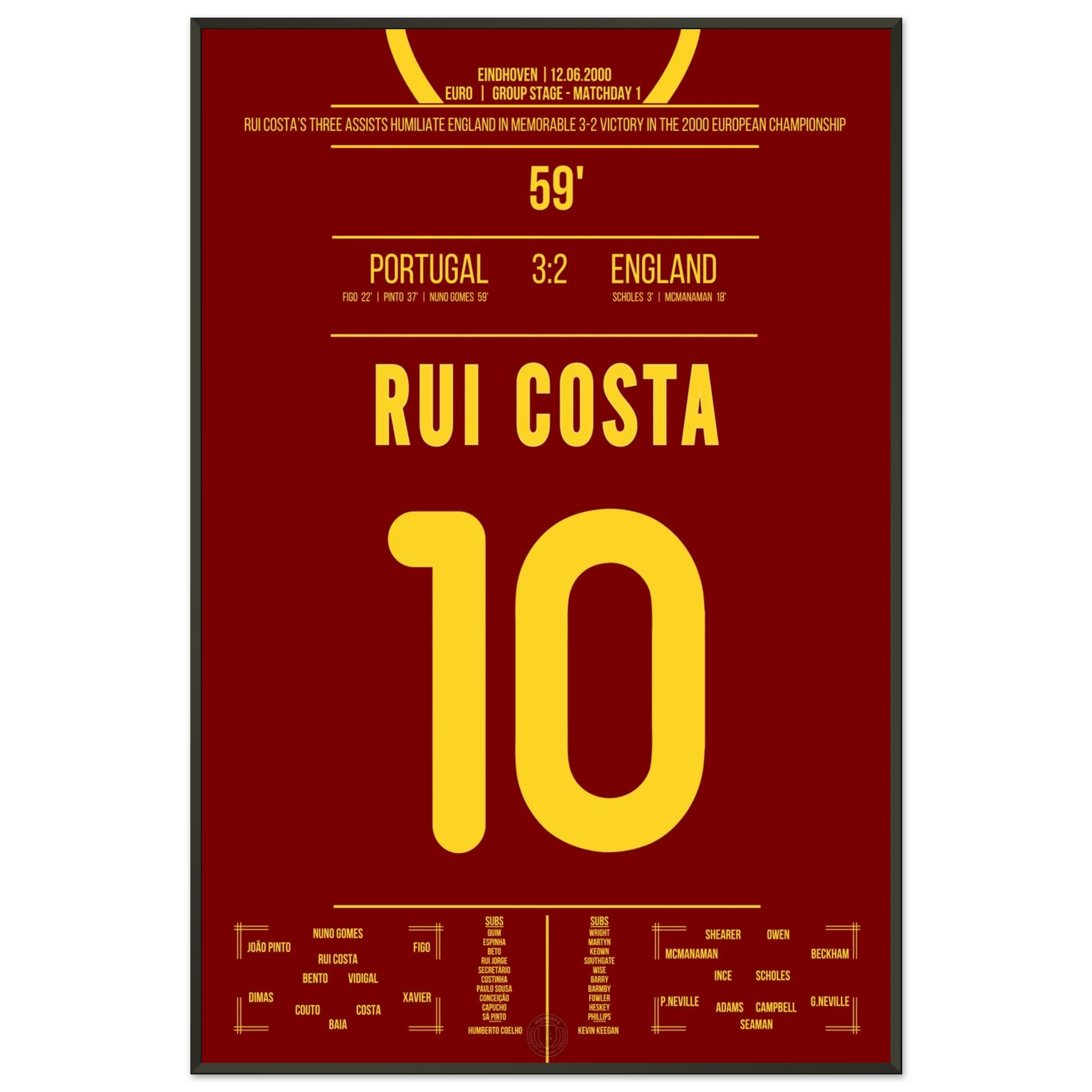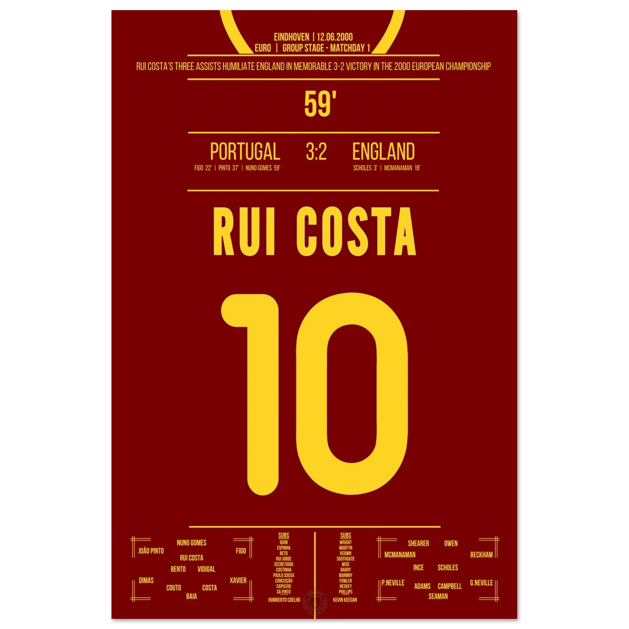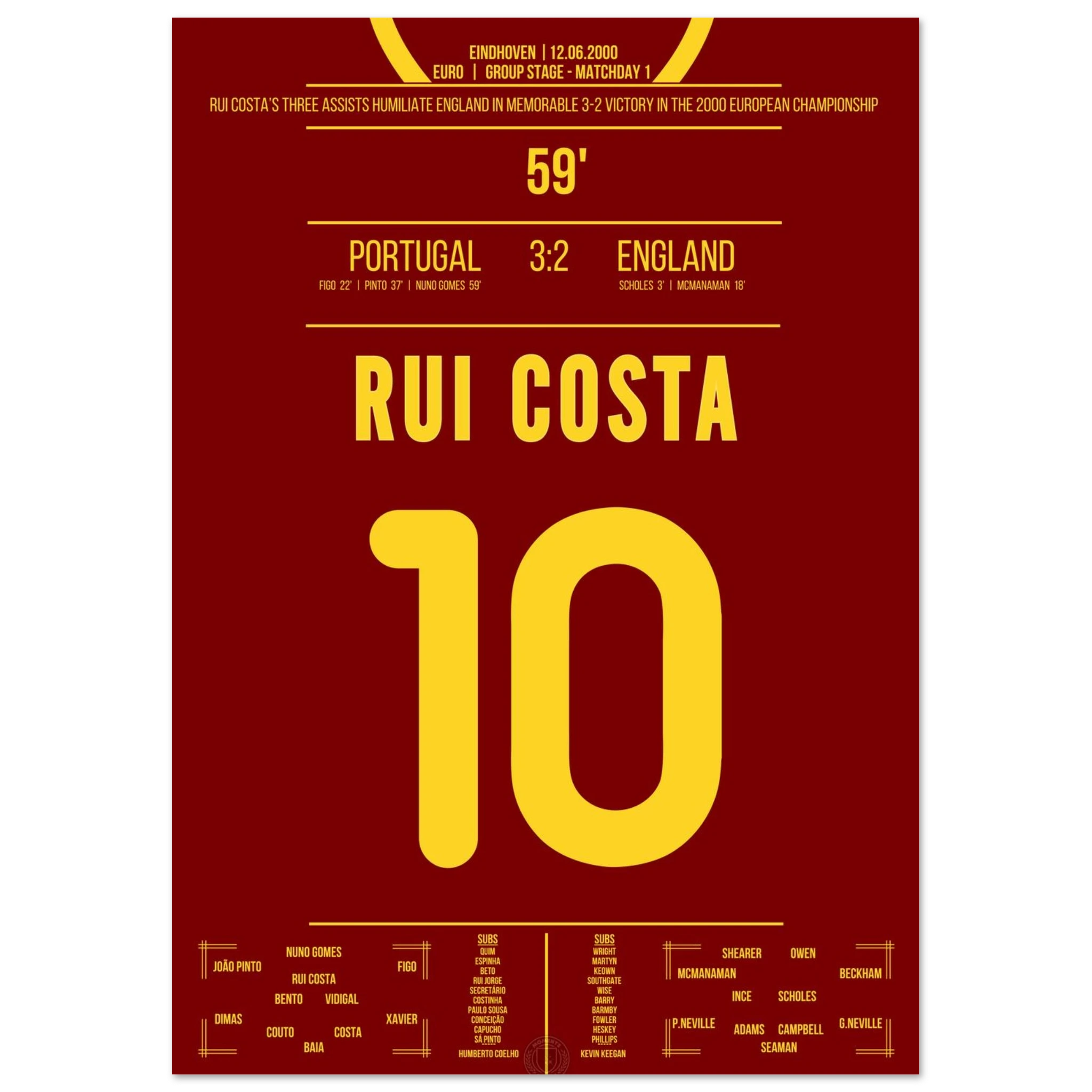 Ein Spiel für die Geschichtsbücher: Portugal dreht ein 0:2 gegen England – und Rui Costa ist der Regisseur des Abends. Mit drei genialen Assists bereitet er alle portugiesischen Treffer vor und wird zum heimlichen Helden des Comebacks.