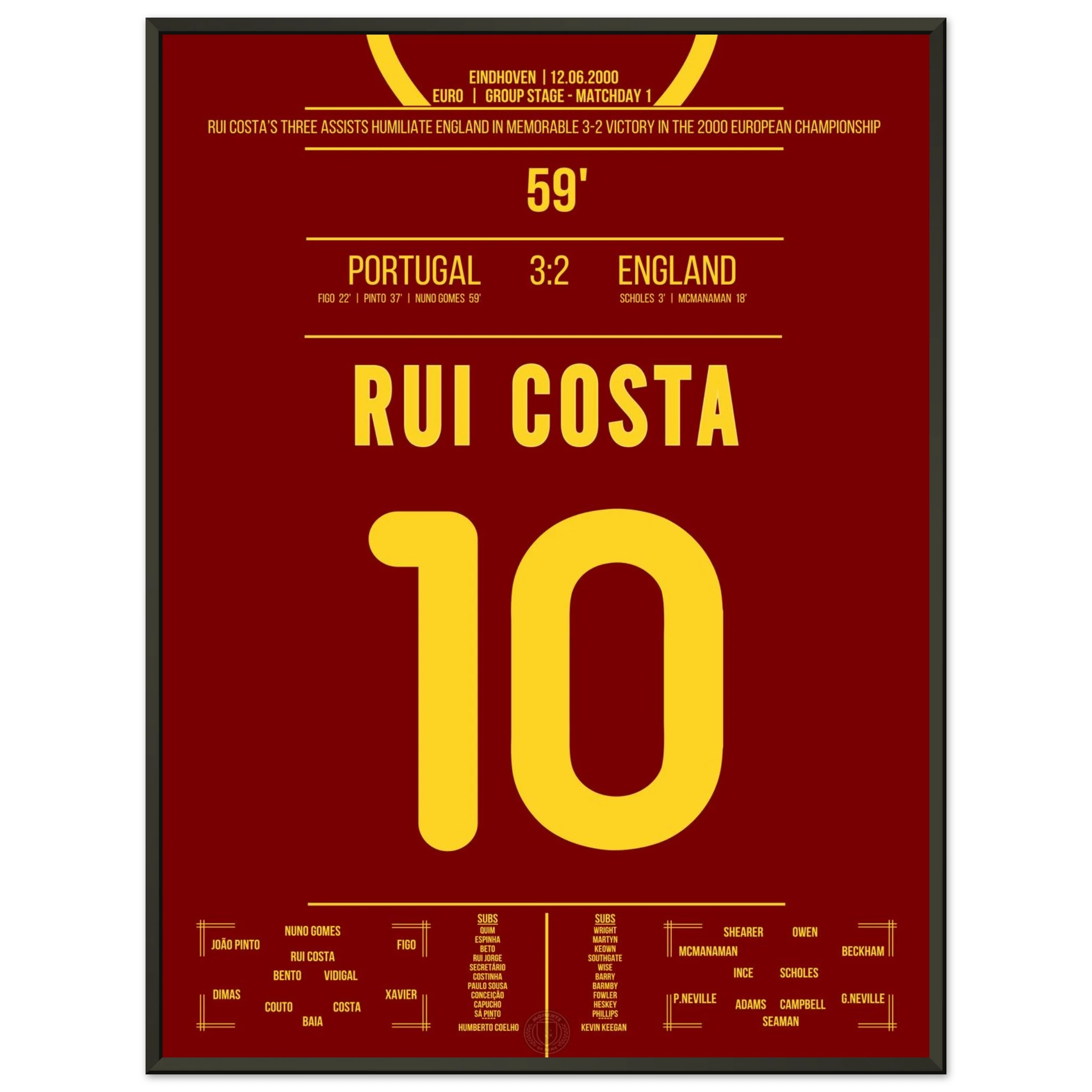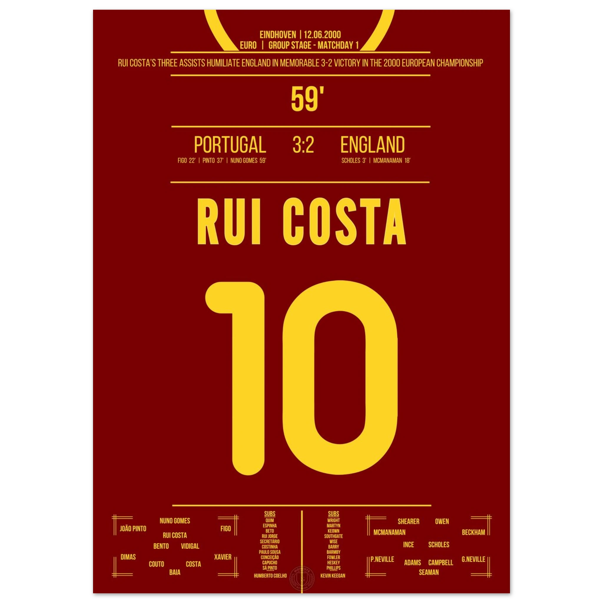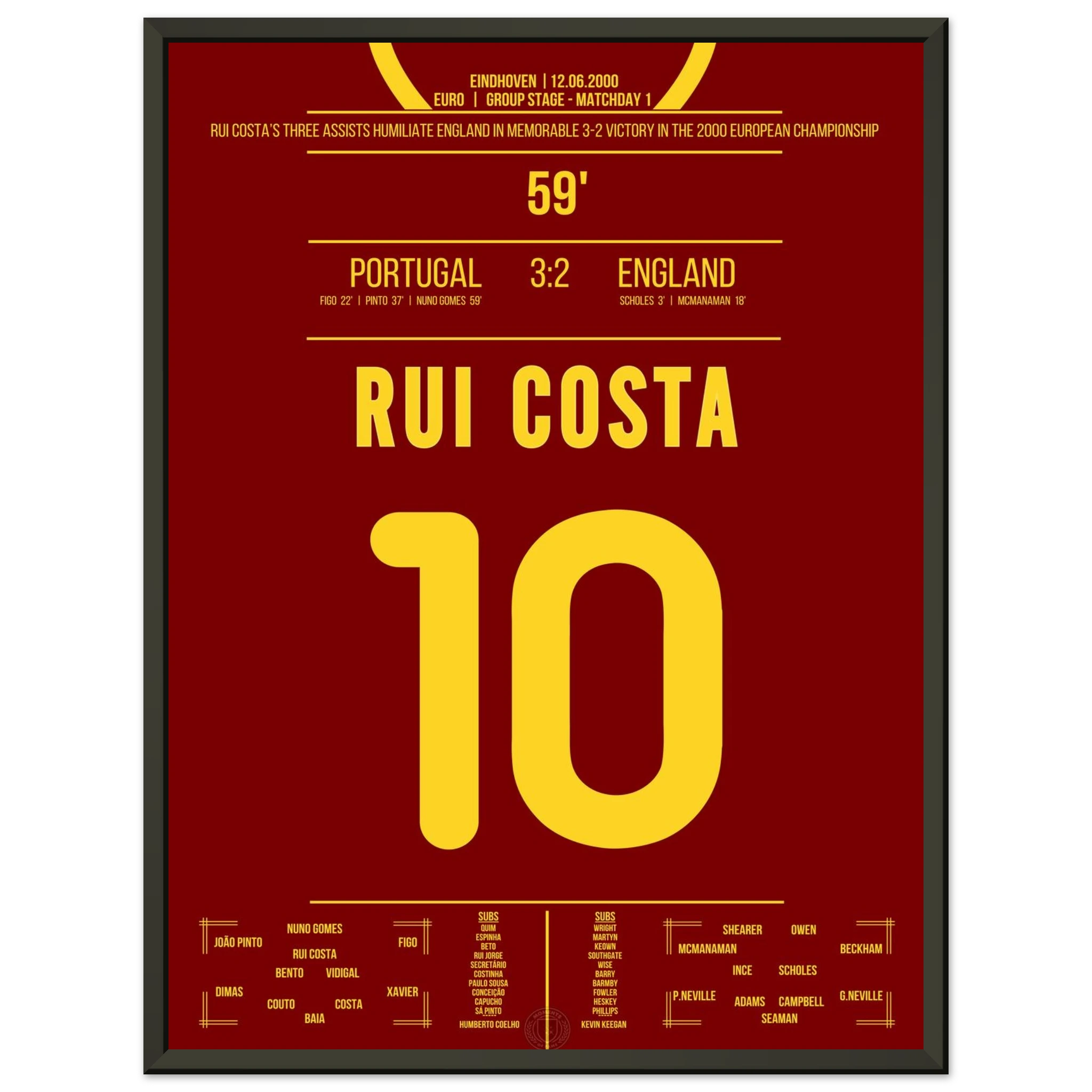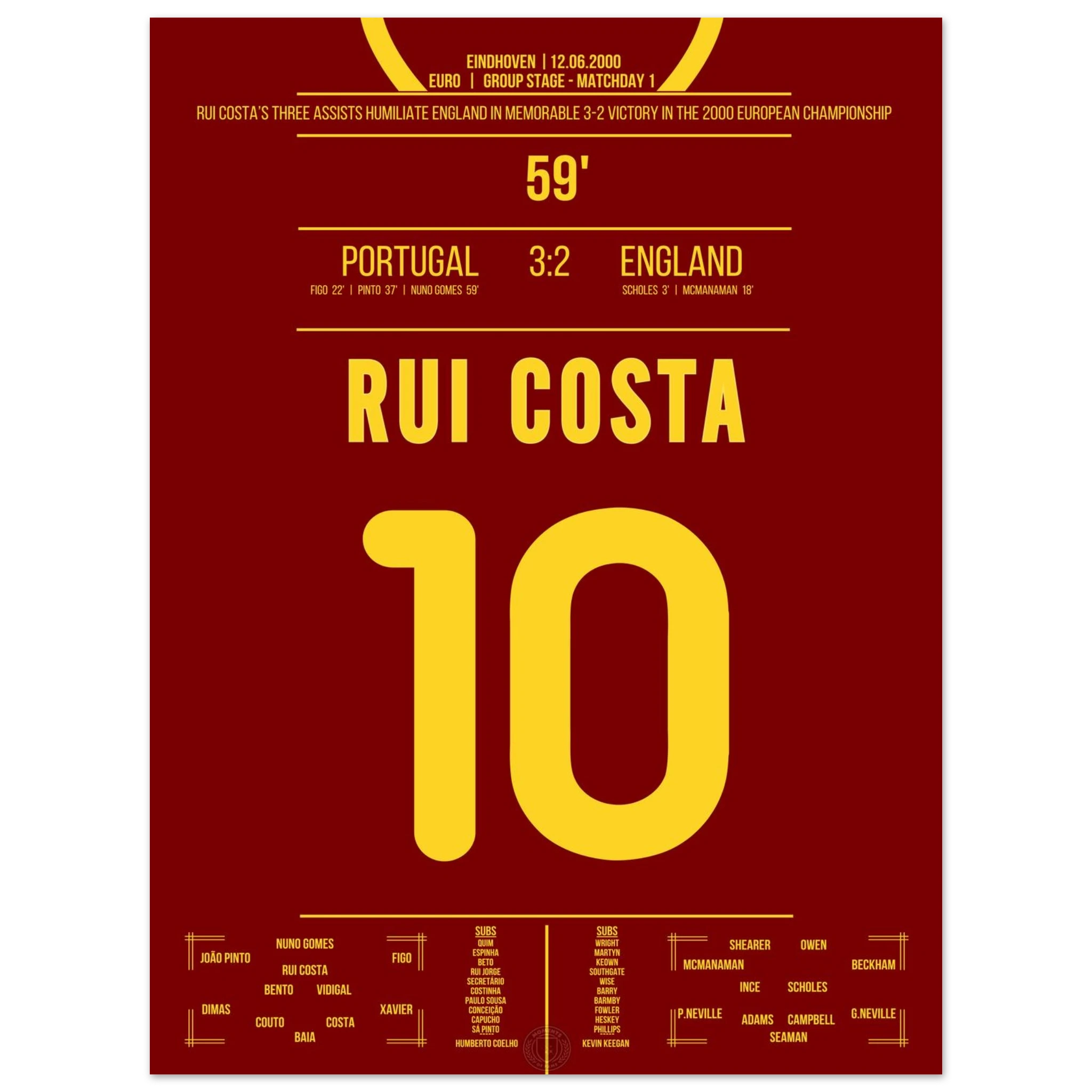 Ein Spiel für die Geschichtsbücher: Portugal dreht ein 0:2 gegen England – und Rui Costa ist der Regisseur des Abends. Mit drei genialen Assists bereitet er alle portugiesischen Treffer vor und wird zum heimlichen Helden des Comebacks.