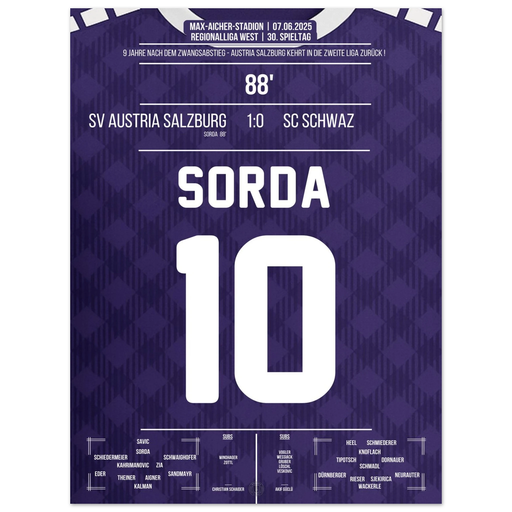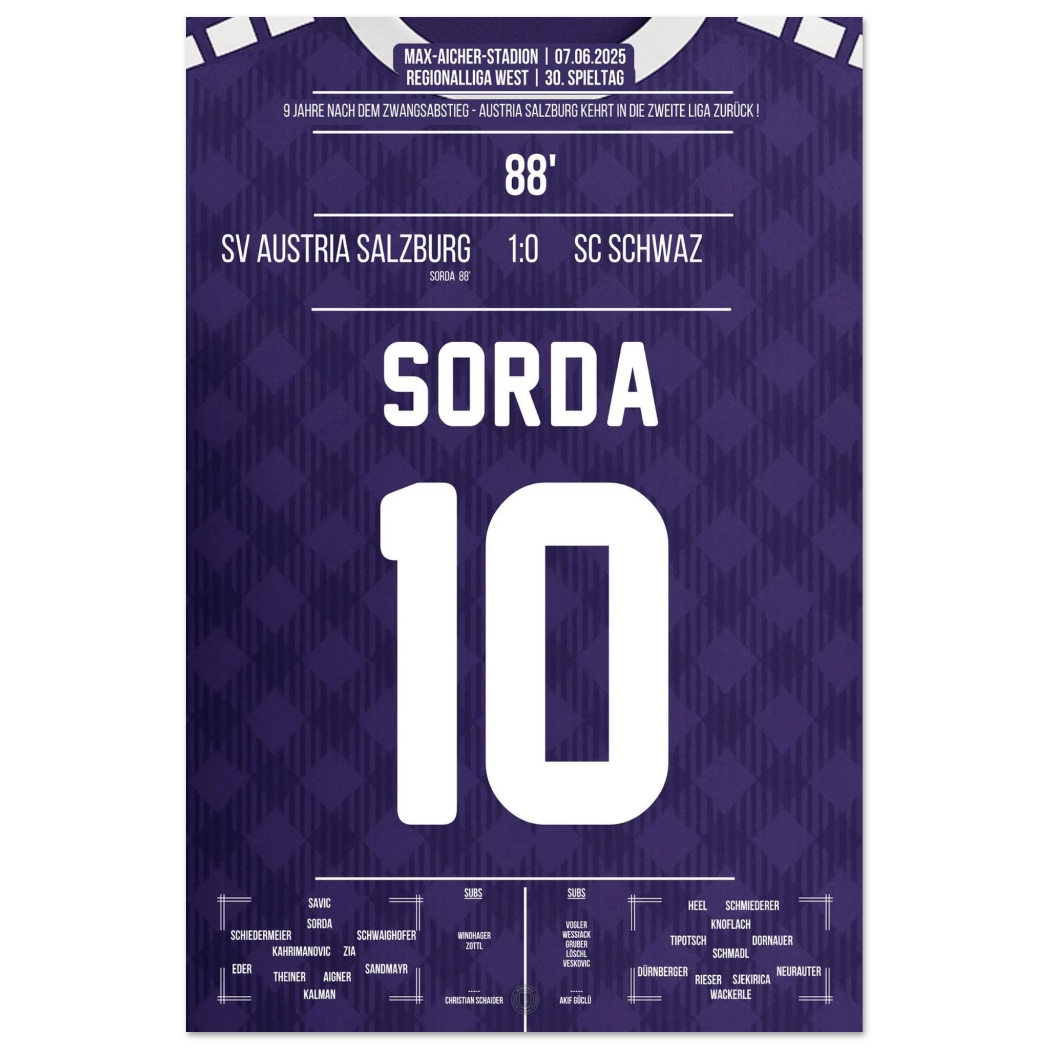 Sorda trifft kurz vor Schluss und Salzburg kehrt zurück in den Profifussball