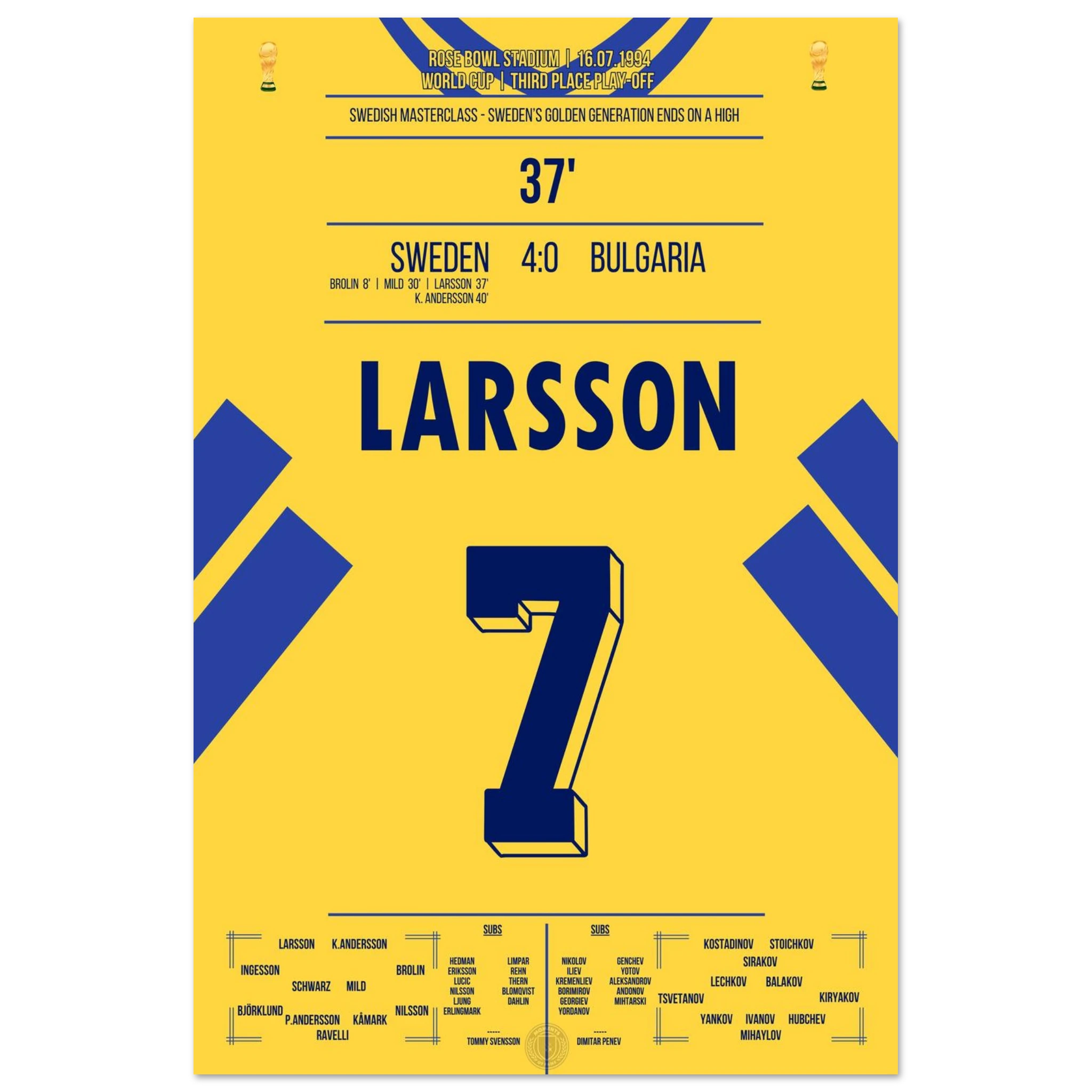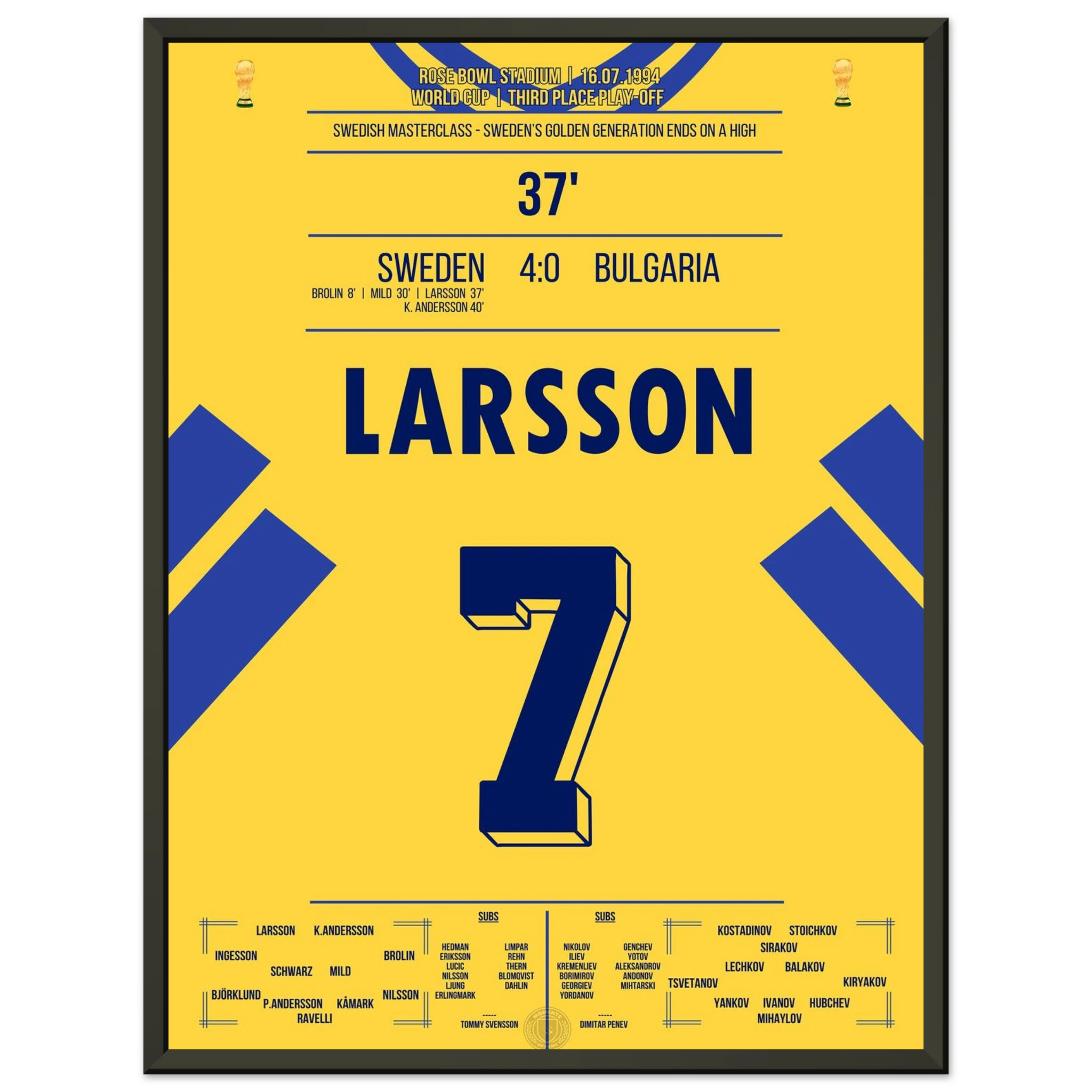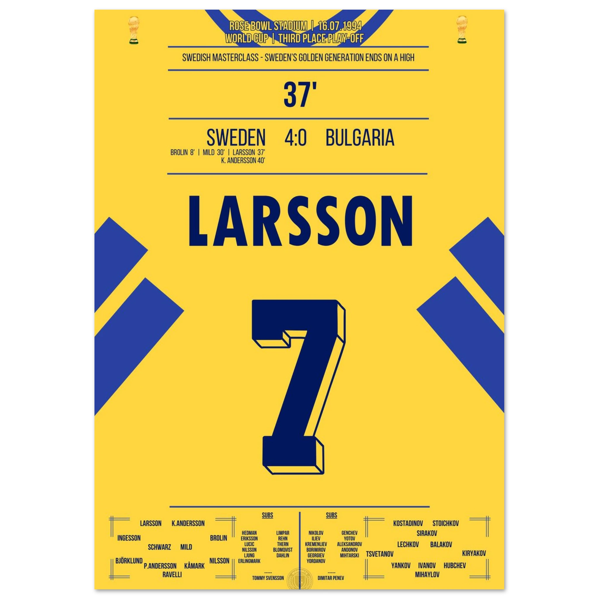 Im Spiel um Platz drei der Weltmeisterschaft schreibt Schweden Fußballgeschichte. Brolin, Mild, Larsson und Kenneth Andersson treffen beim klaren 4:0-Erfolg gegen Bulgarien und sichern ihrem Land die beste WM-Platzierung seit 1958. Ein rauschendes Finale eines unvergesslichen Turniers.