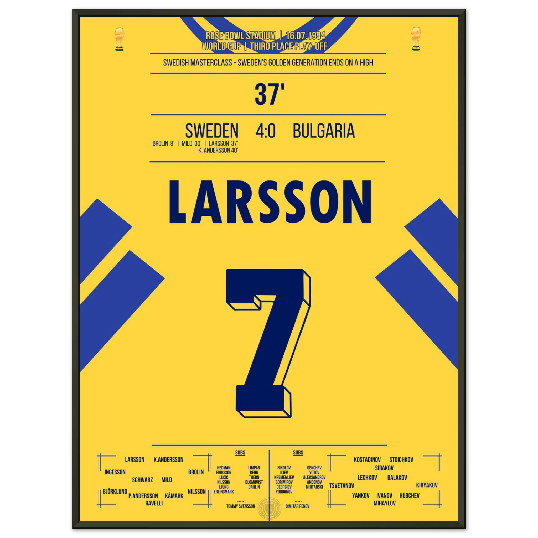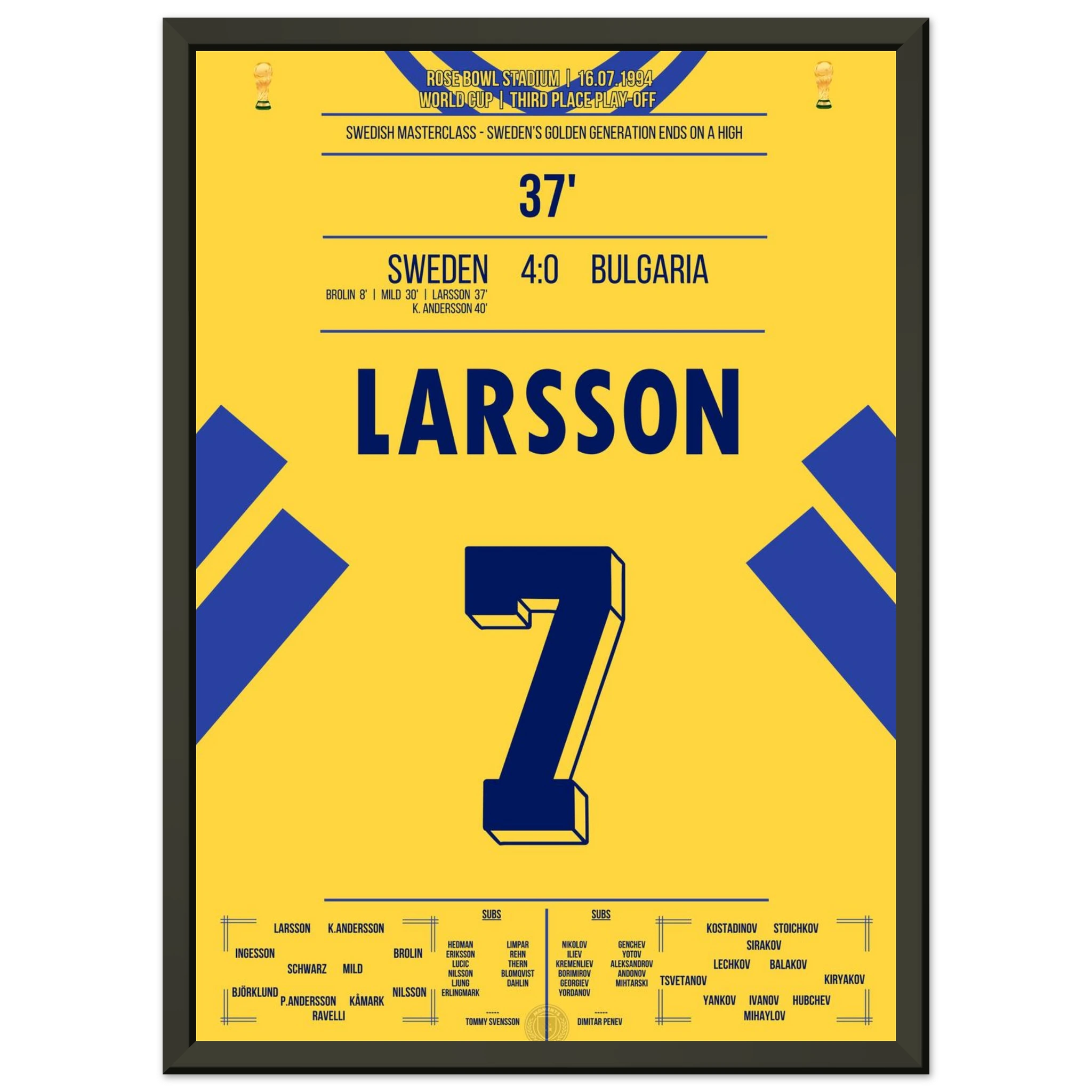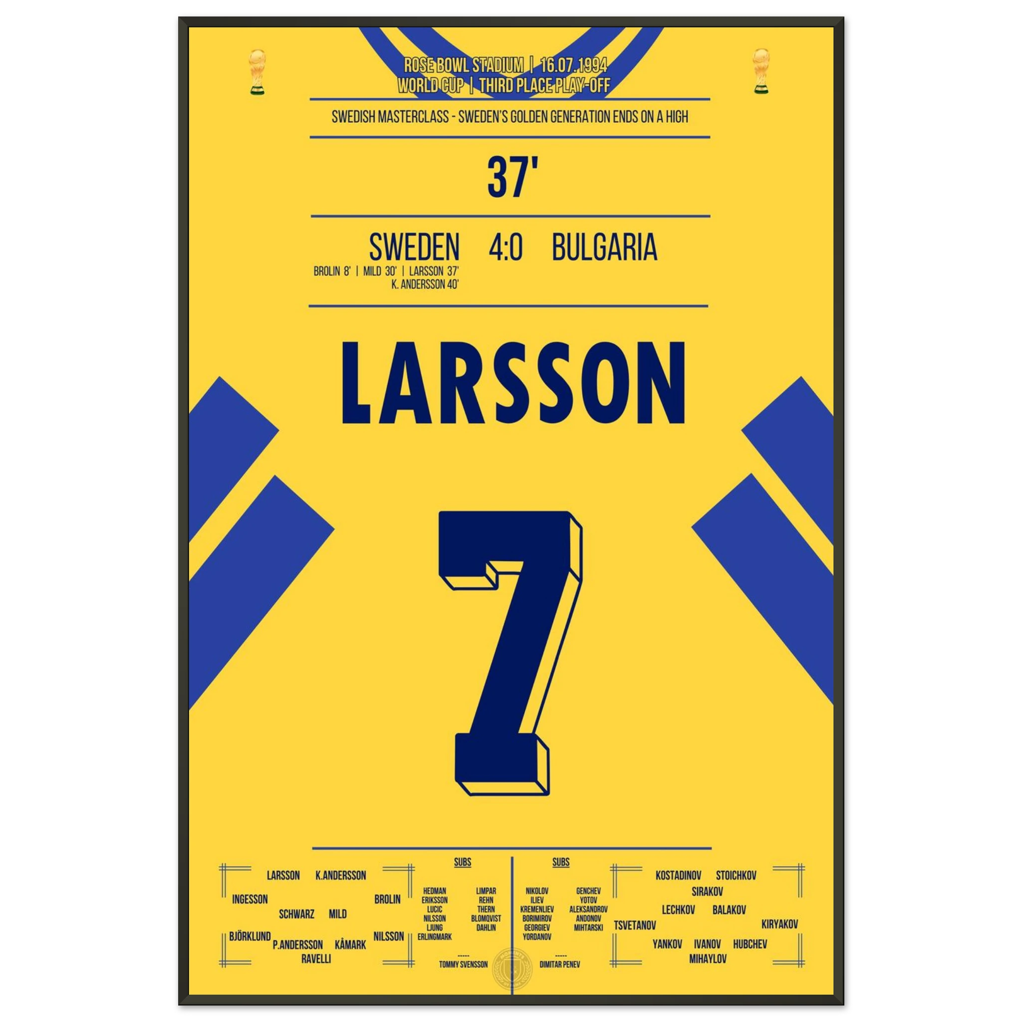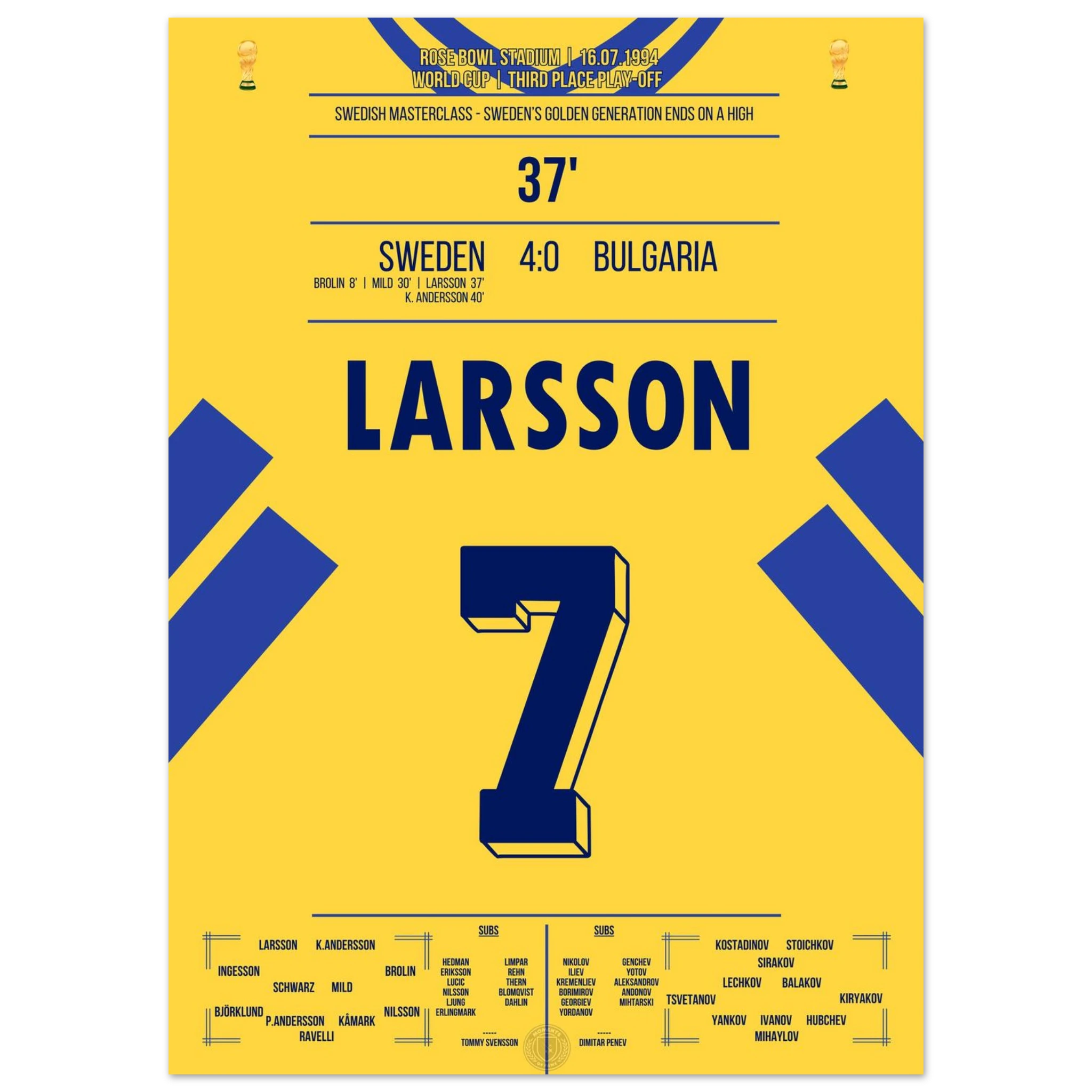Im Spiel um Platz drei der Weltmeisterschaft schreibt Schweden Fußballgeschichte. Brolin, Mild, Larsson und Kenneth Andersson treffen beim klaren 4:0-Erfolg gegen Bulgarien und sichern ihrem Land die beste WM-Platzierung seit 1958. Ein rauschendes Finale eines unvergesslichen Turniers.