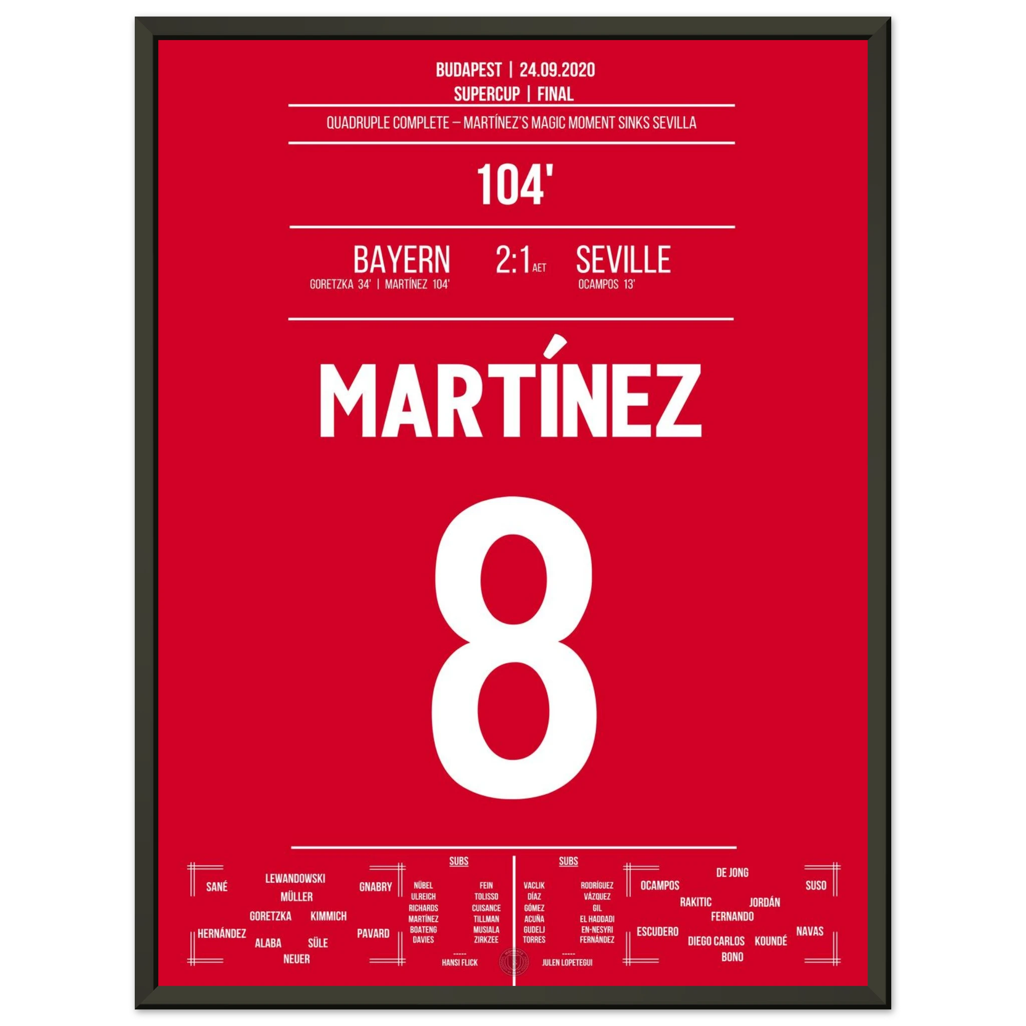Im europäischen Supercup sorgt Javi Martínez in der 104. Minute für die Entscheidung: Nach einer Ecke steigt er am höchsten und nickt zum 2:1 ein. Mit seinem Treffer sichert er Bayern den vierten Titel des Jahres – das historische Quadruple ist perfekt.