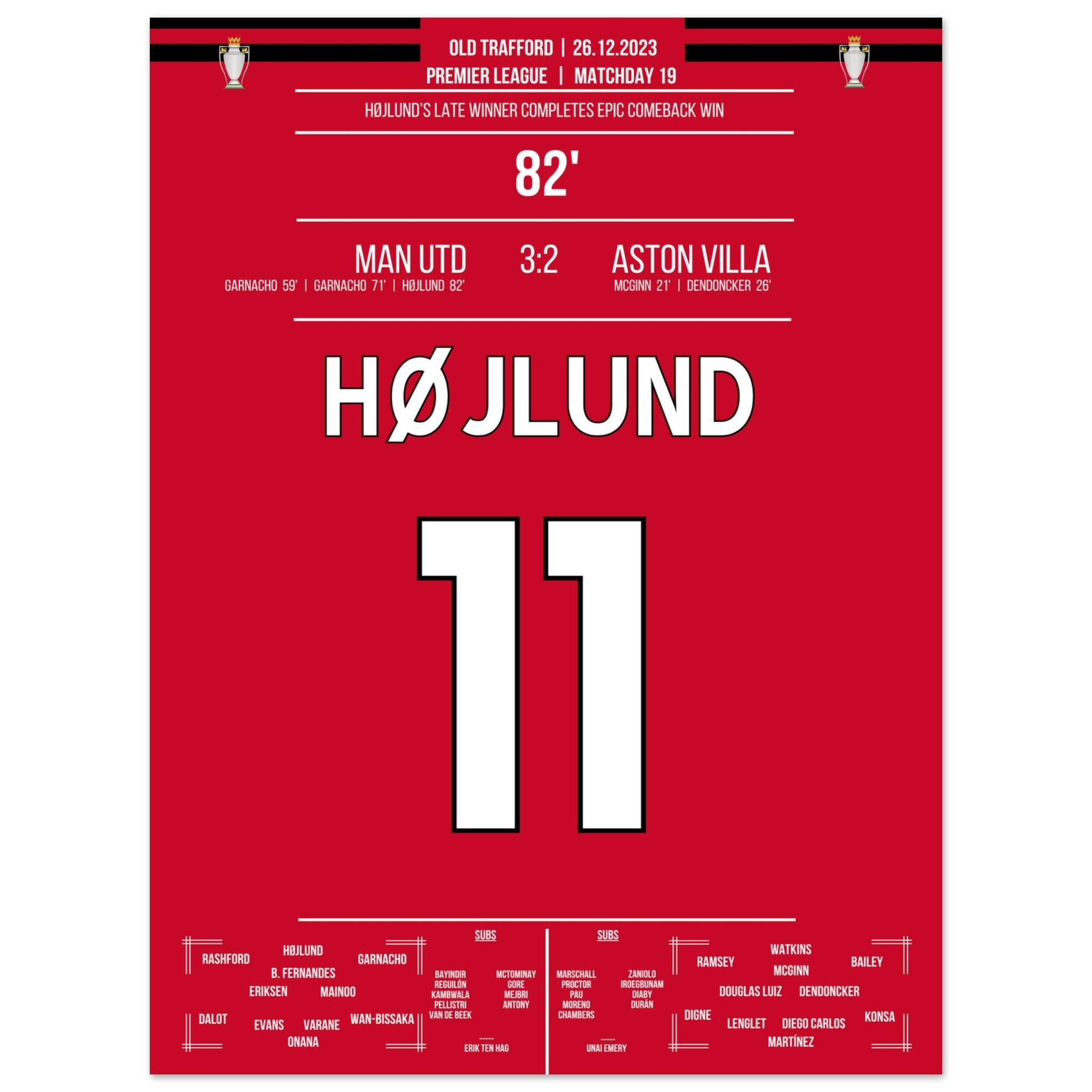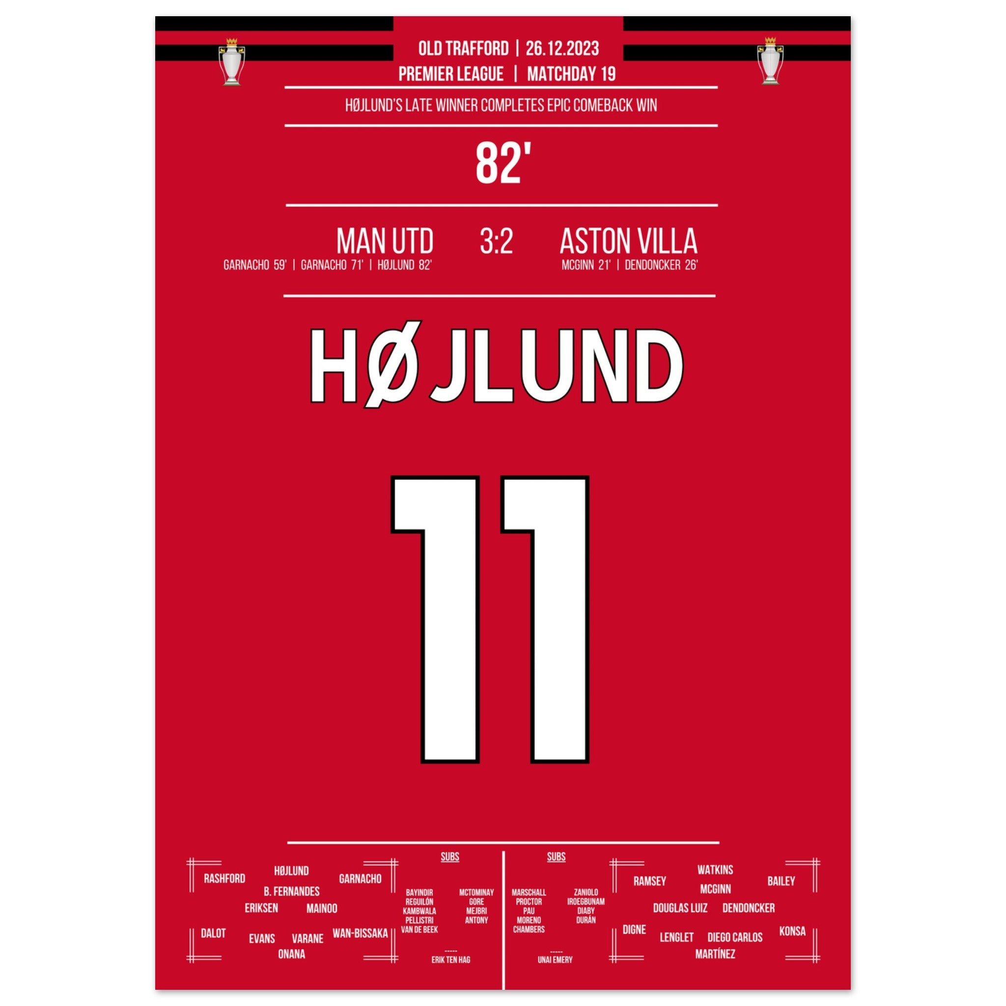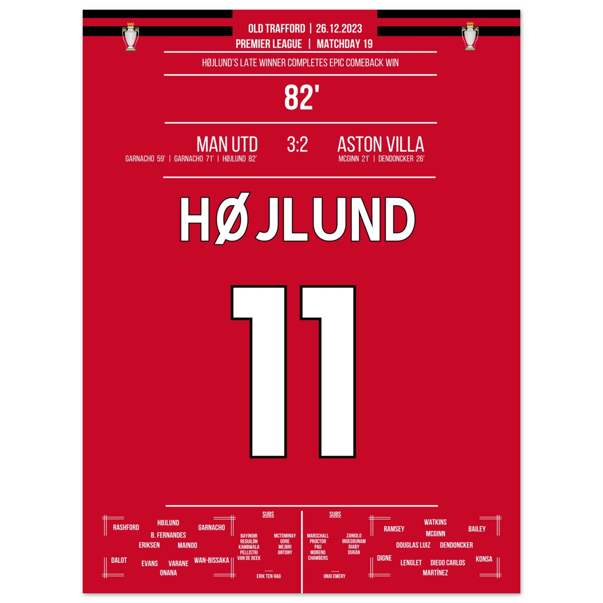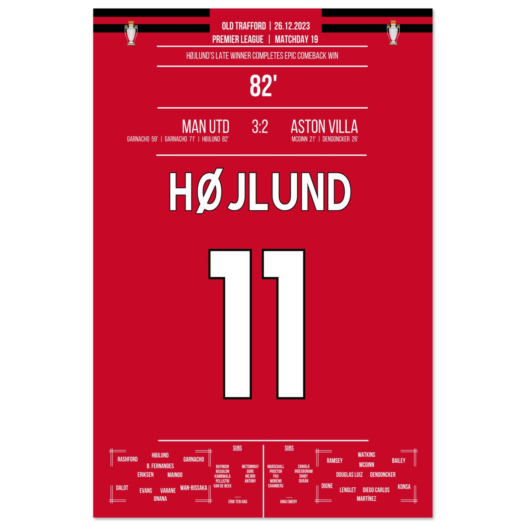 Højlund completes United's grand comeback against Aston Villa.