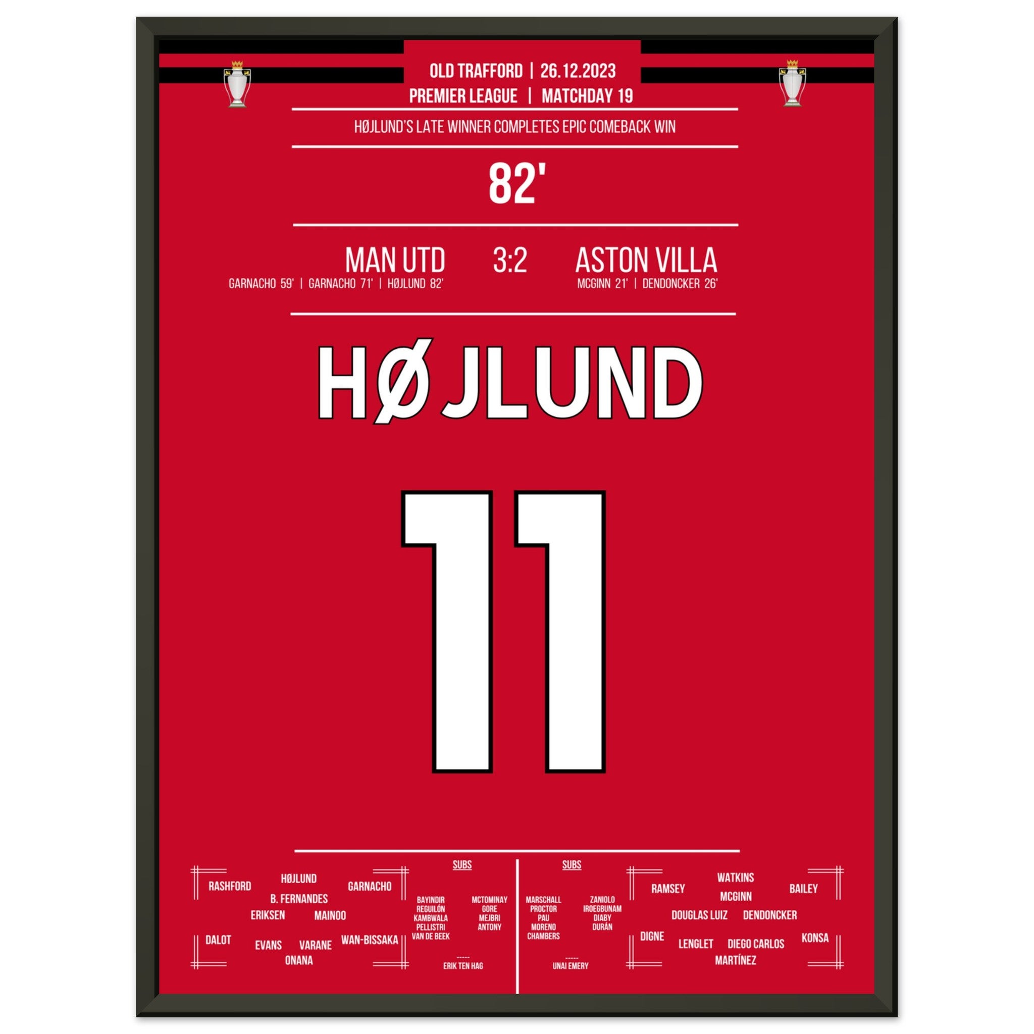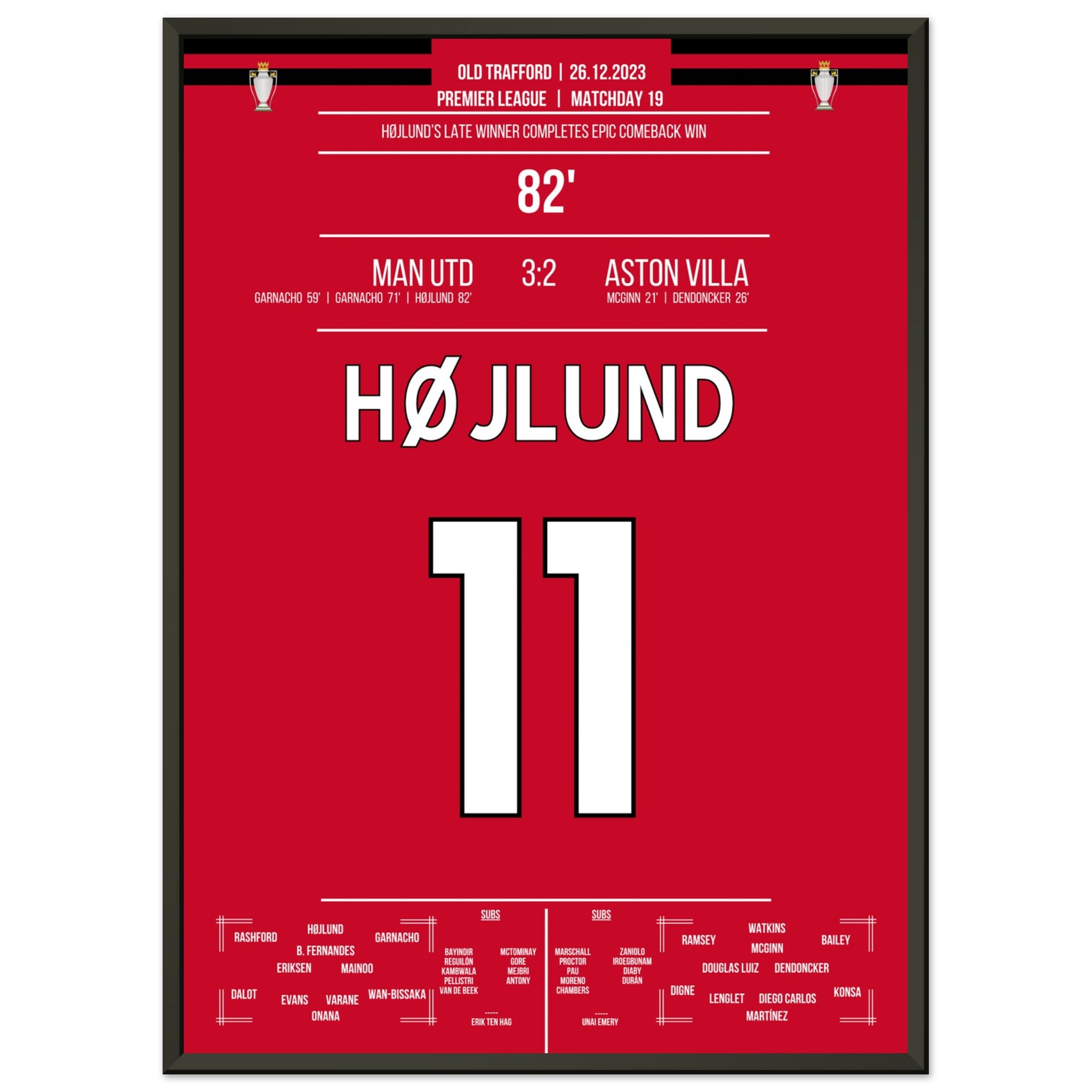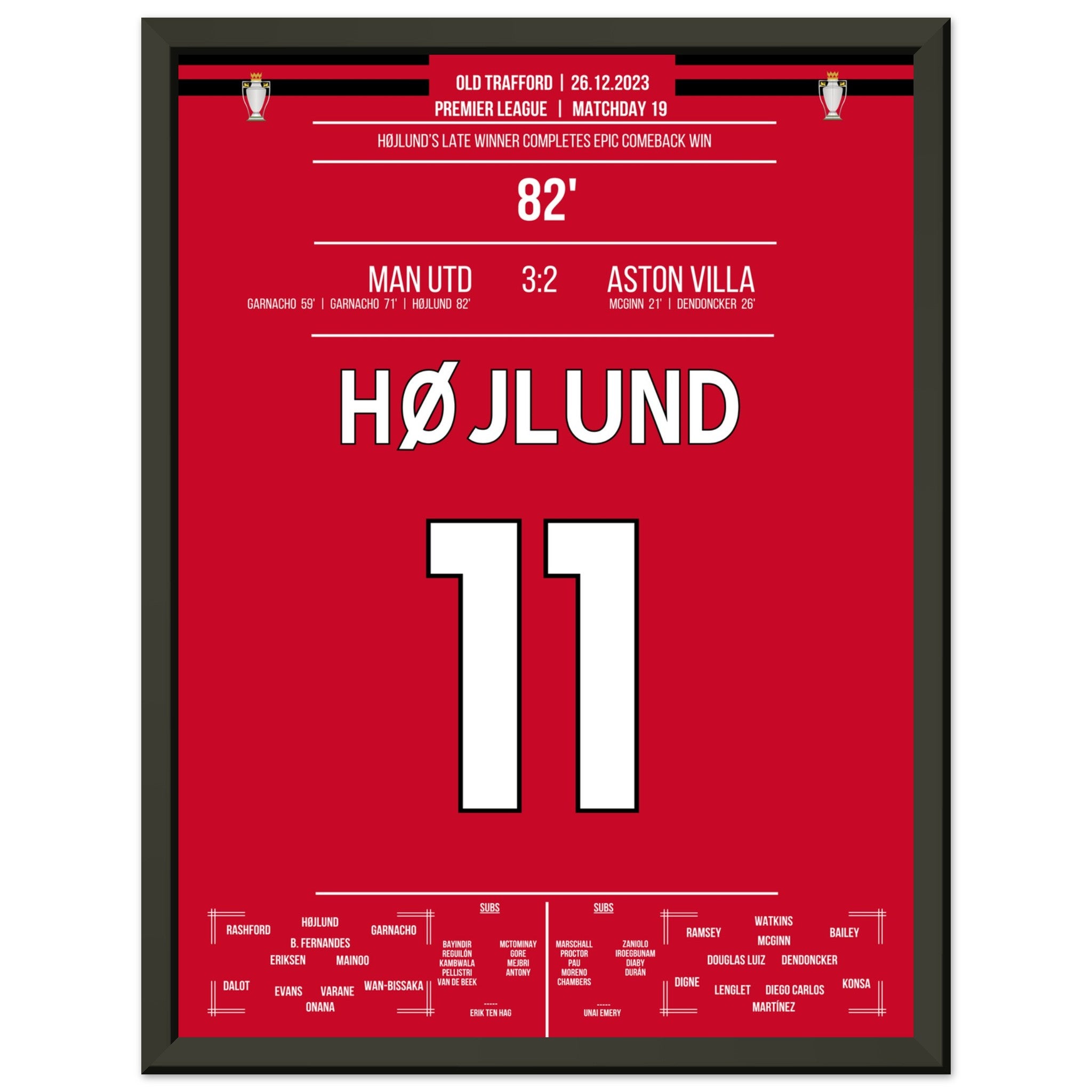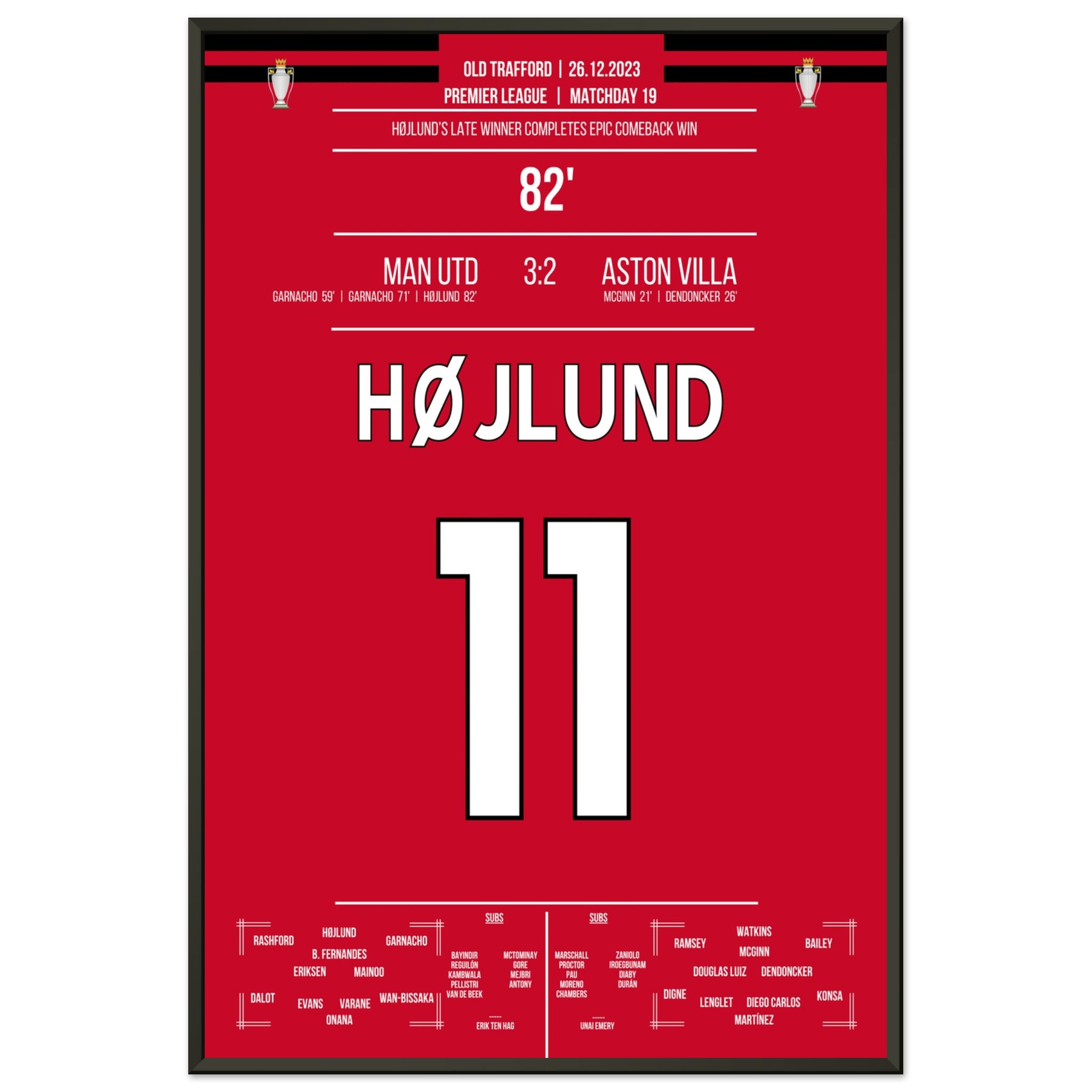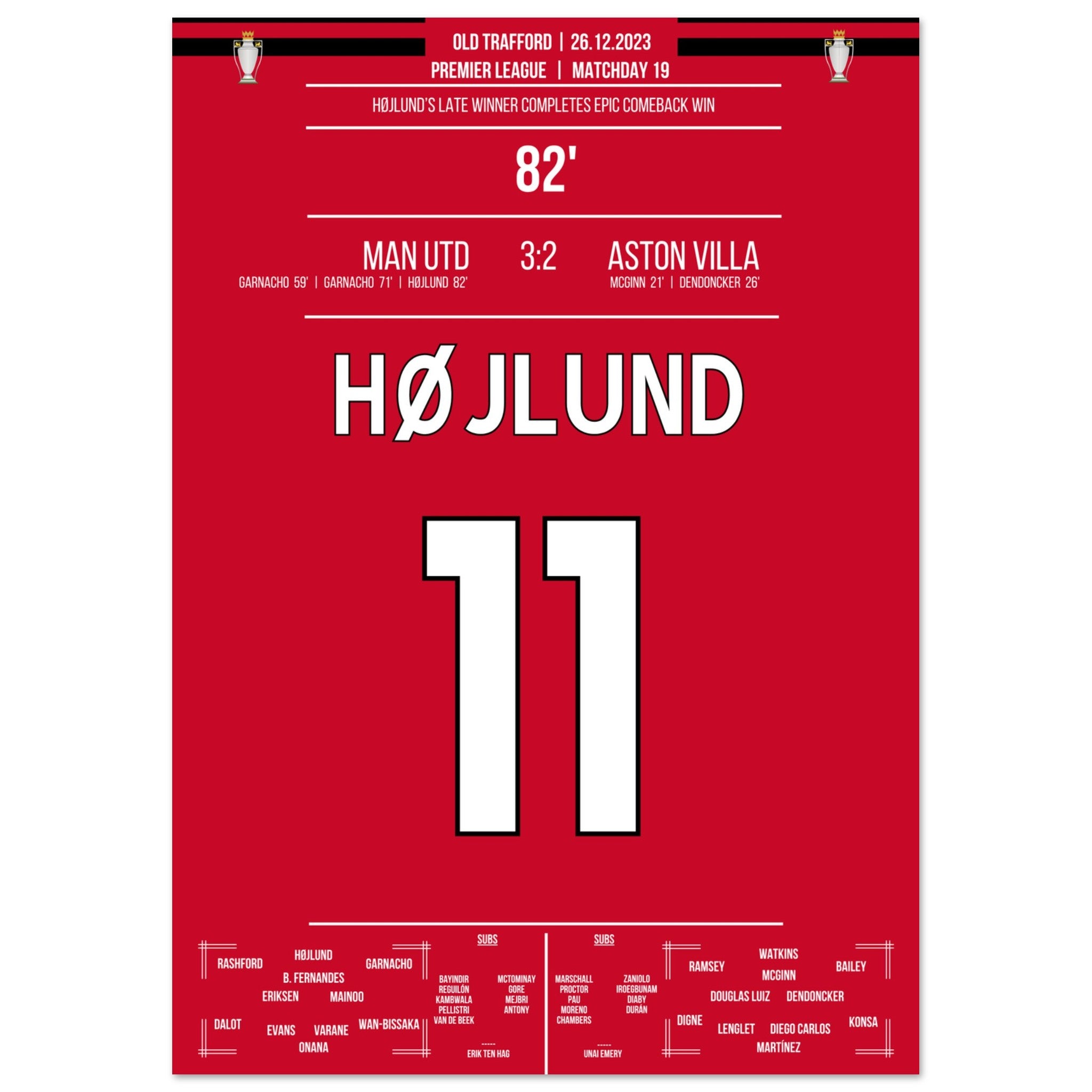 Højlund completes United's grand comeback against Aston Villa.