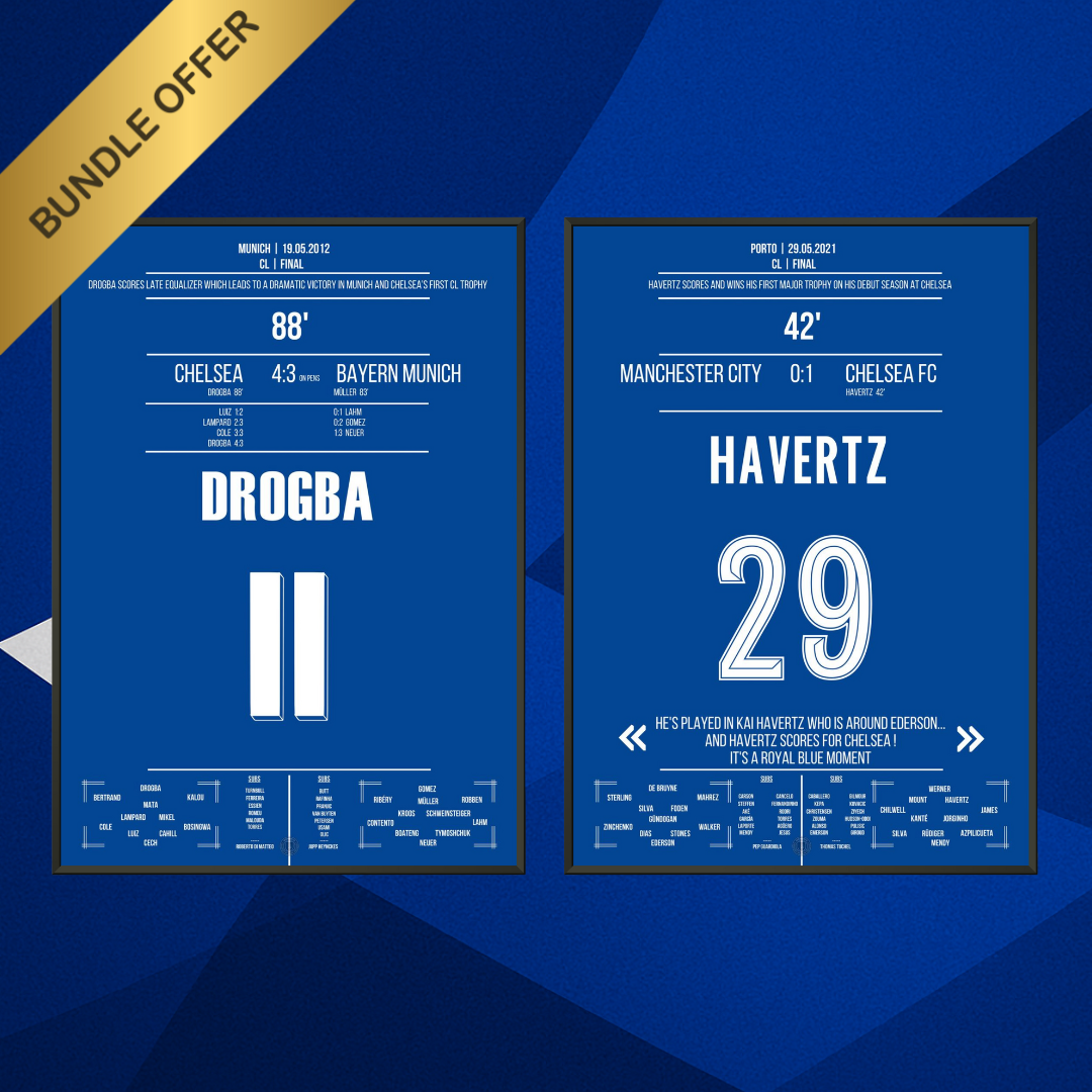 Von weltmeisterlichen Siegen bis zu magischen Nächten auf internationaler Bühne – hier findest du alle Highlights der blauen Seite Londons als einzigartige Poster.