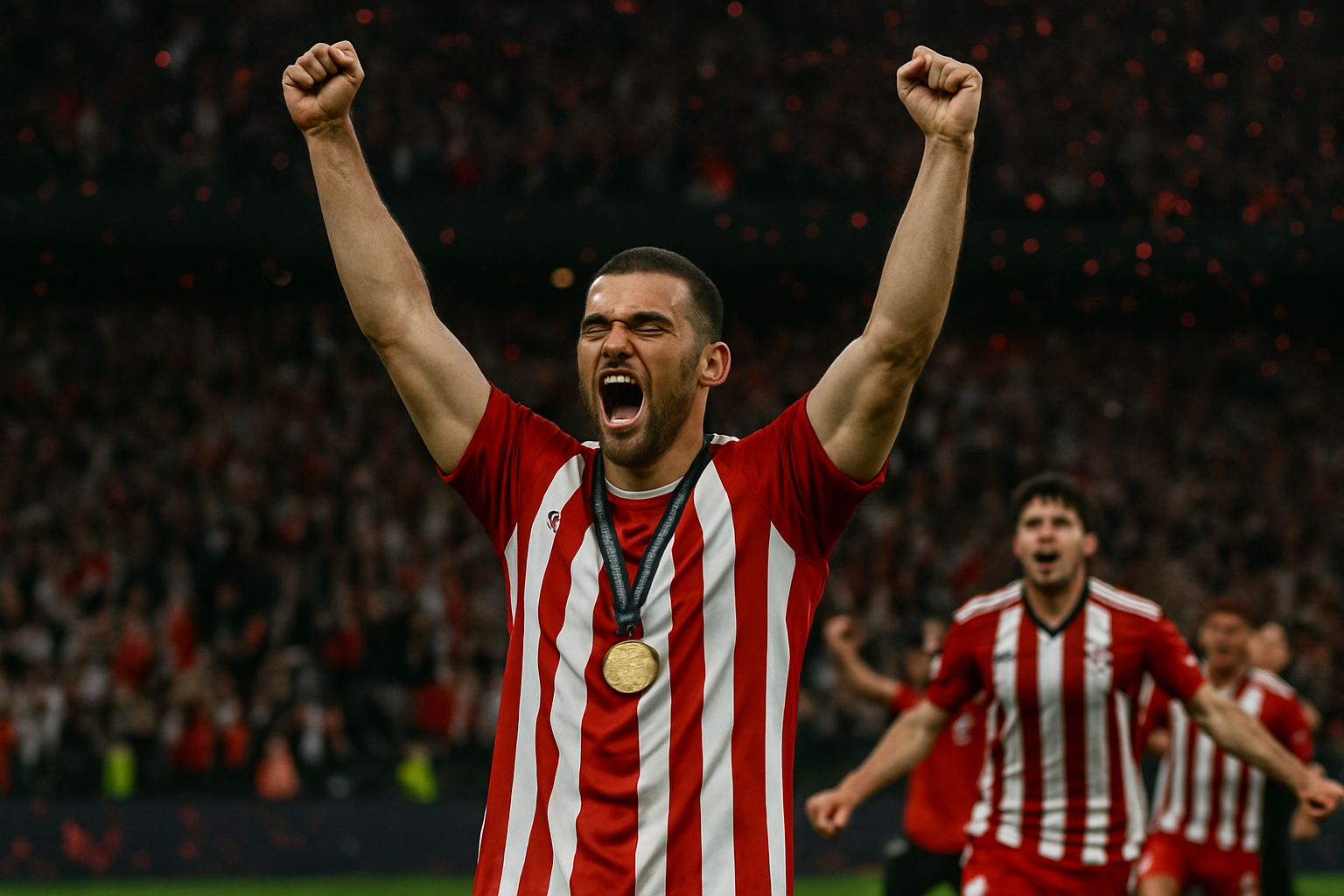 Anbieter:MomentsOfFameEl Kaabi schießt Olympiacos zum ersten europäischen Titelgewinn der Geschichte