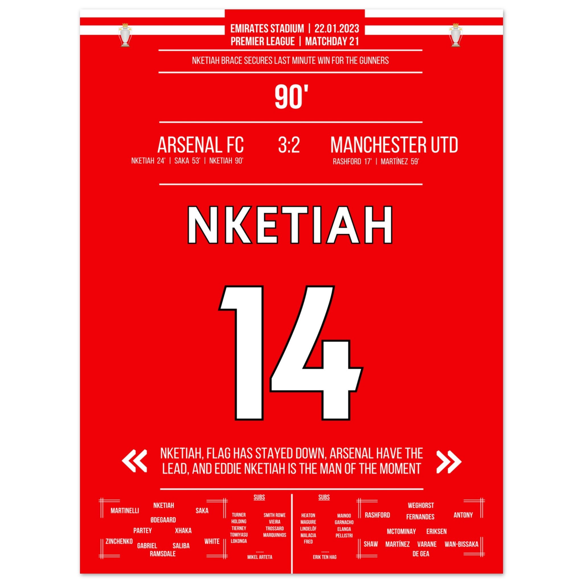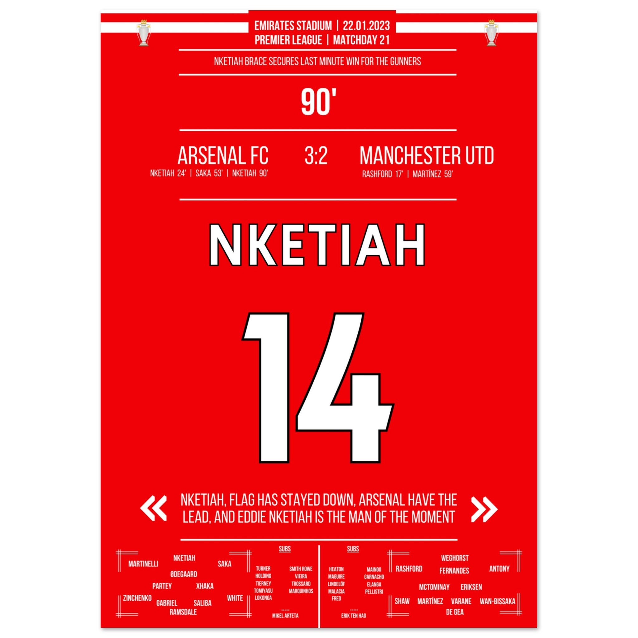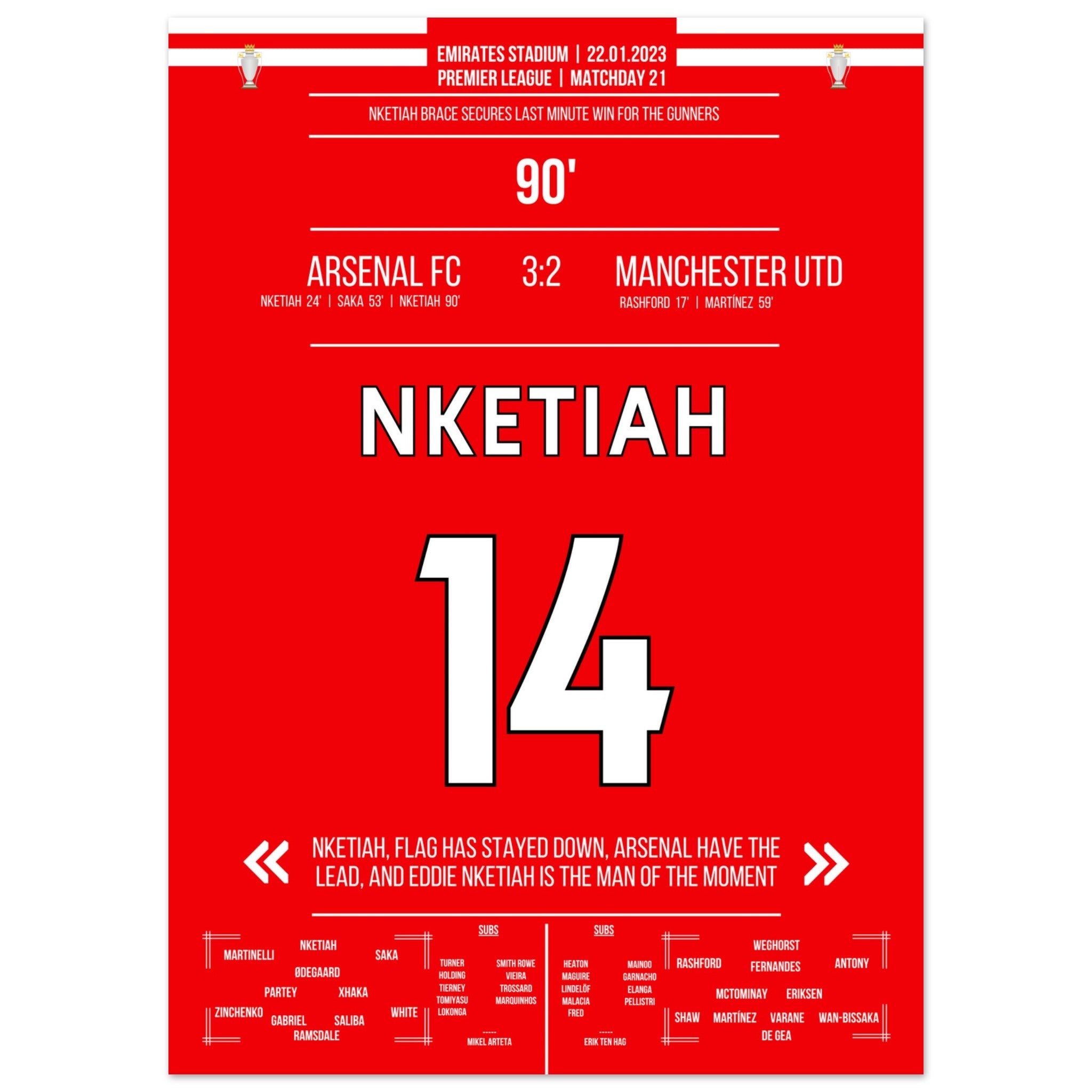 Nketiah trifft zum Last Minute Sieg gegen Man Utd