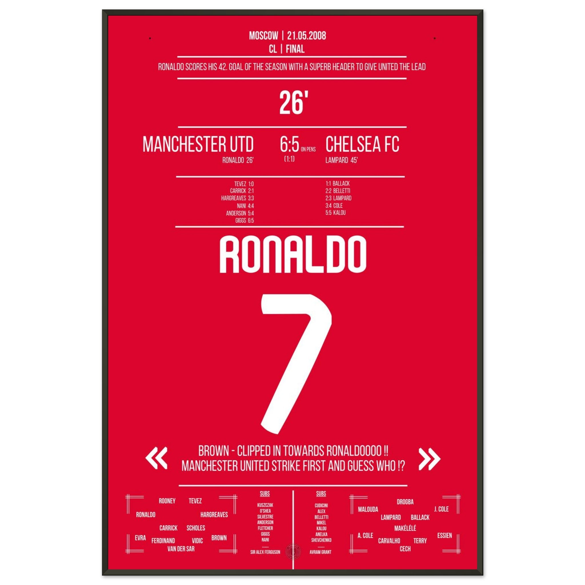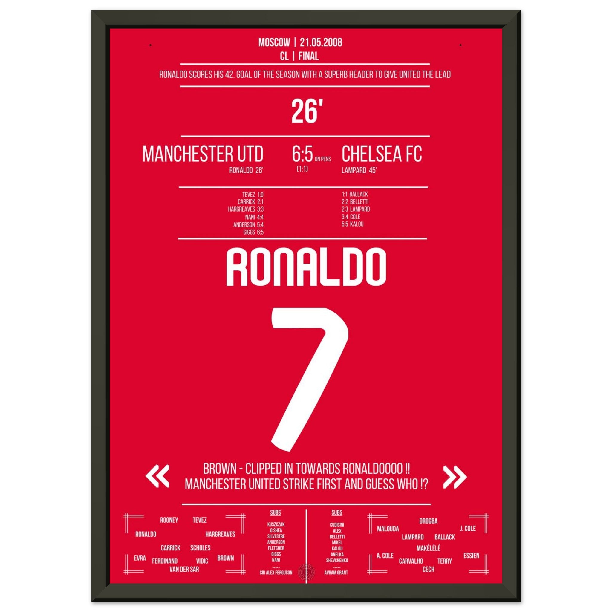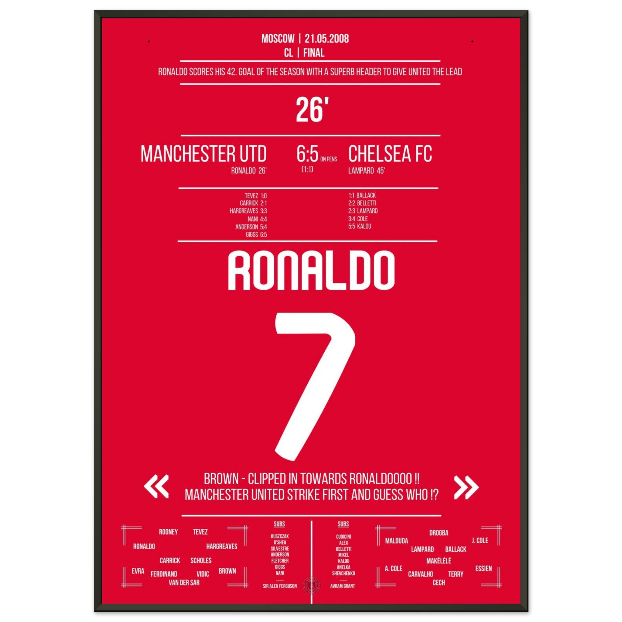 Hier kommt unser Premium-Druck dieses unvergesslichen Fußballmoments für das ultimative Fan-Erlebnis. Gedruckt auf schwerem, seidenmattem Premium-Papier, glänzt dieses Kunstwerk mit verstärkten Farben und einem subtilen Glanz, der jedes Detail zum Vorschein bringt.