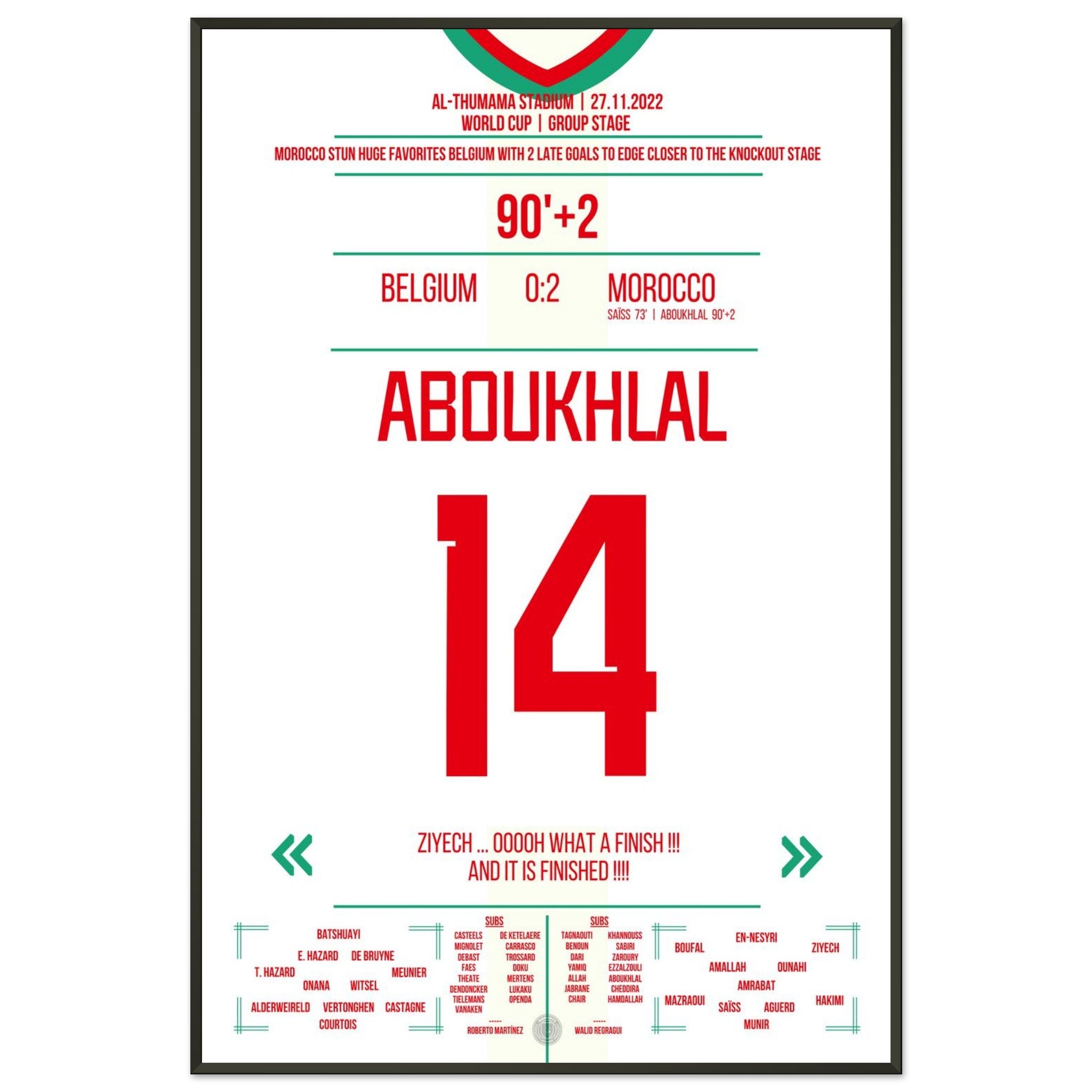 Unser Poster feiert diesen magischen Moment – Marokkos Triumph auf der größten Bühne der Welt. ❤️💚⚽