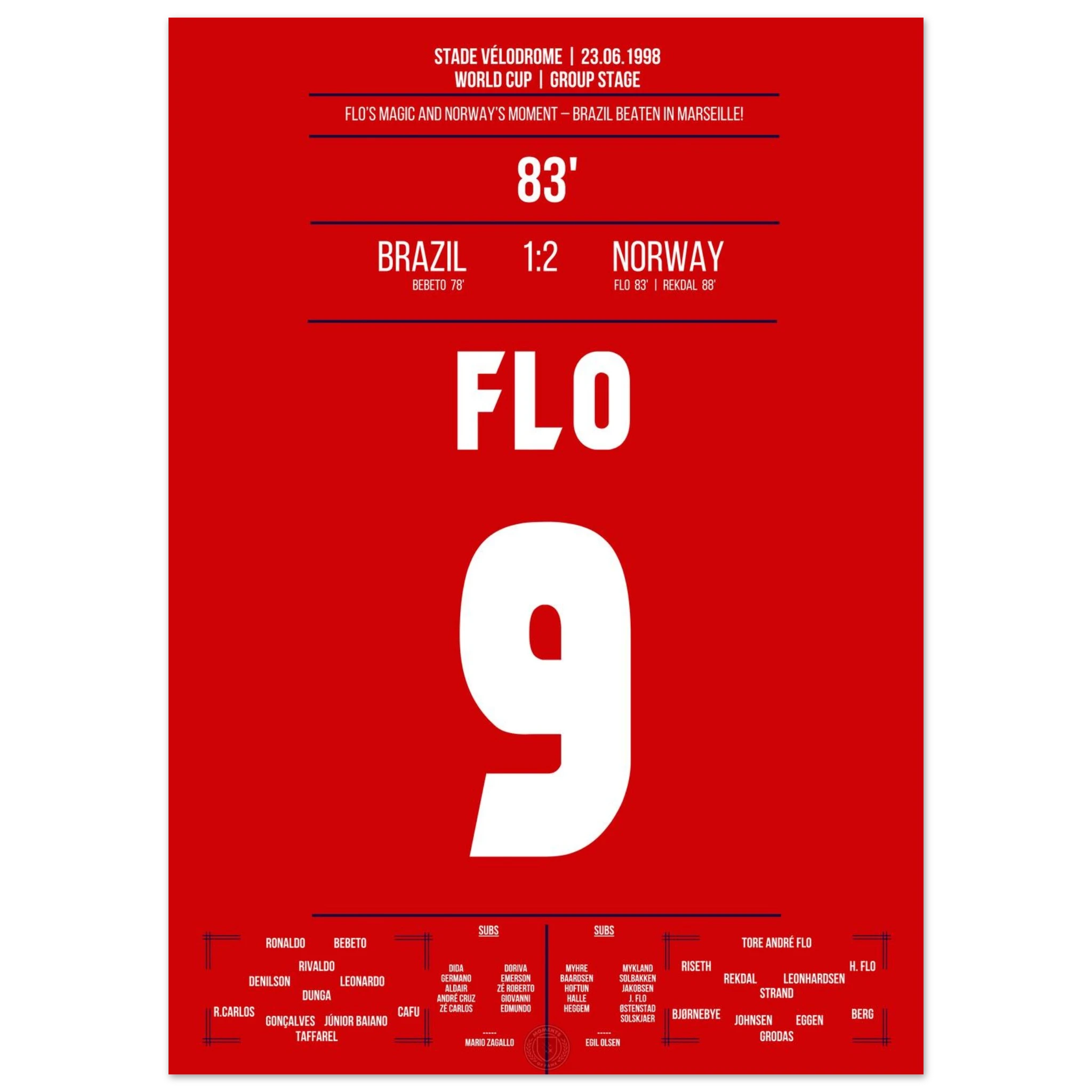 23. Juni 1998 – Brasilien vs. Norwegen 1:2 – Skandinavische Sensation in Marseille: