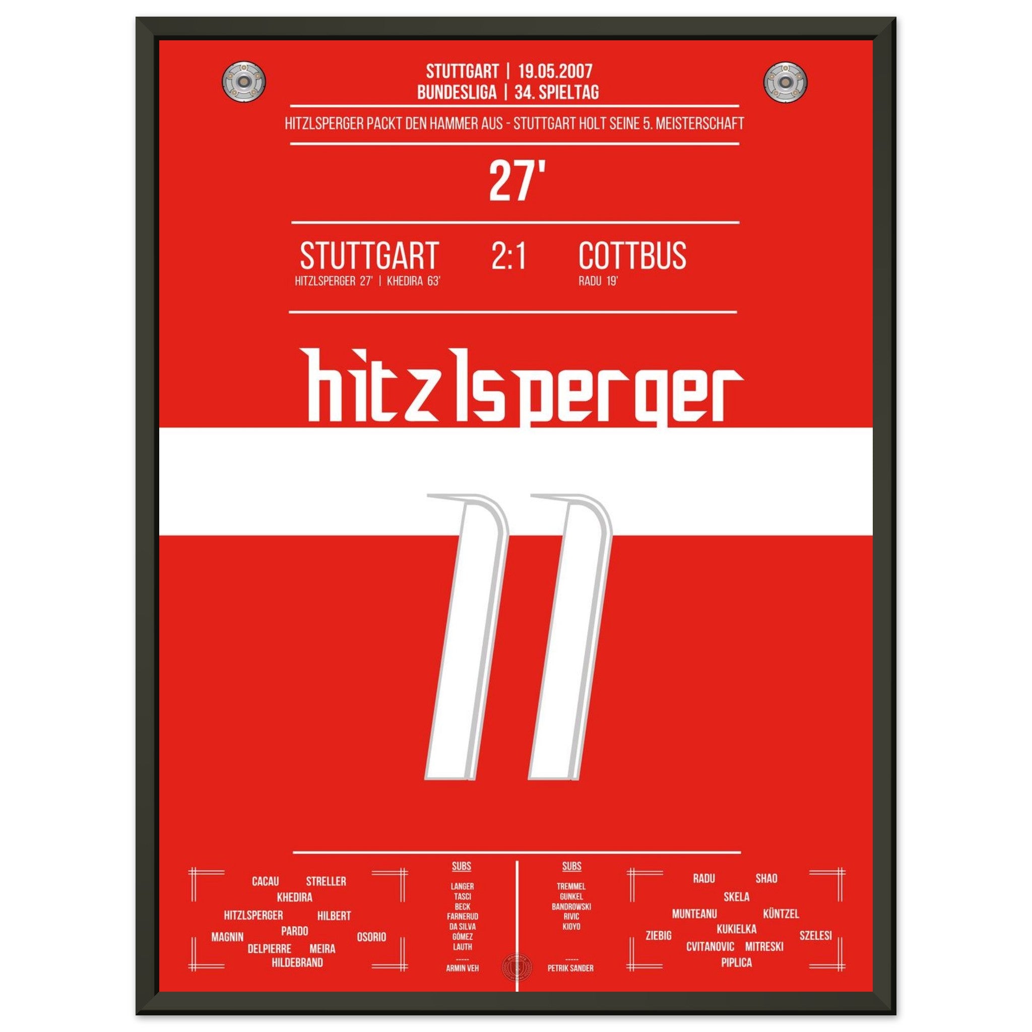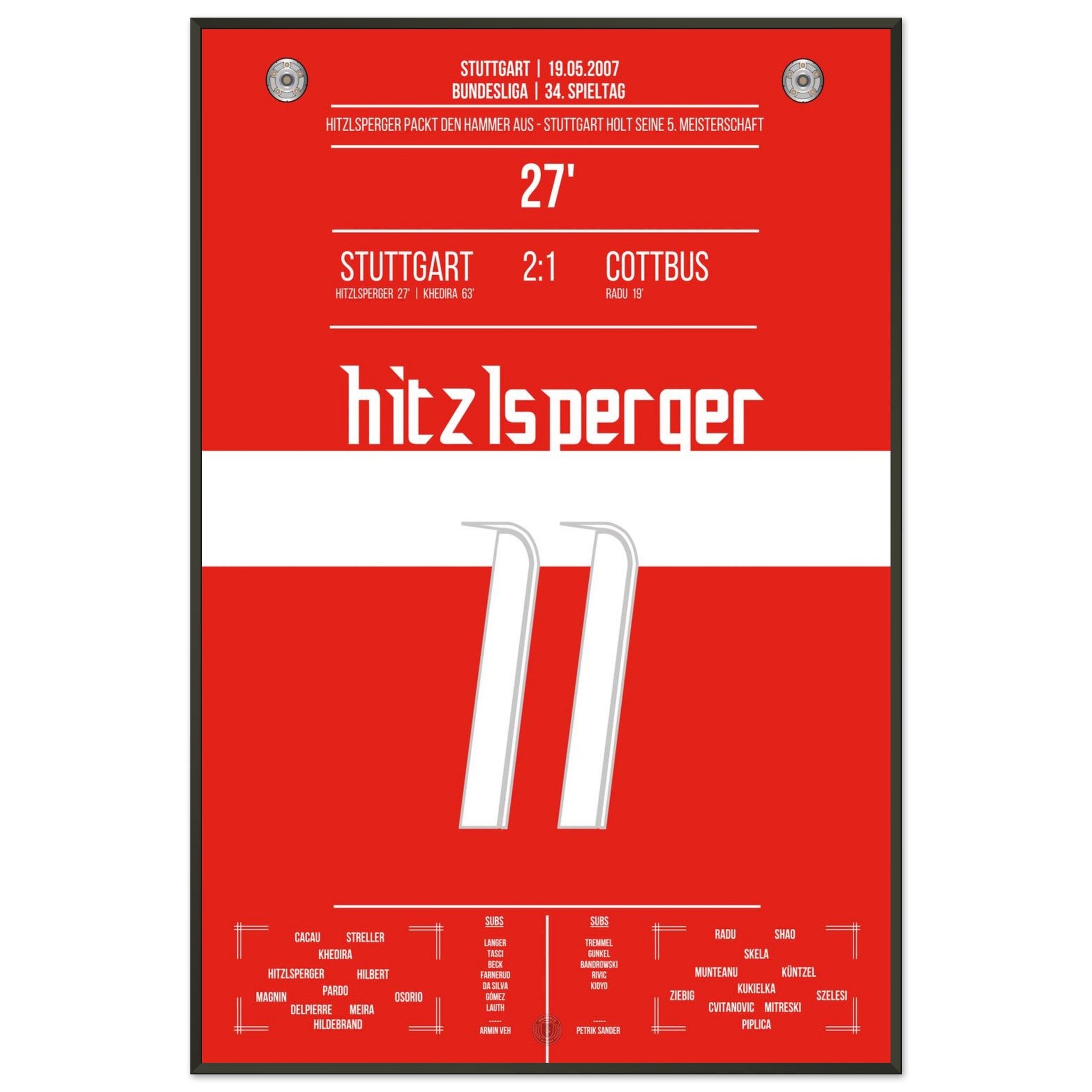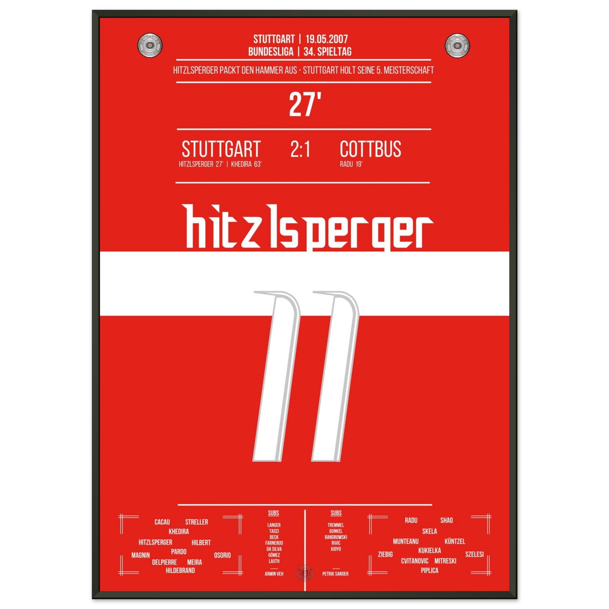 19. Mai 2007 – Stuttgart vs. Cottbus 2:1: Mit einem satten Linksschuss bringt Thomas Hitzlsperger die Stuttgarter auf Titelkurs. Ein rot-weißer Gänsehautmoment, den unser Poster für die Ewigkeit bewahrt.