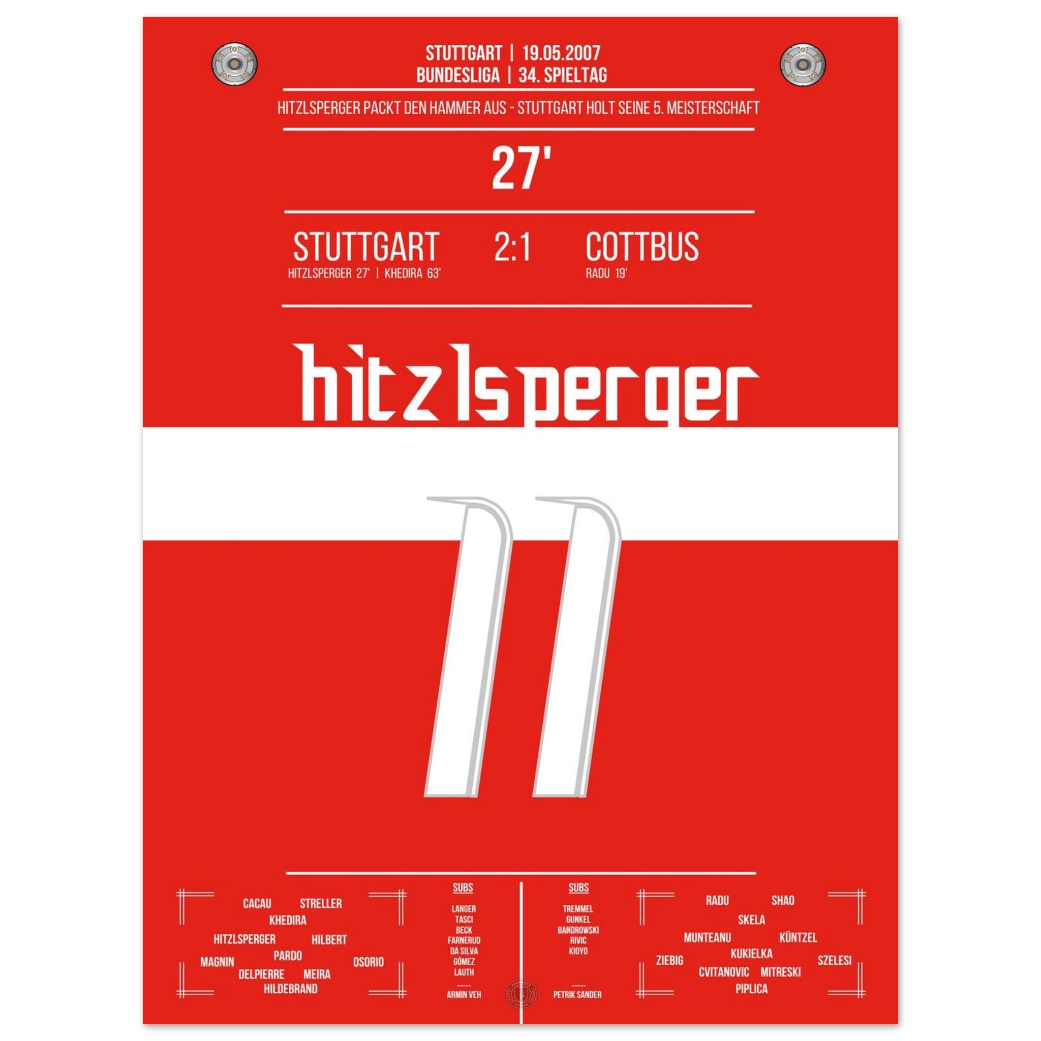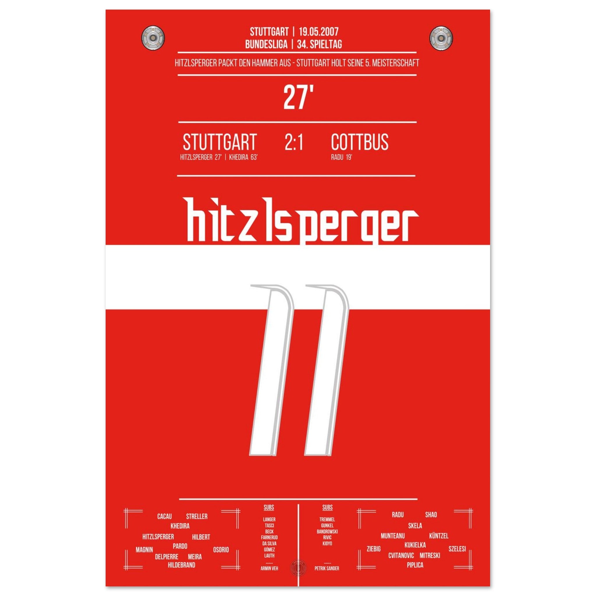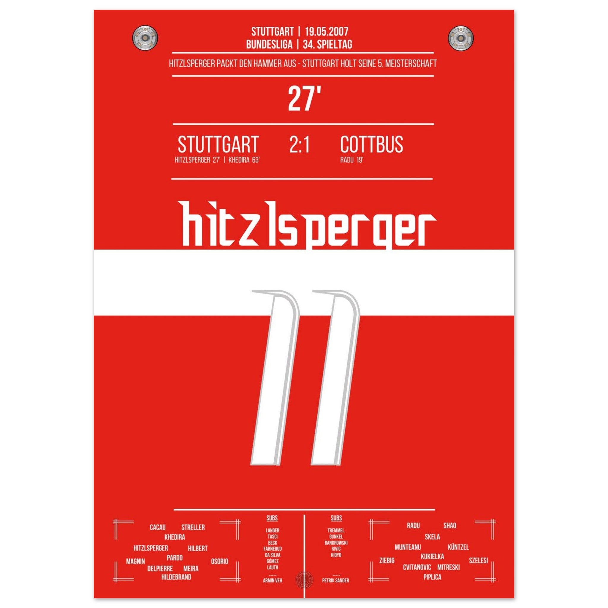 19. Mai 2007 – Stuttgart vs. Cottbus 2:1: Mit einem satten Linksschuss bringt Thomas Hitzlsperger die Stuttgarter auf Titelkurs. Ein rot-weißer Gänsehautmoment, den unser Poster für die Ewigkeit bewahrt.