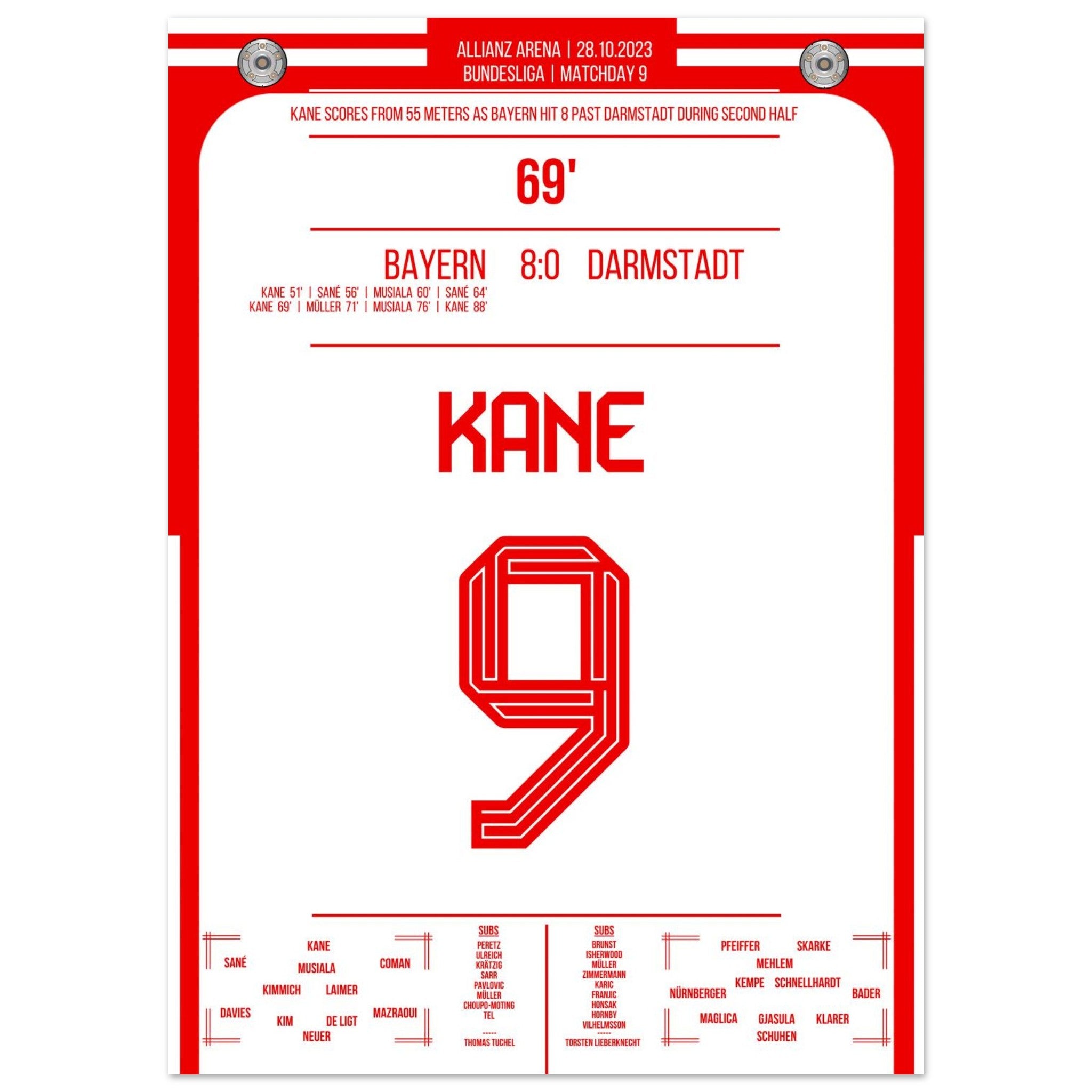 Kane erzielt in der 69. Minute ein atemberaubendes Traumtor aus 55 Metern Entfernung. Dieses unglaubliche Tor sorgt für Begeisterung und bringt München den Sieg.