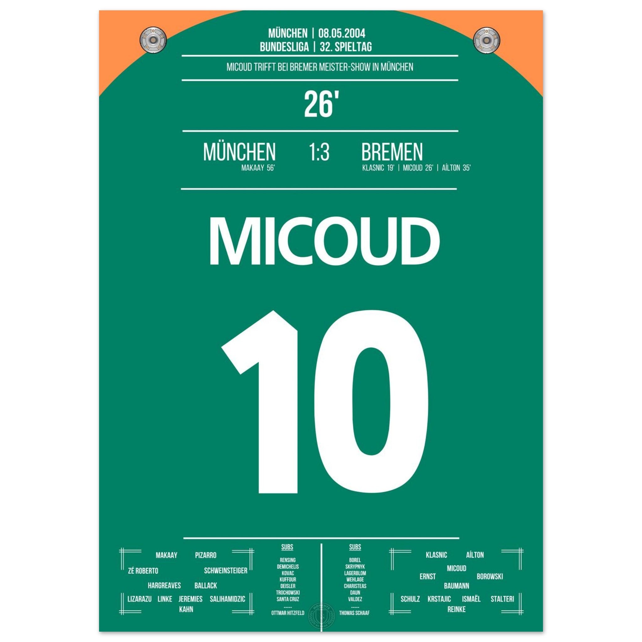 Johan Micoud. 26. Minute. Olympiastadion. Lupfer über Kahn. 2:0. Meistermacher. Werder-Legende. Jetzt als Poster für deine Wand.