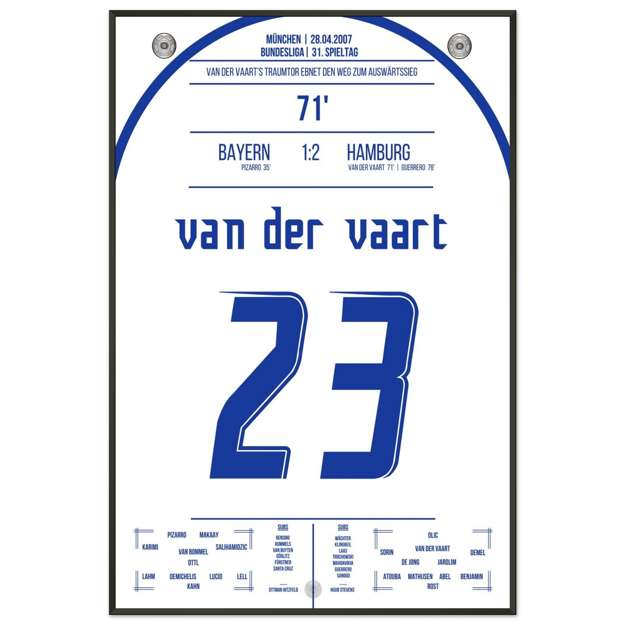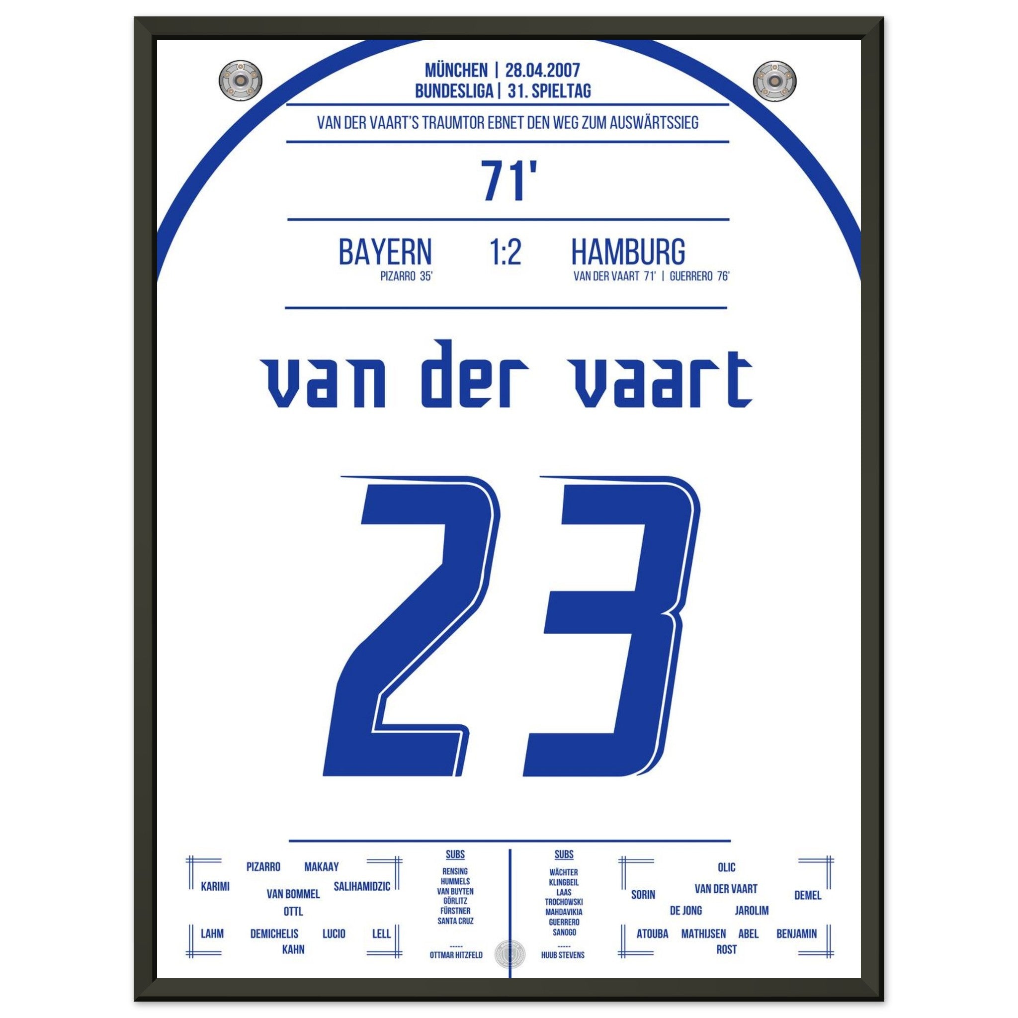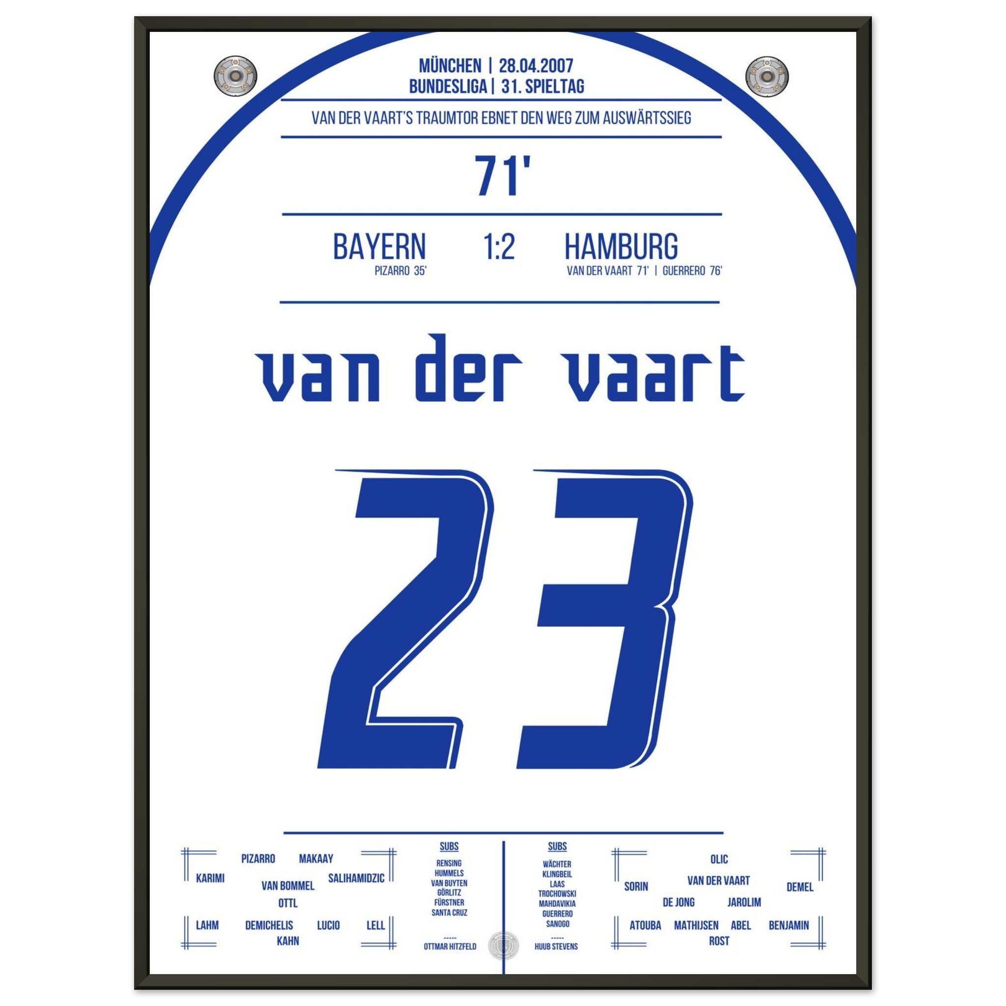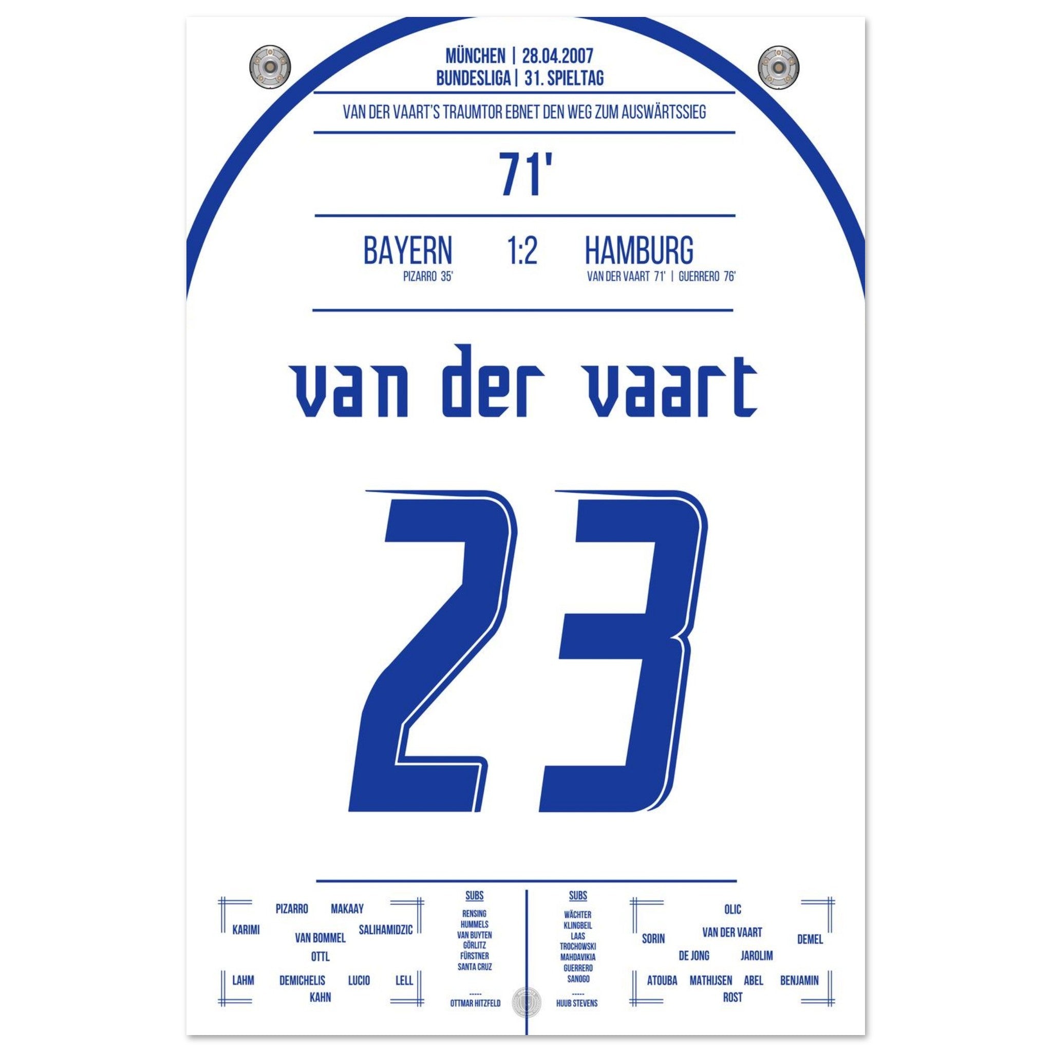 28. April 2007 – Bayern vs. Hamburg 1:2: Rafael van der Vaart schießt Hamburg mit einem traumhaften Freistoß in der 90. Minute zum Auswärtssieg in München. Ein magischer Moment für alle Rothosen – unser Poster bringt diese Sternstunde zurück auf die Wand.