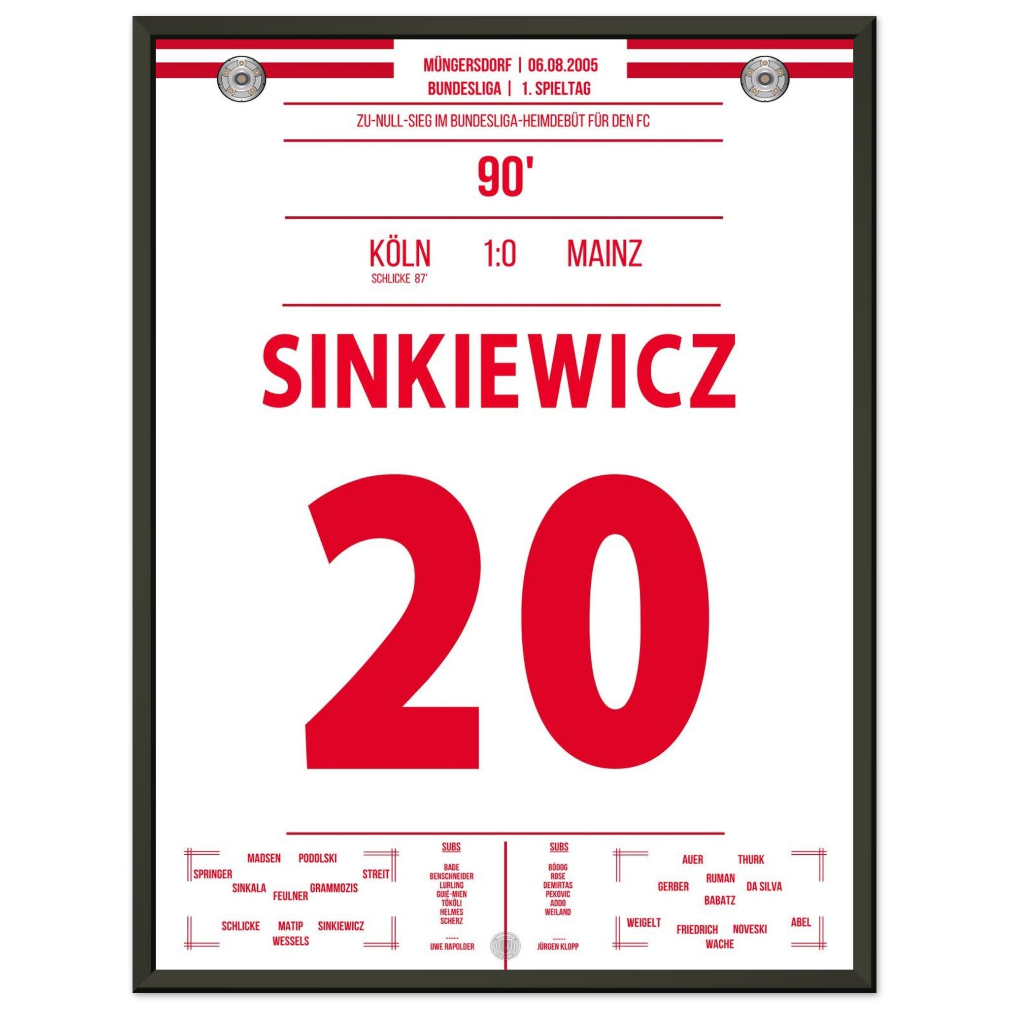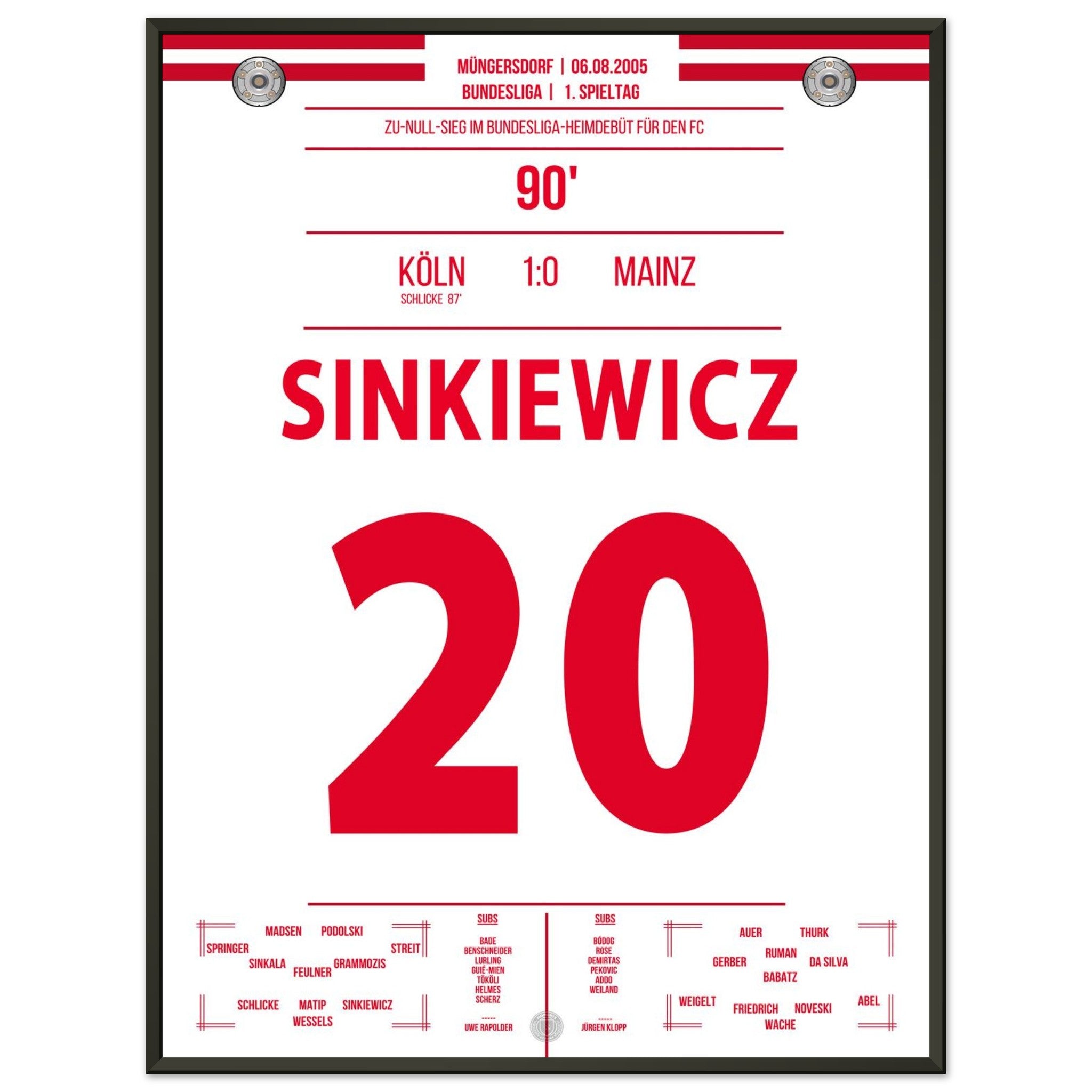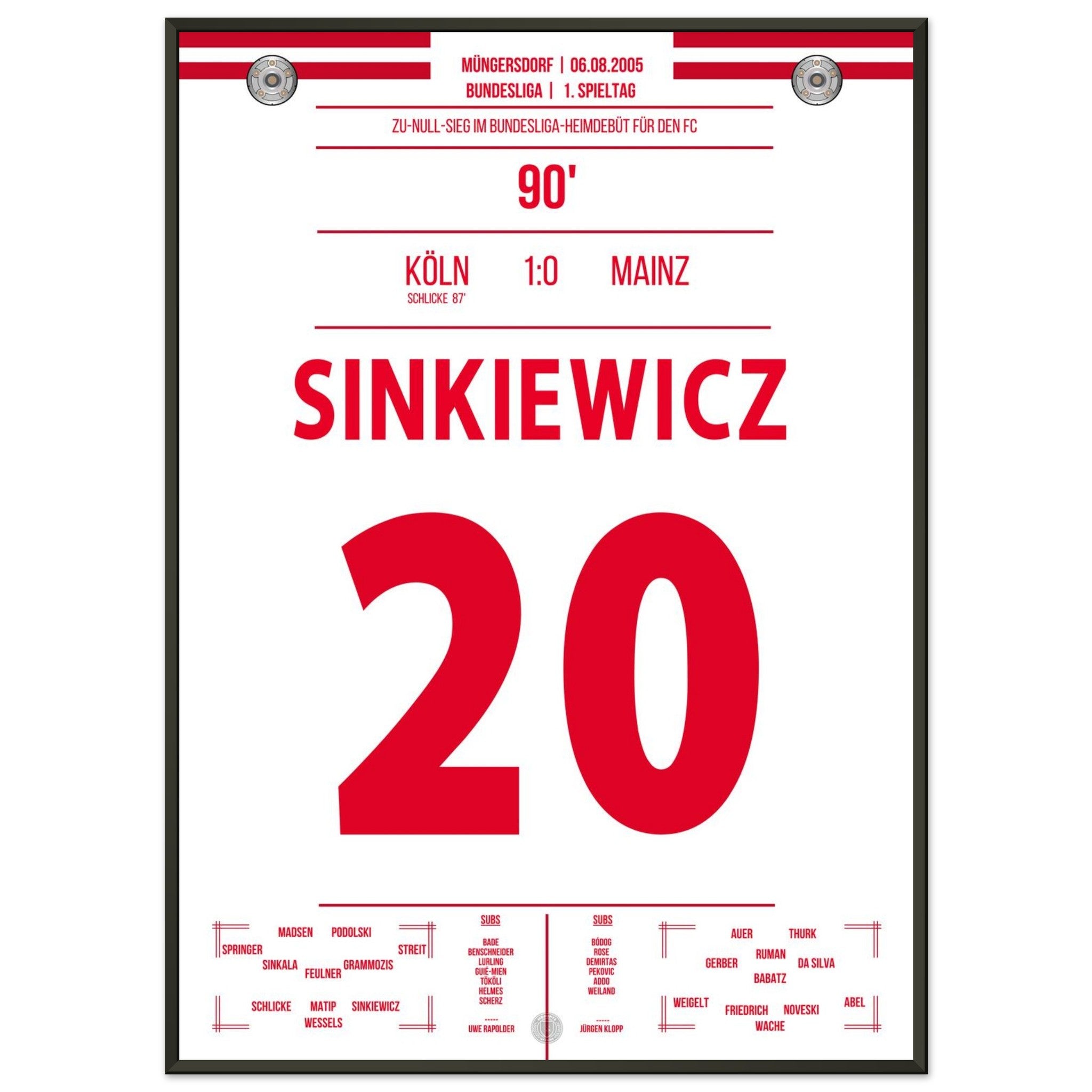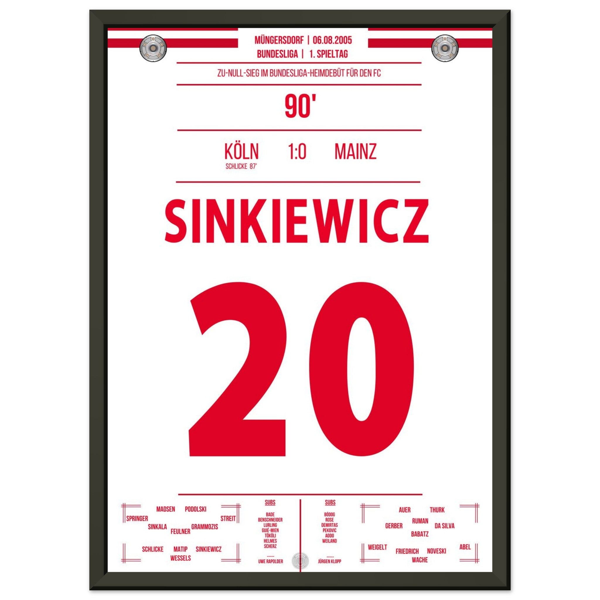 6. August 2005 – Köln vs. Mainz 1:0: Bei seinem Bundesliga-Debüt für Köln steht Lukas Sinkiewicz direkt im Fokus – mit einer starken Leistung in der Defensive trägt er zum Auftaktsieg bei. Ein gelungener Einstand vor heimischer Kulisse. Unser Poster hält diesen besonderen Moment im Trikot der Geißböcke fest.