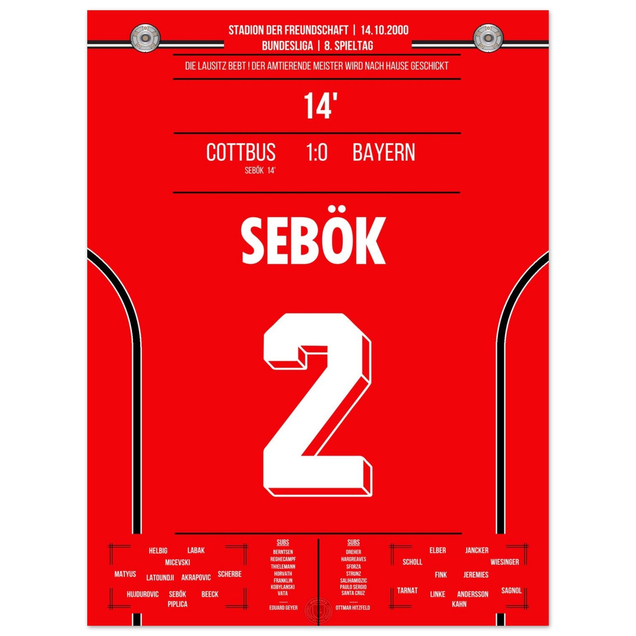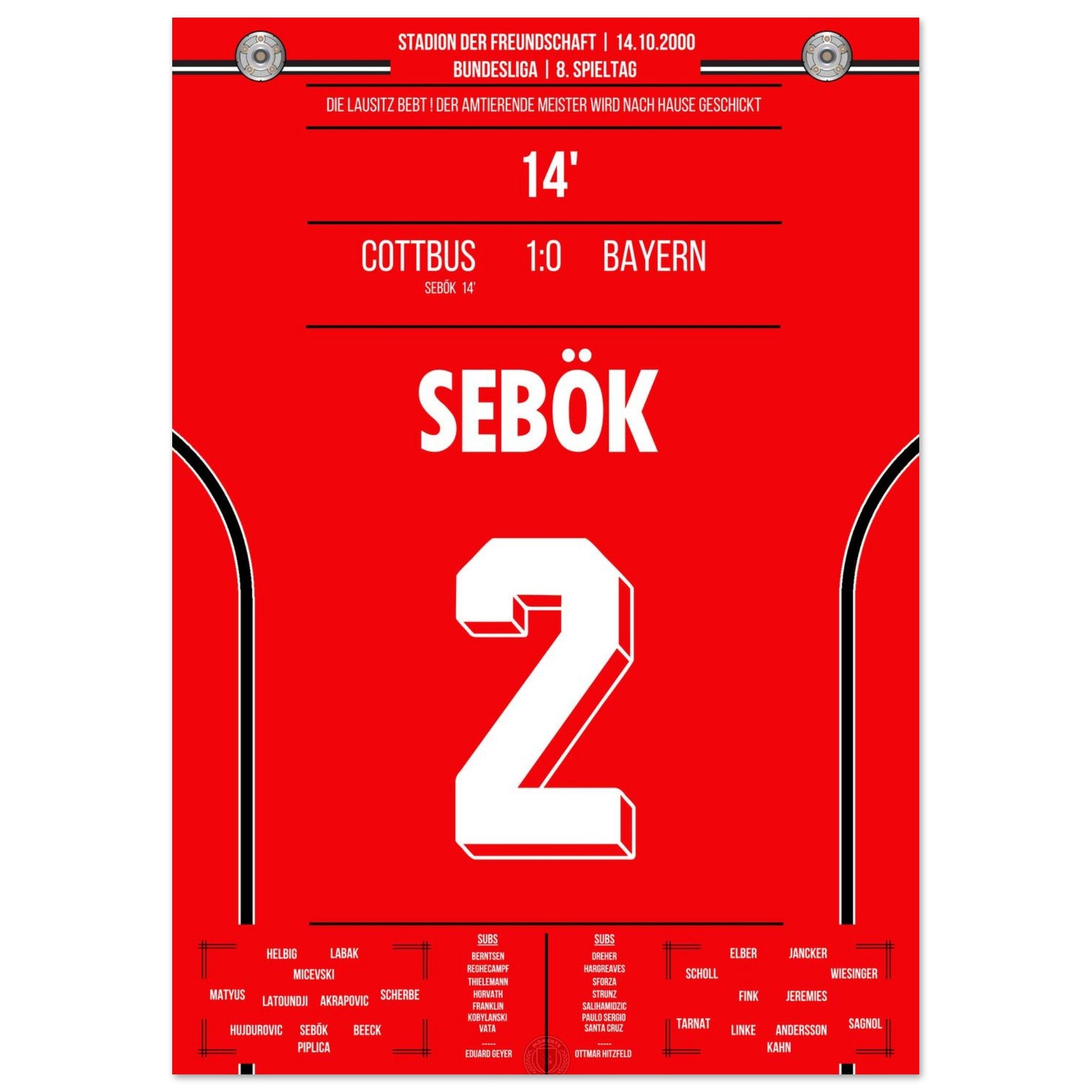 La Lusacia tiembla con la victoria de Cottbus contra la <tc>Bayern</tc> en 2000