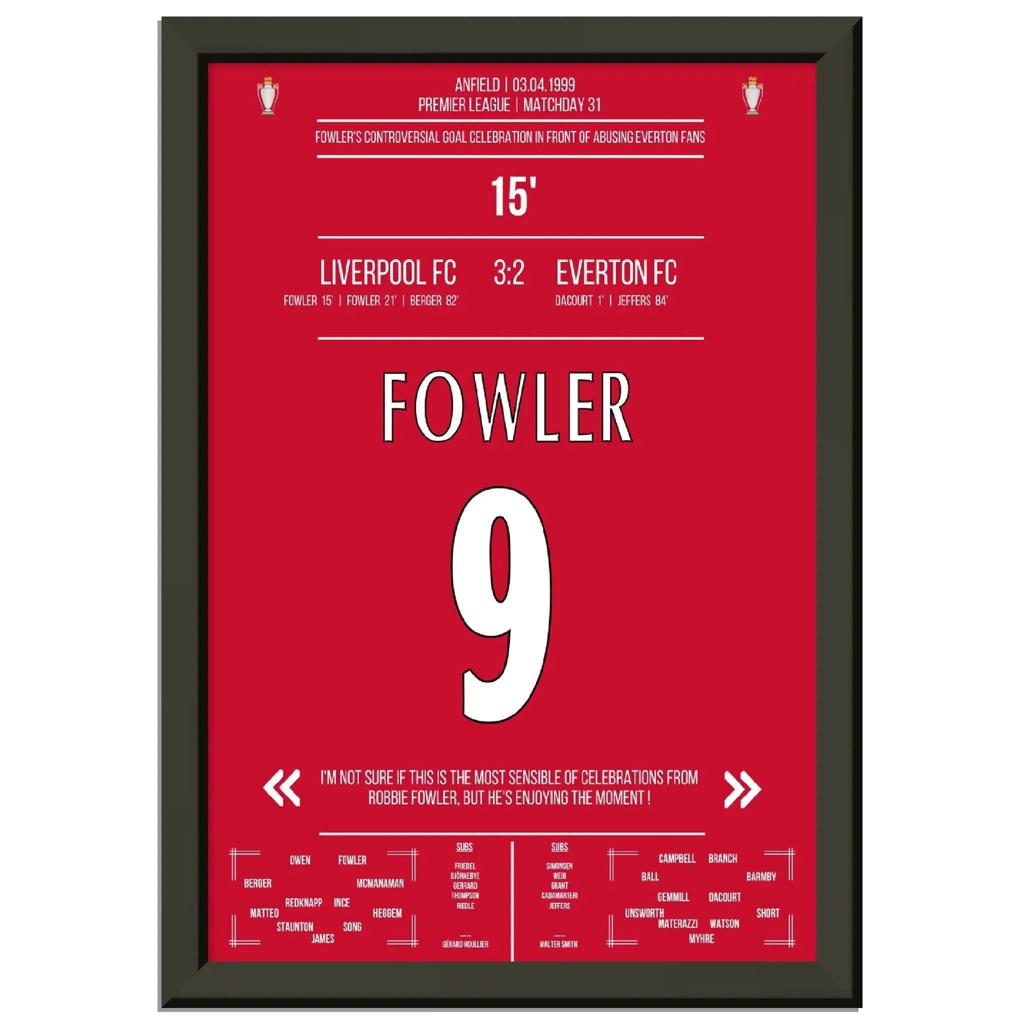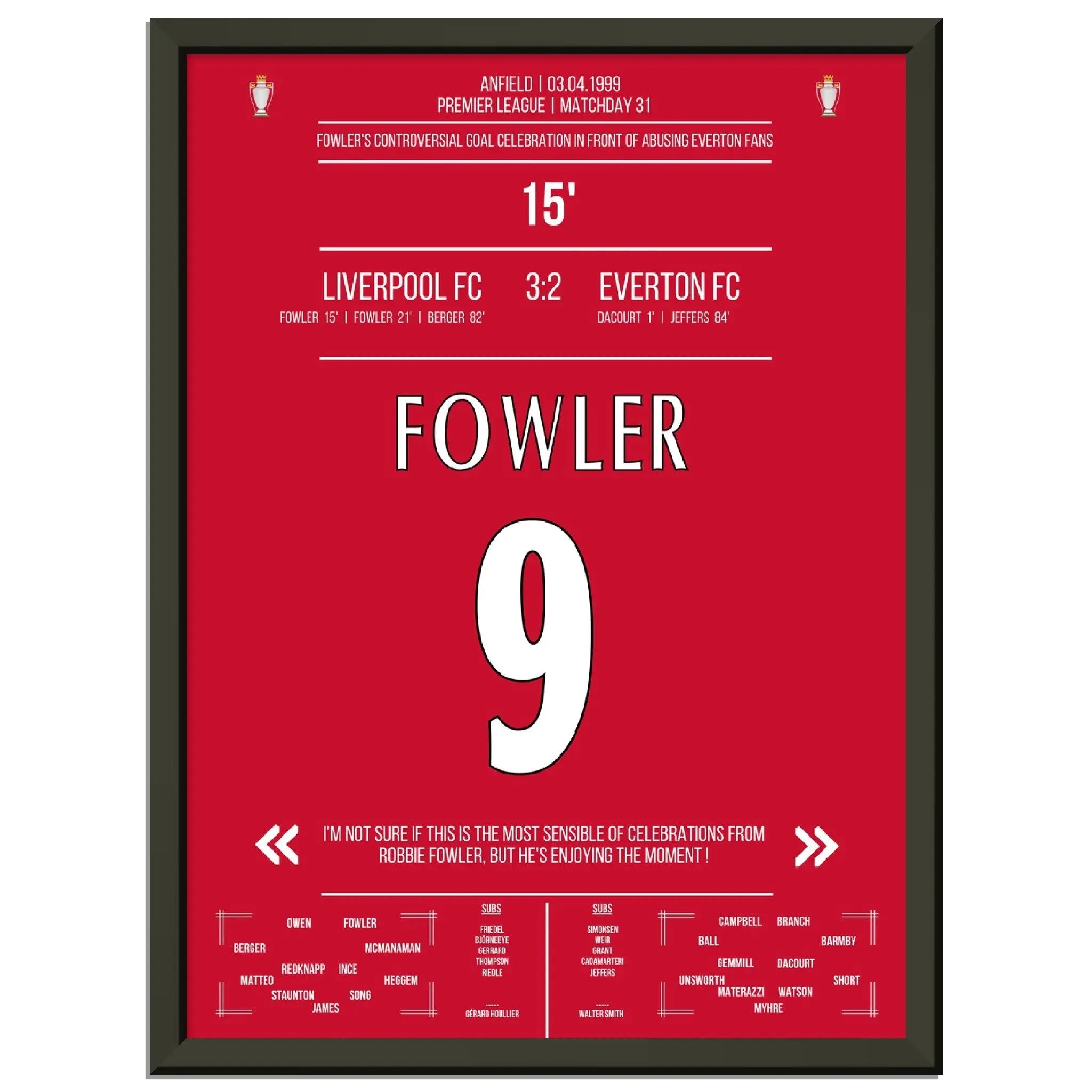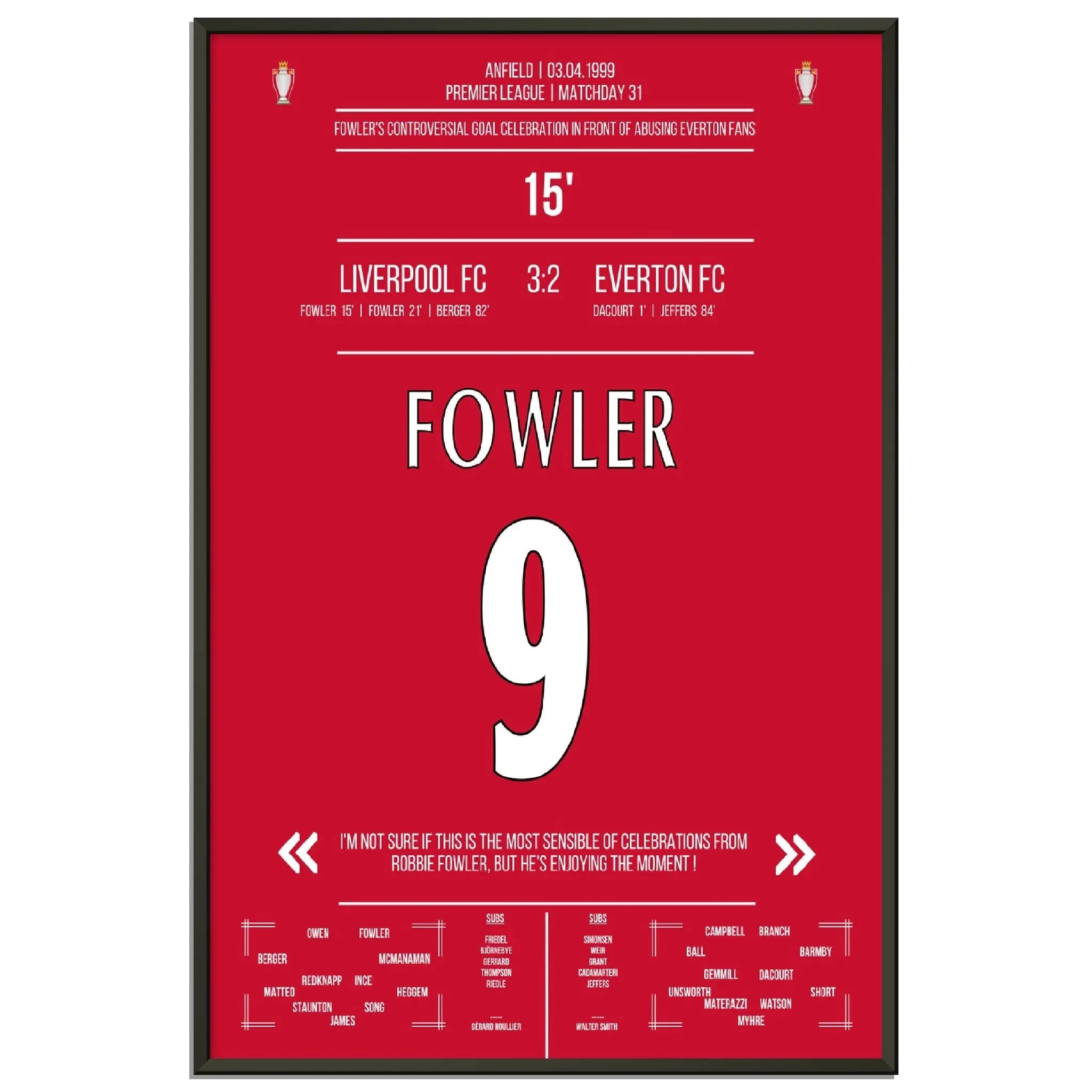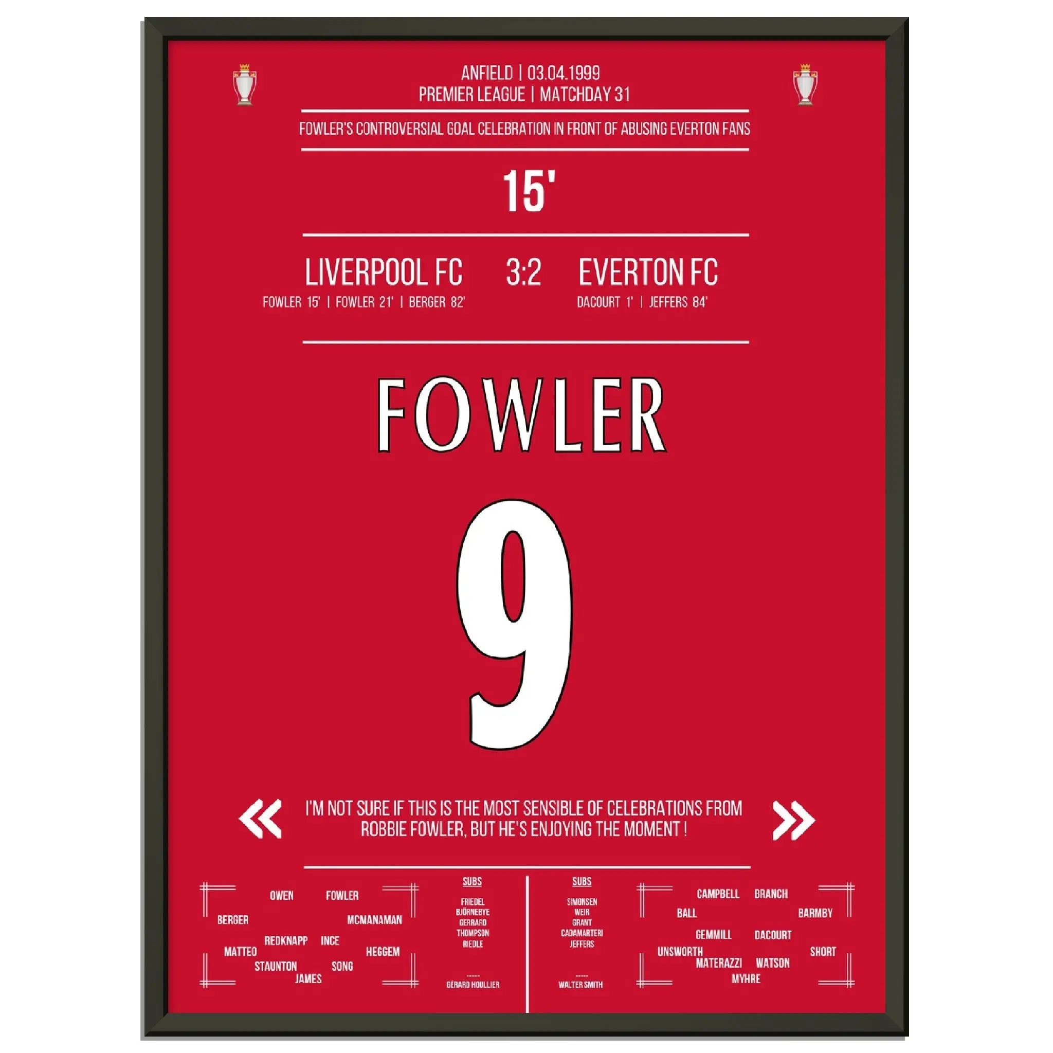 Fowler's celebración de gol excepcional Liverpool - Everton 1999 Premier League Merseyside Derby