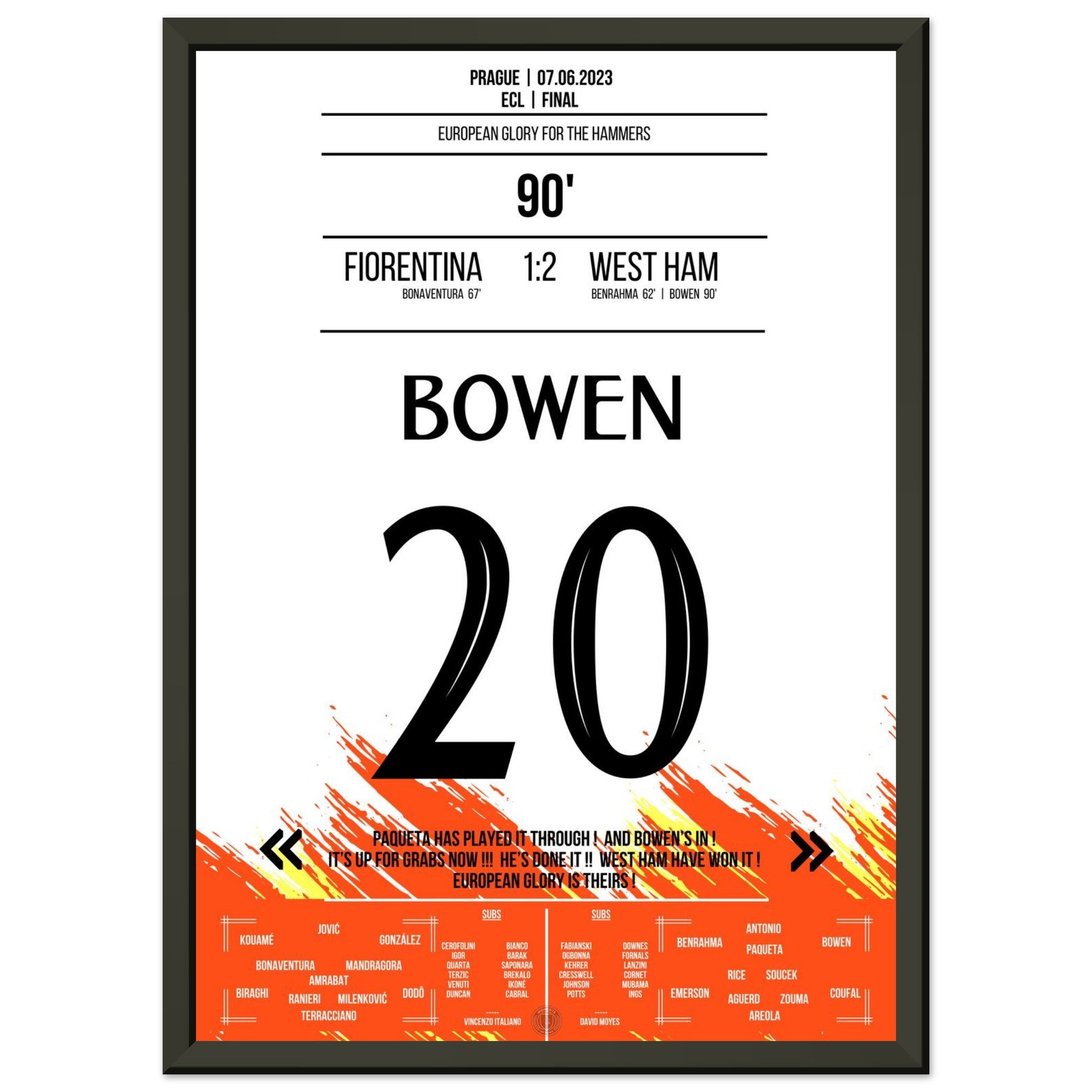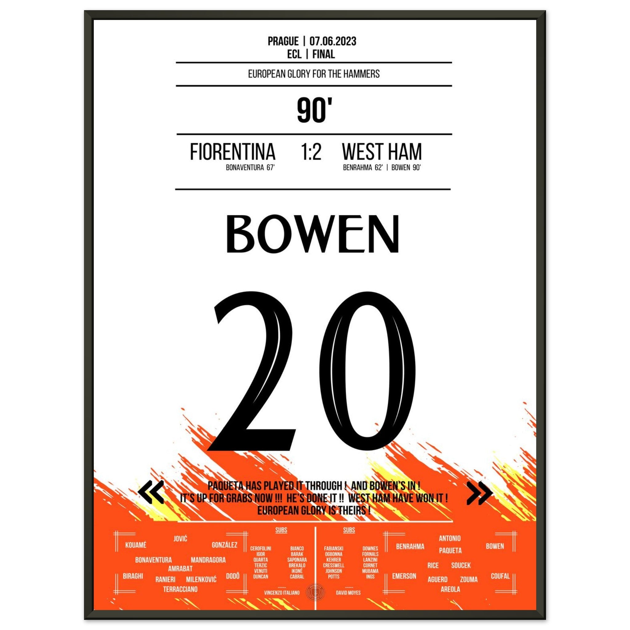 Aquí viene nuestra impresión premium de este momento de fútbol inolvidable para la mejor experiencia del fanático. Impresa en papel premium semibrillante de alto gramaje, esta obra de arte brilla con colores realzados y un brillo sutil que resalta cada detalle.