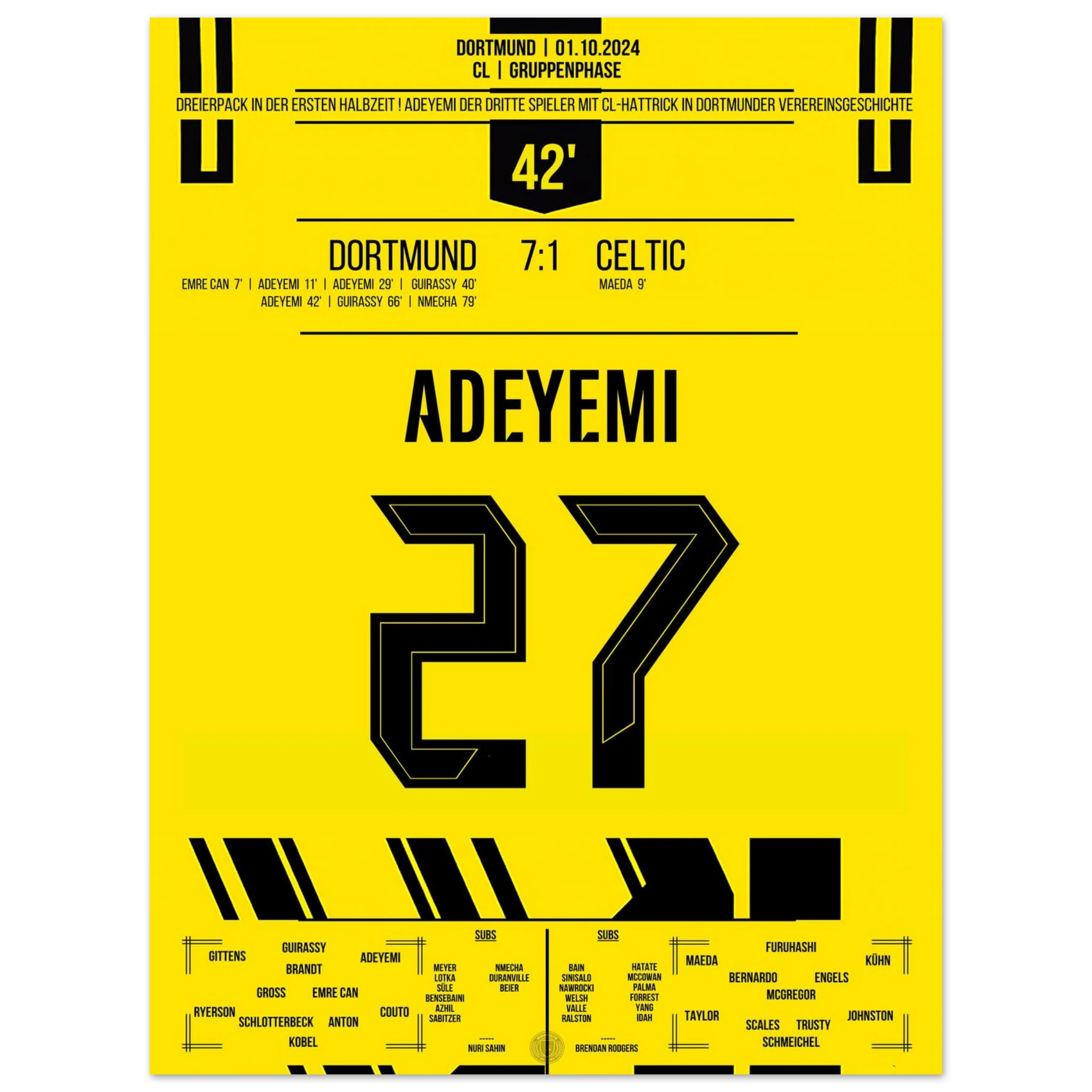 1. Oktober 2024 – Dortmund vs. Celtic 7:1 – Adeyemis Hattrick-Nacht: