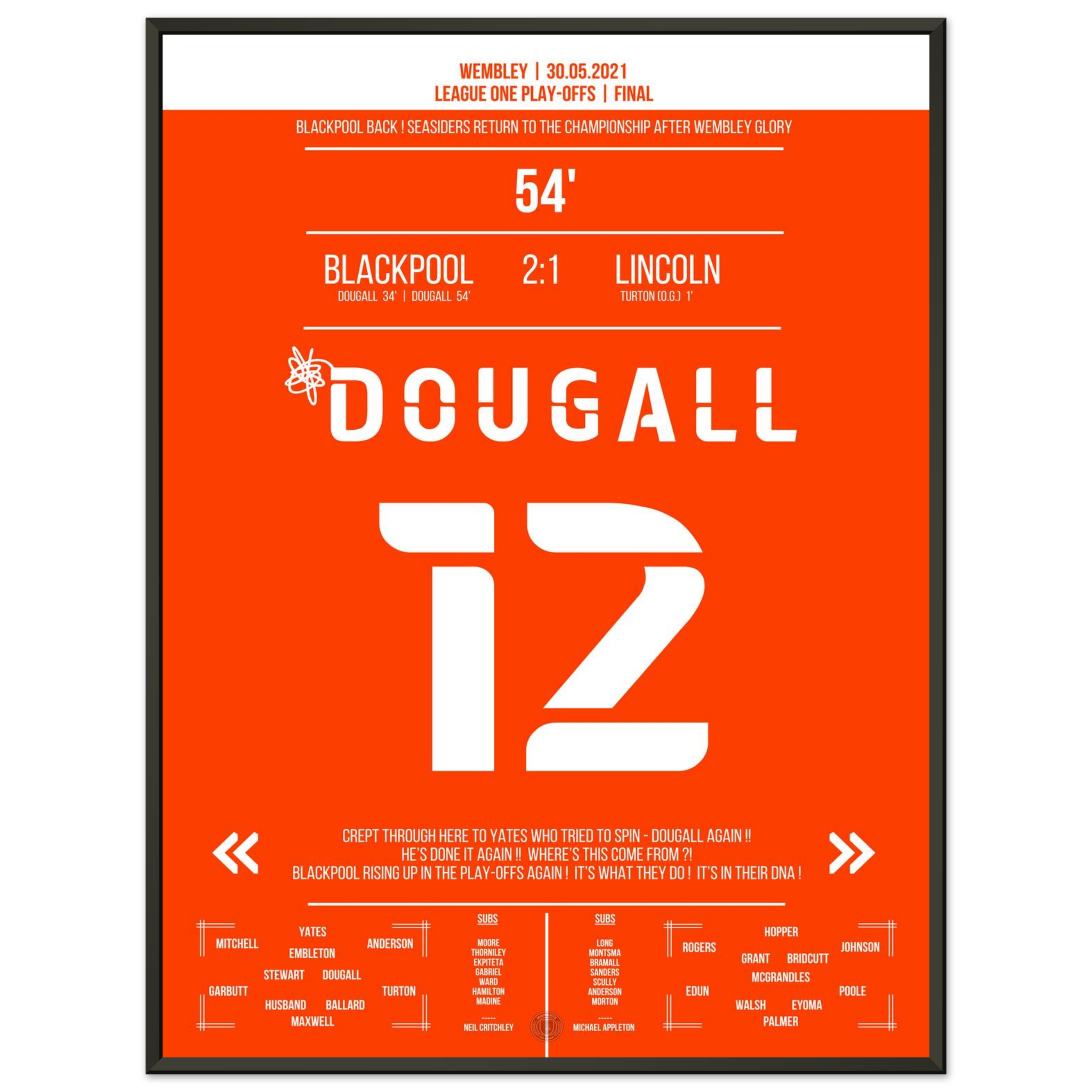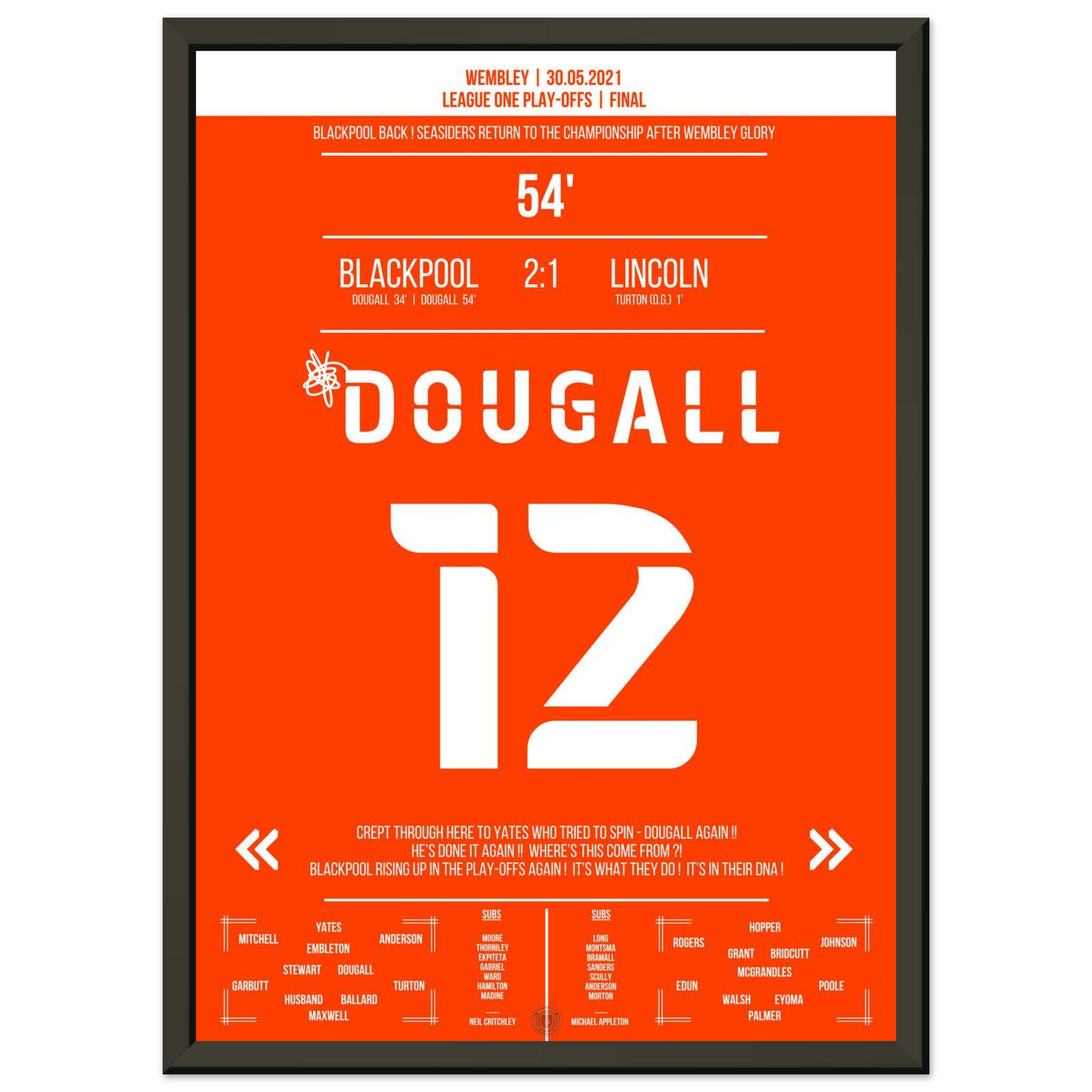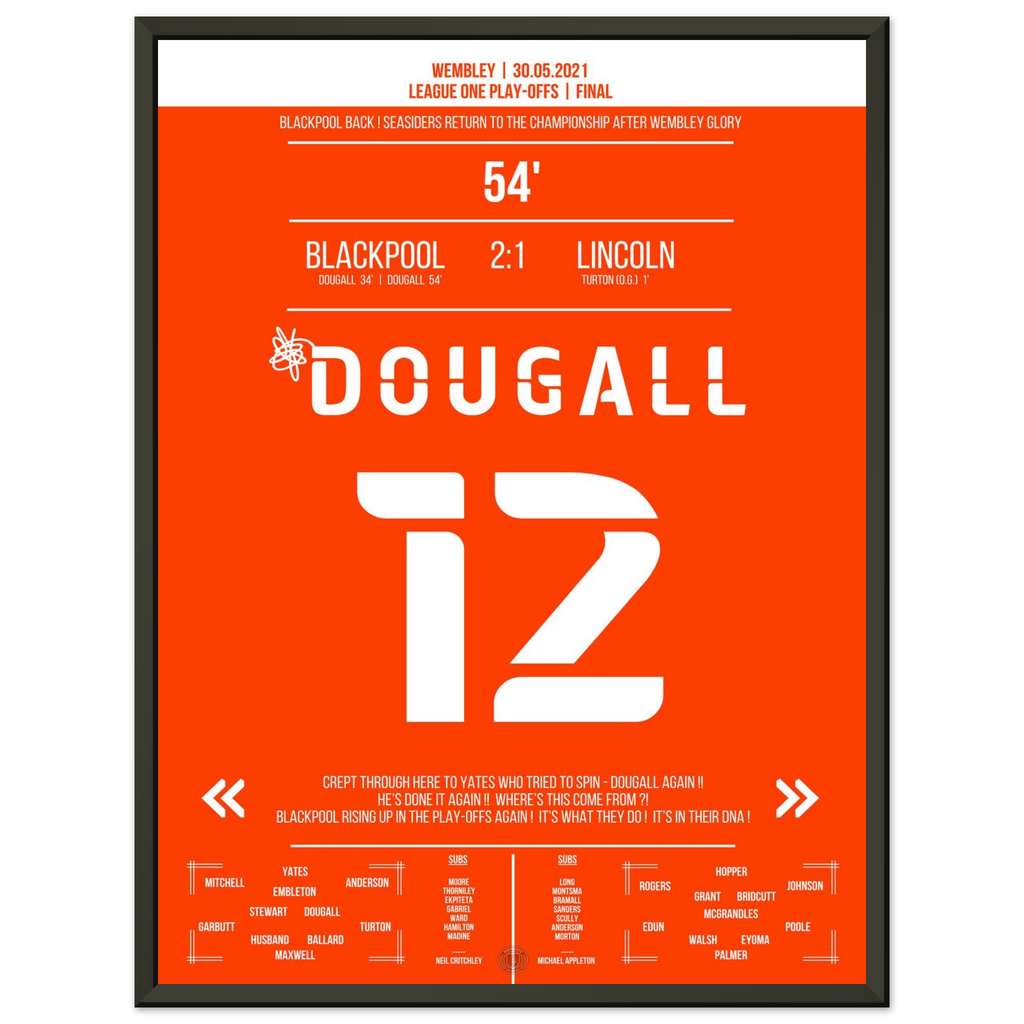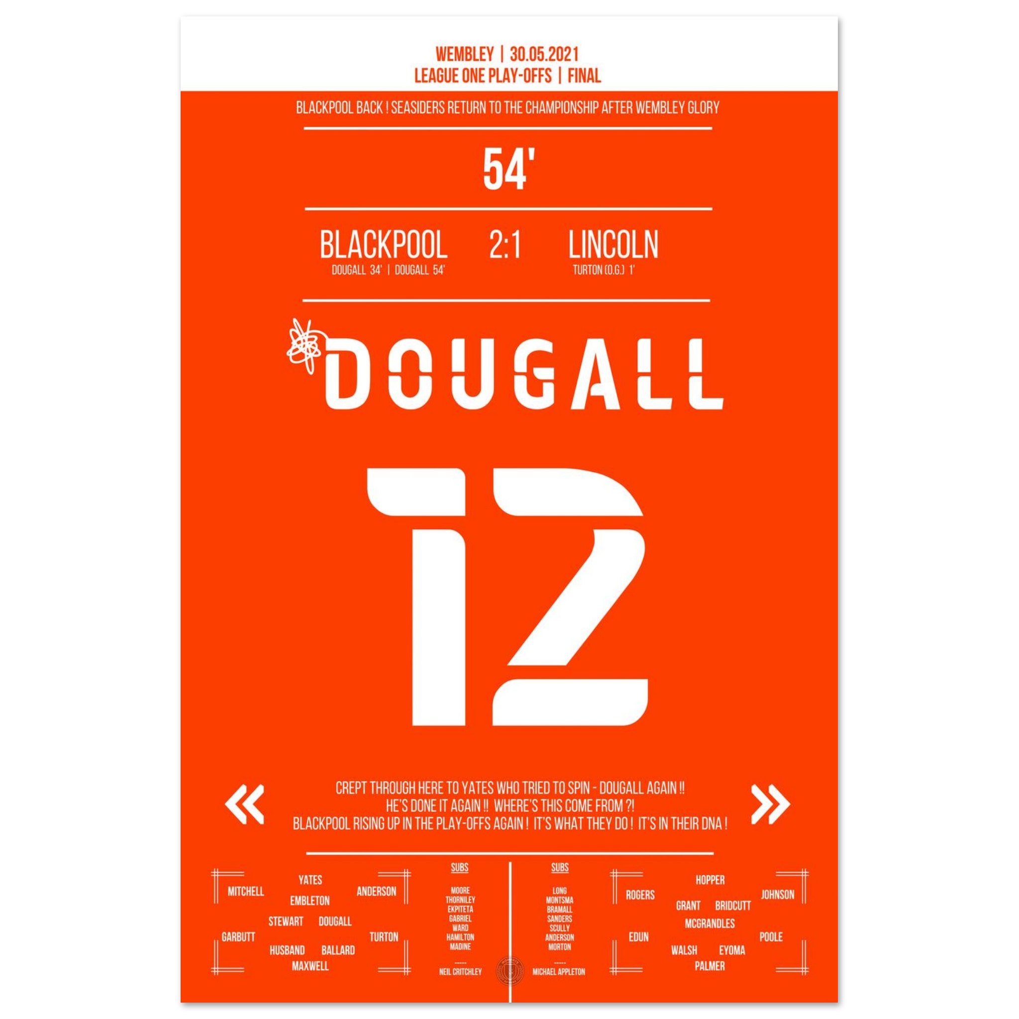 Dieses Poster fängt den Moment ein, in dem Dougall zum Helden wurde und Blackpool wieder aufstieg.