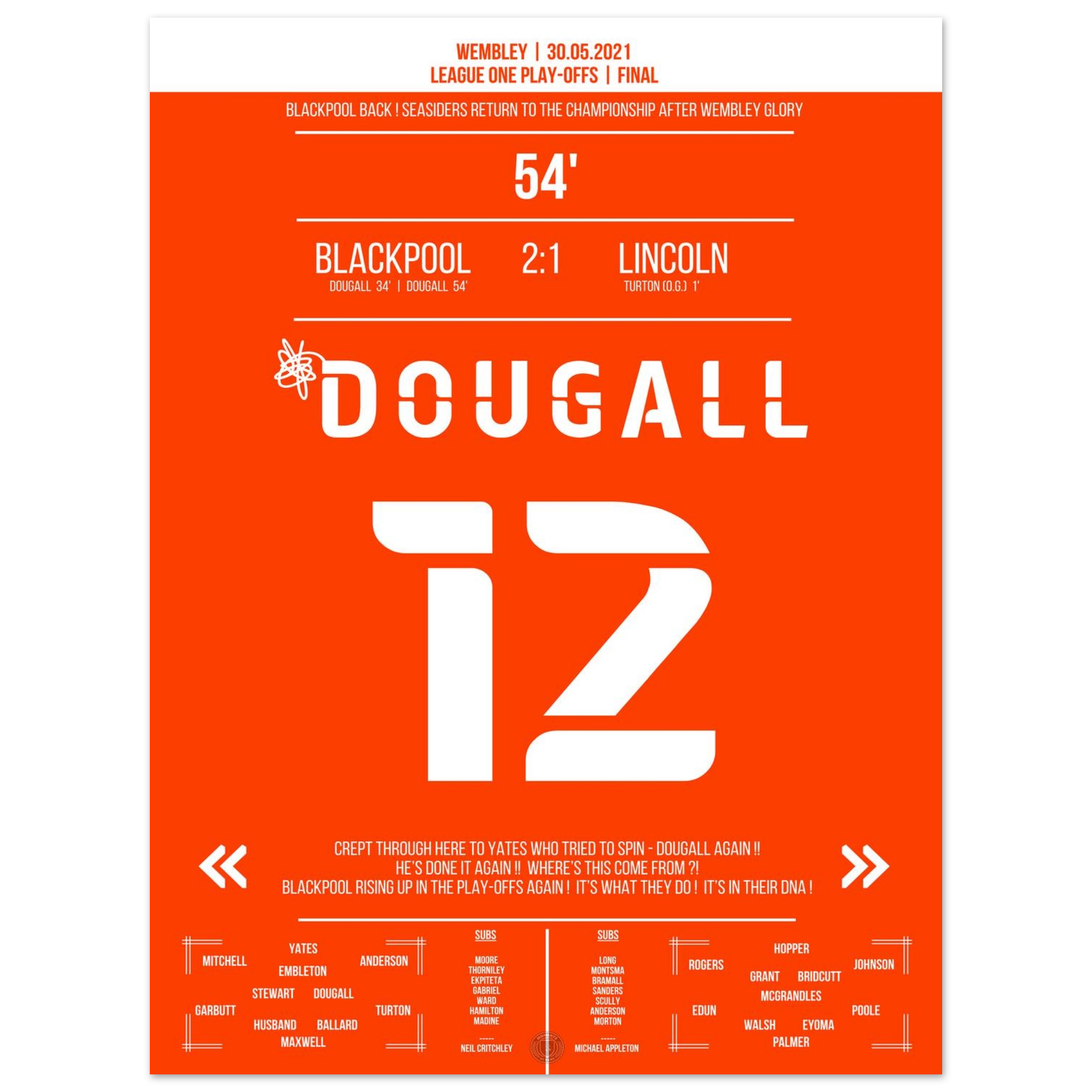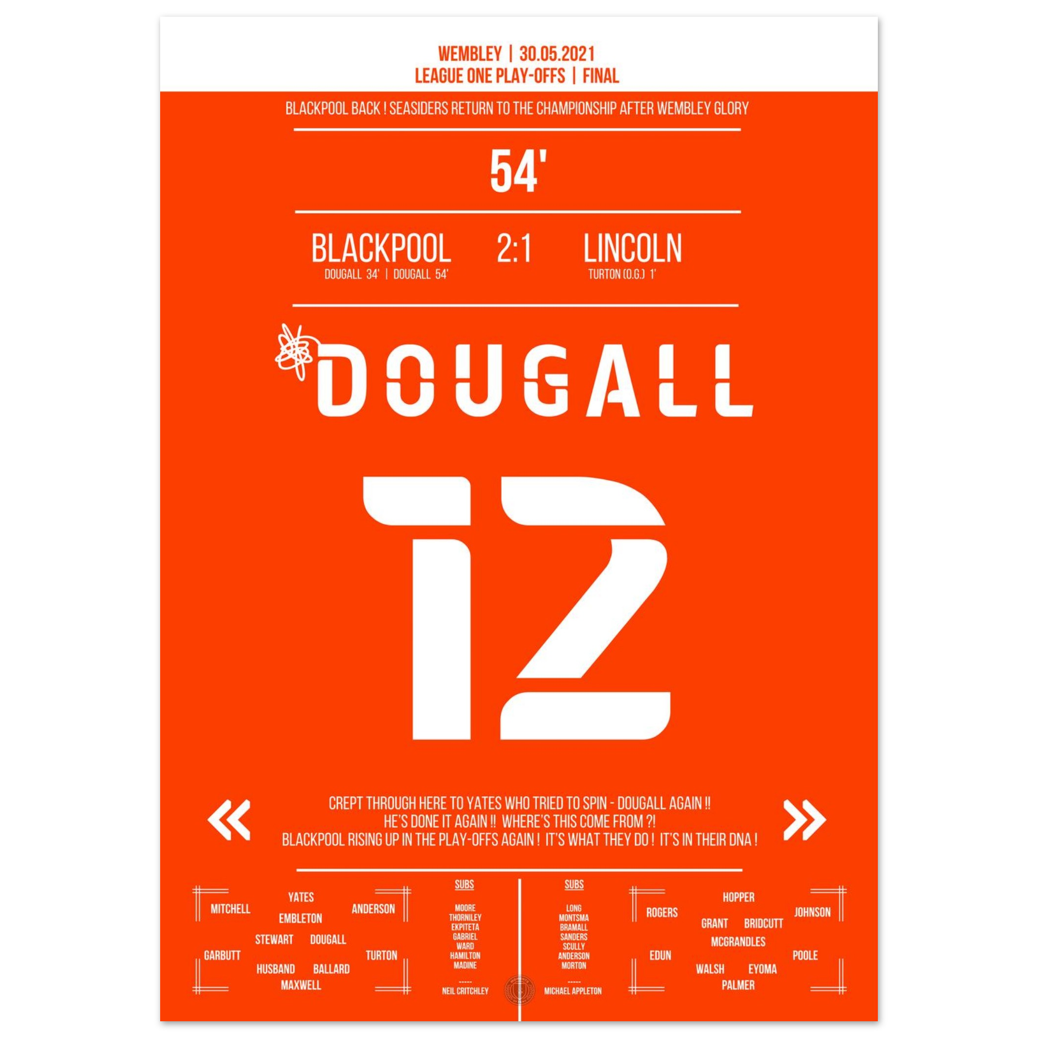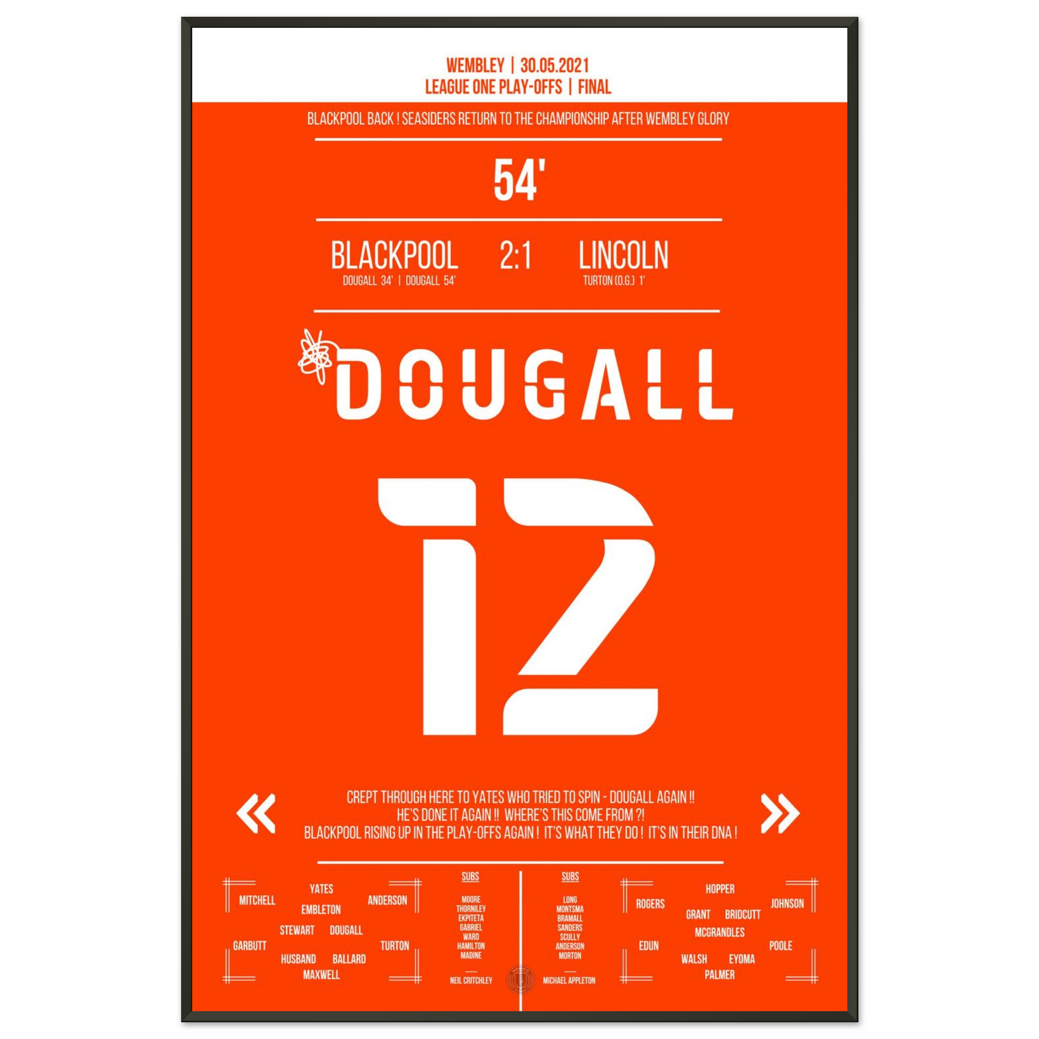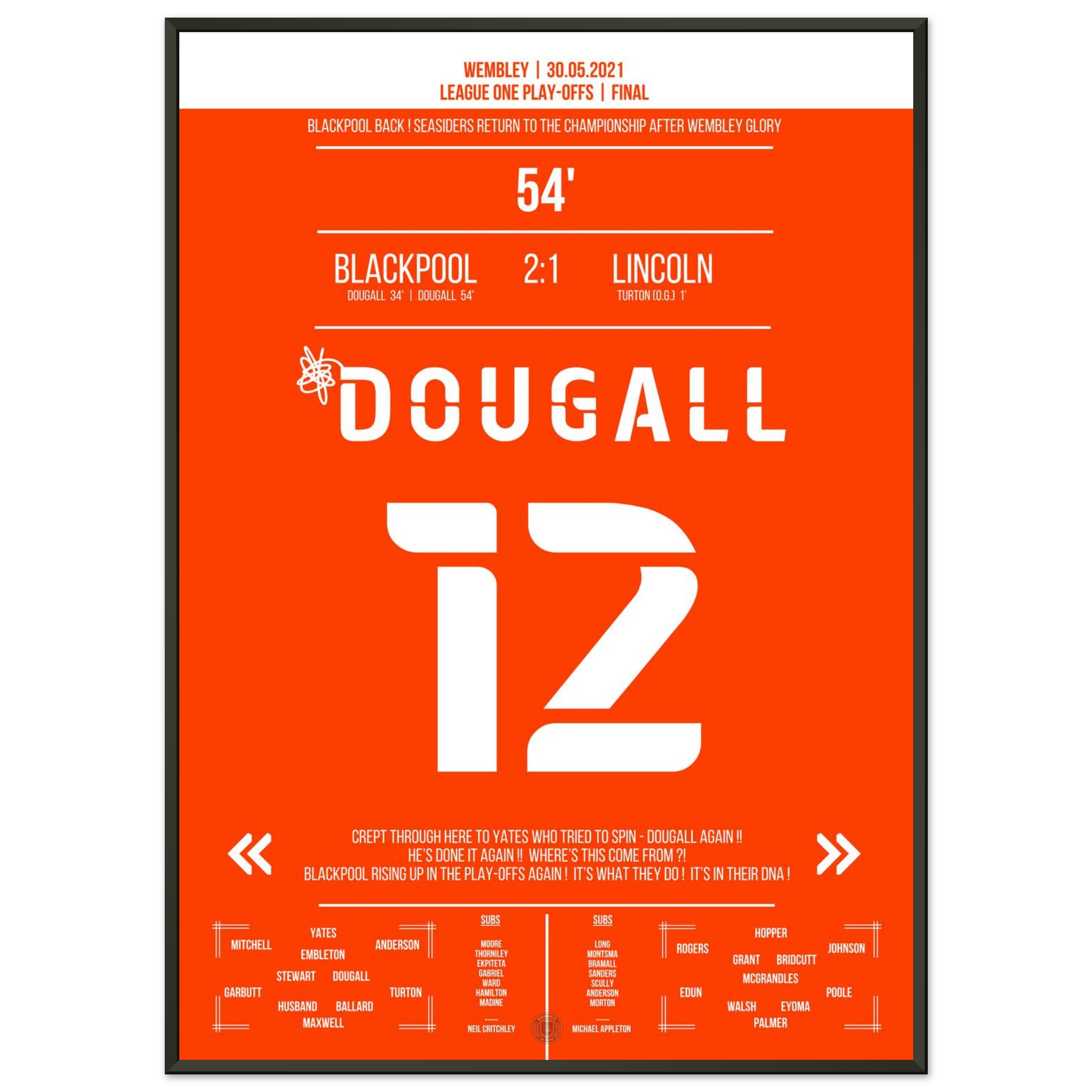 Dieses Poster fängt den Moment ein, in dem Dougall zum Helden wurde und Blackpool wieder aufstieg.