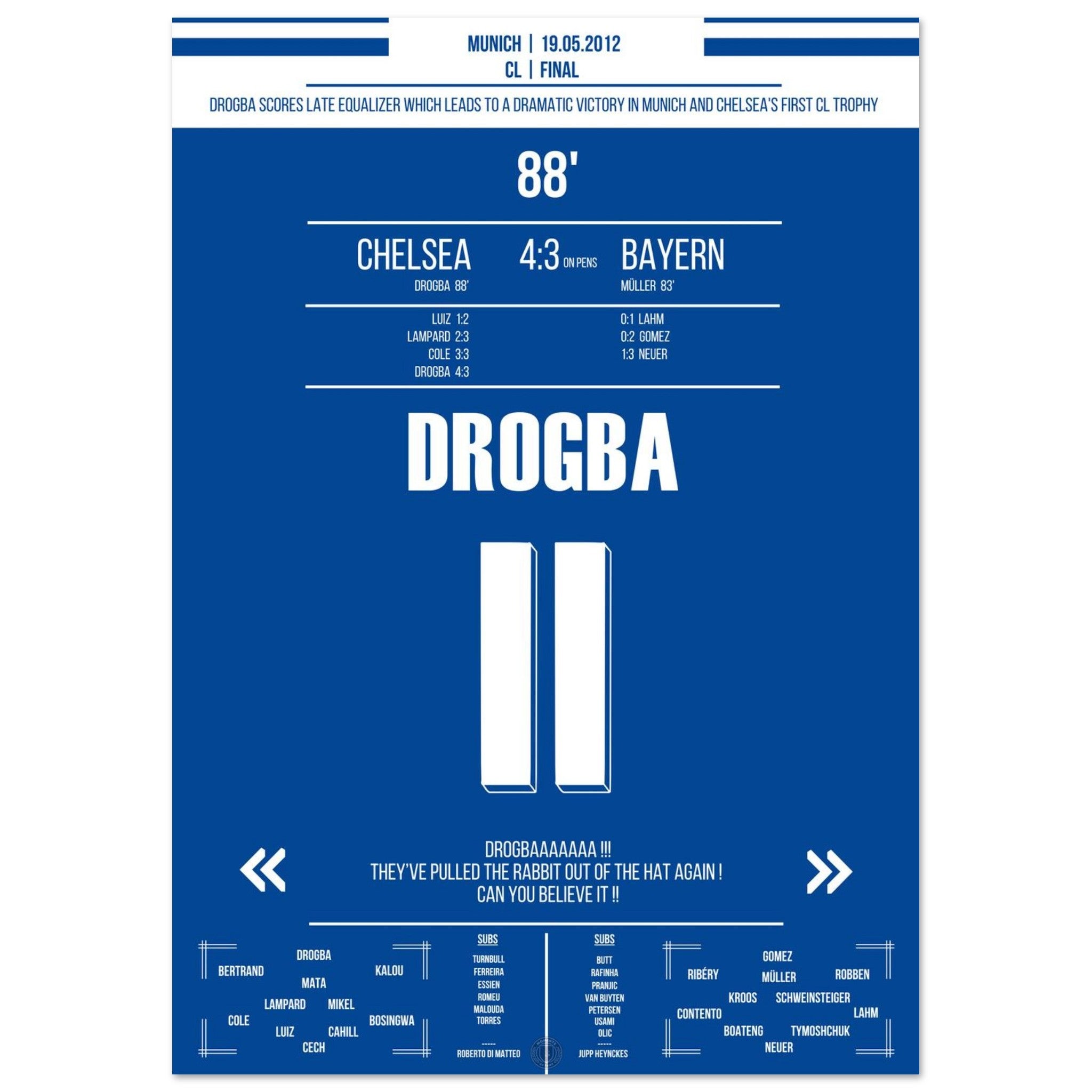 El gol de cabeza de Drogba para el empate en la final de la Champions League 2012