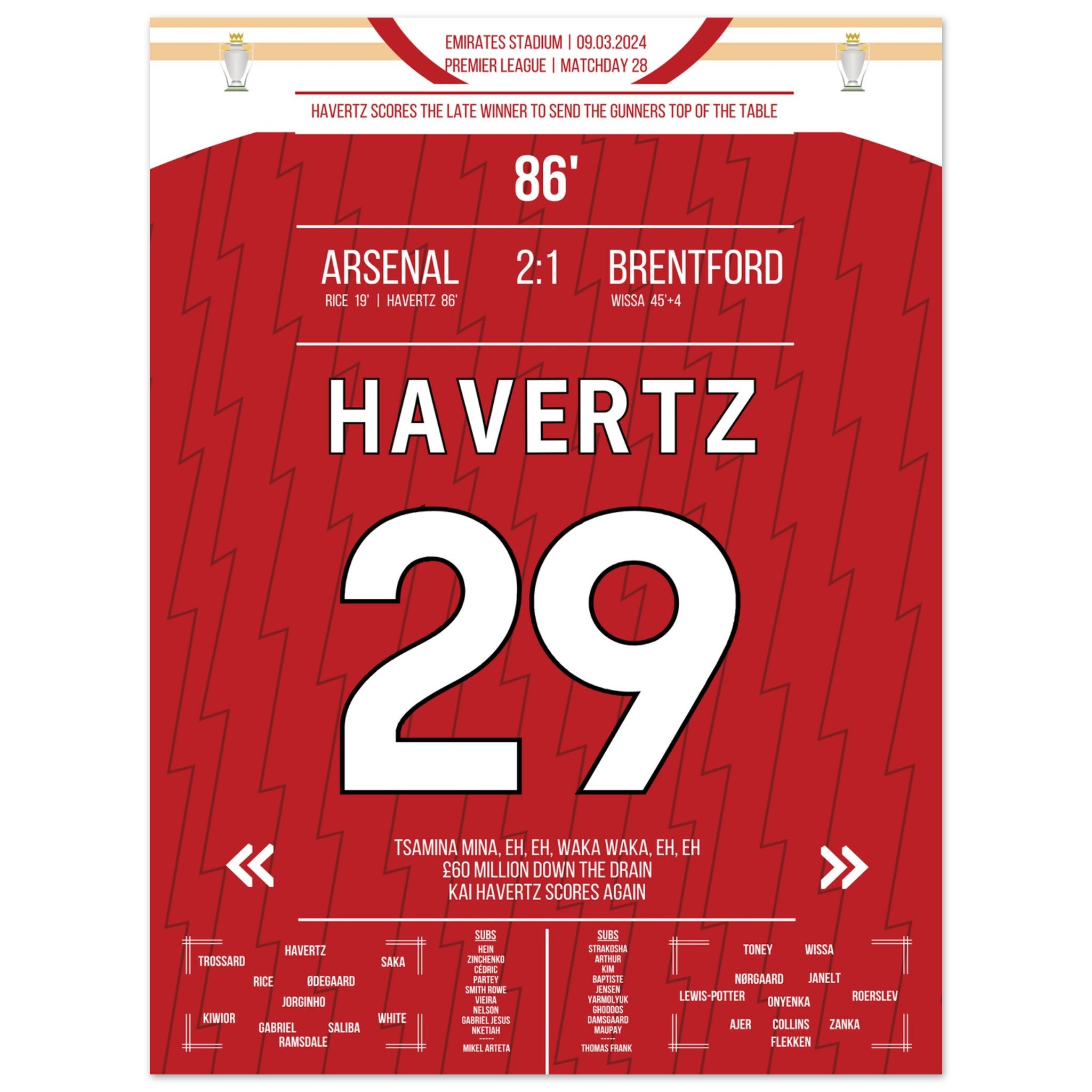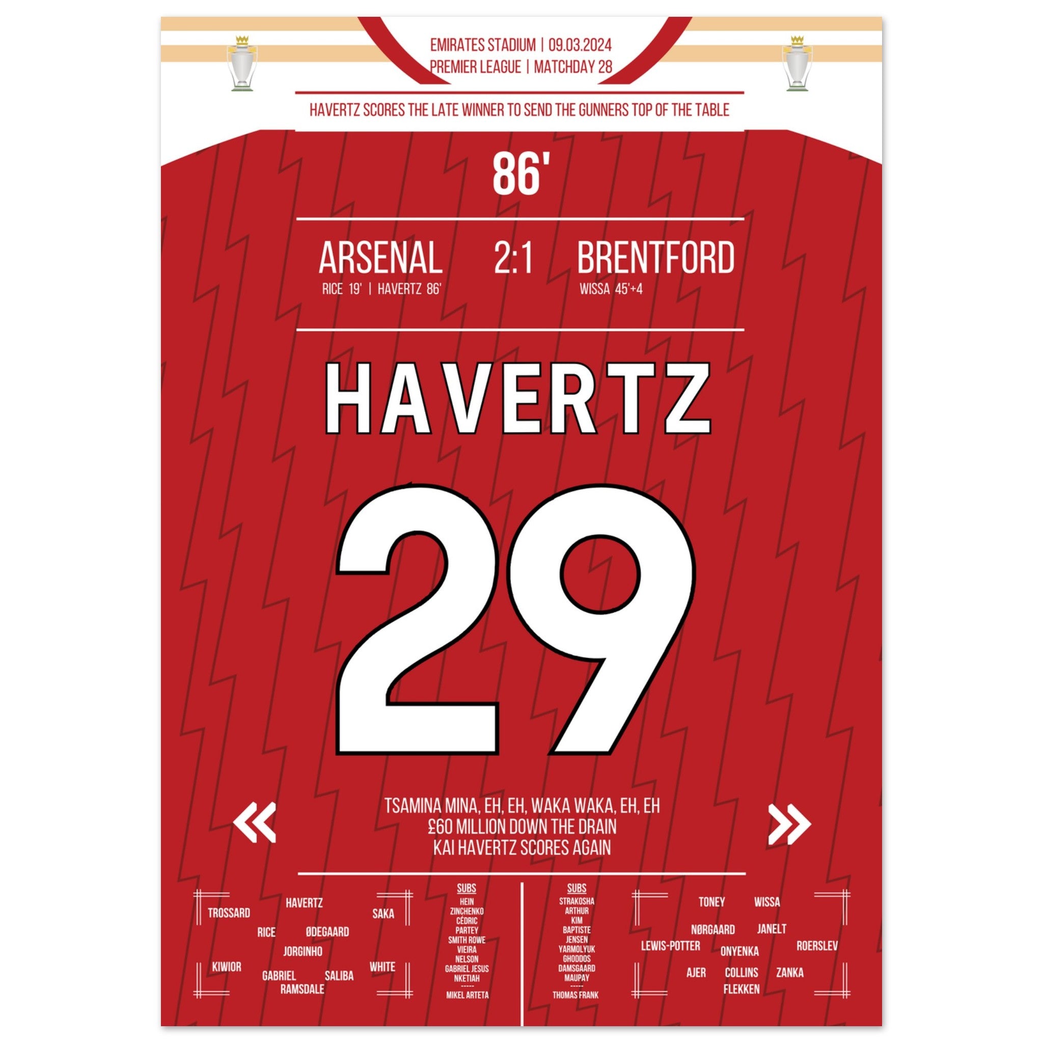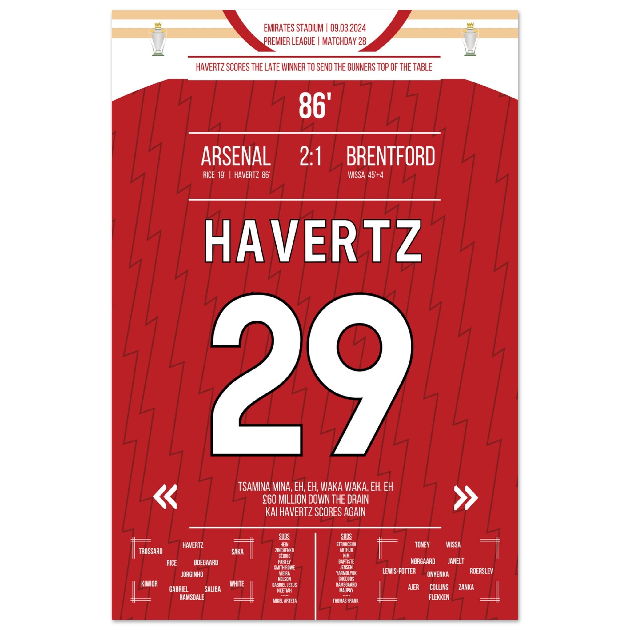 Havertz marca el gol de la victoria tardía que lleva a los Gunners a la cima de la tabla.
