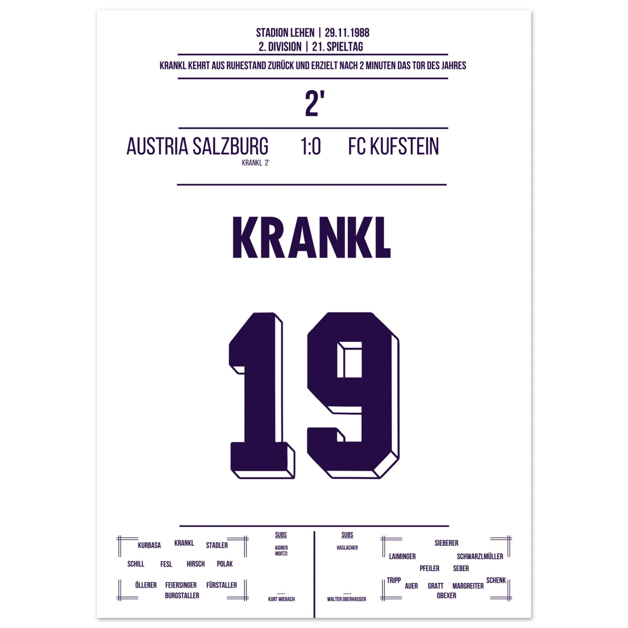 Krankl en 2 minutos del retiro al gol del año