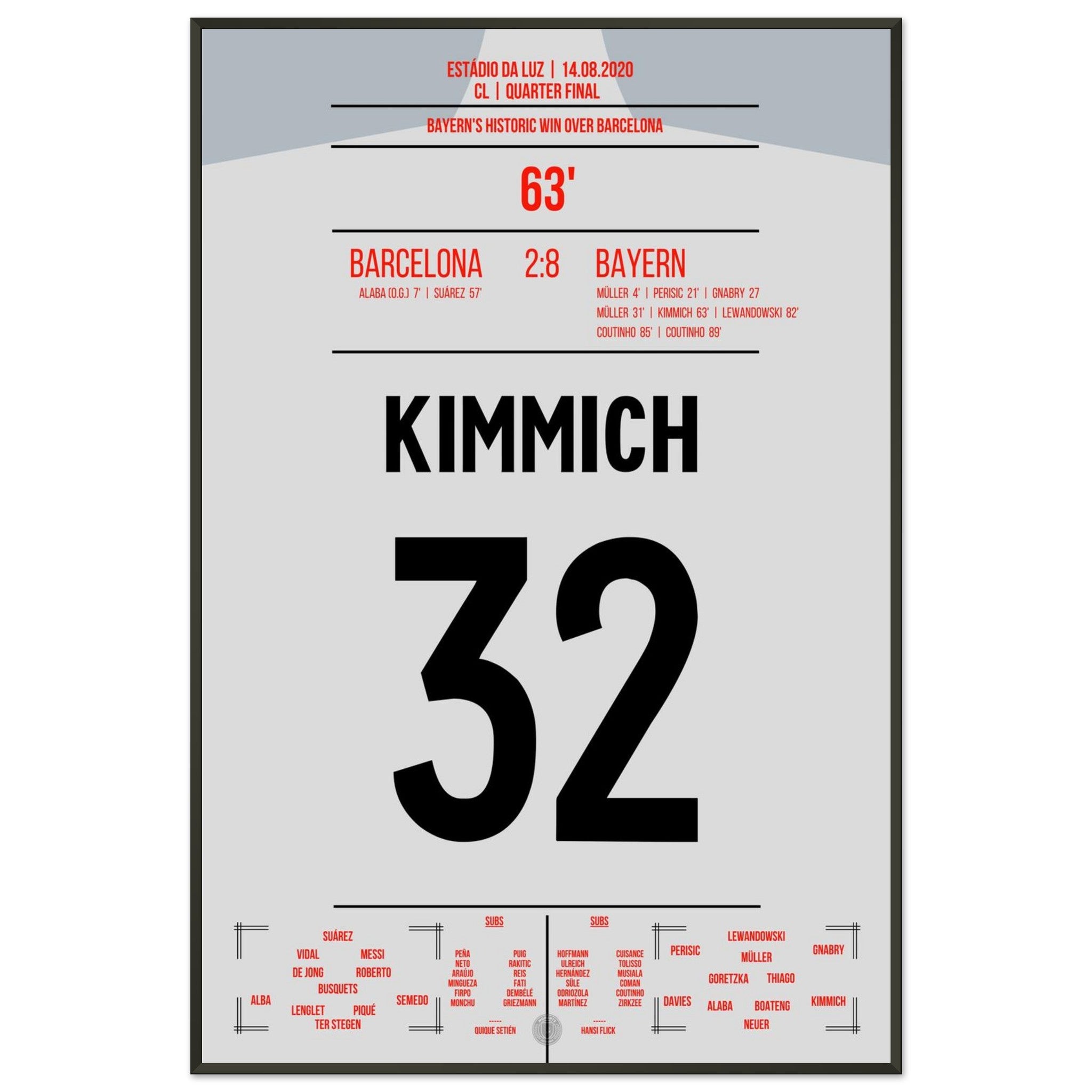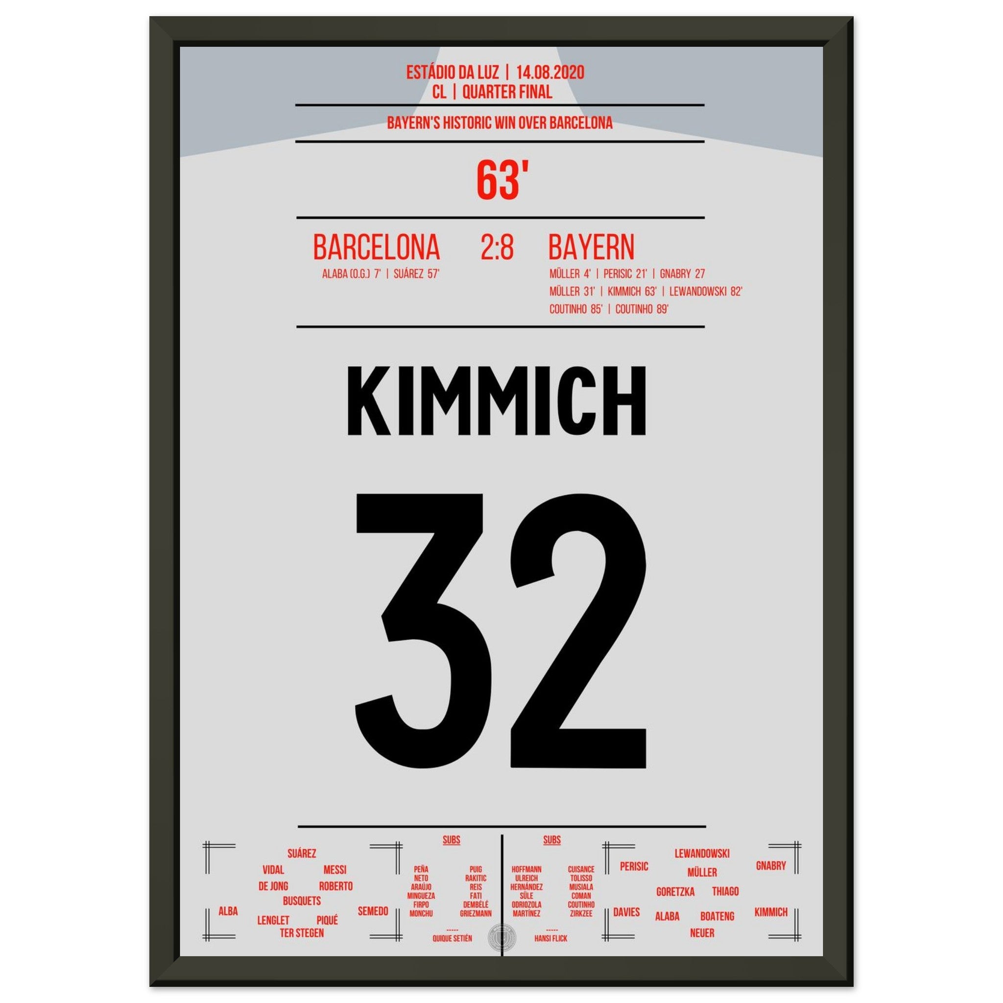 Puede tener la seguridad de que cada póster y marco se envía en un embalaje resistente para garantizar que llegue en perfectas condiciones. Es el complemento perfecto para la colección de cualquier aficionado al fútbol o el regalo perfecto para el fanático incondicional del fútbol en su círculo de amigos o familiares.
