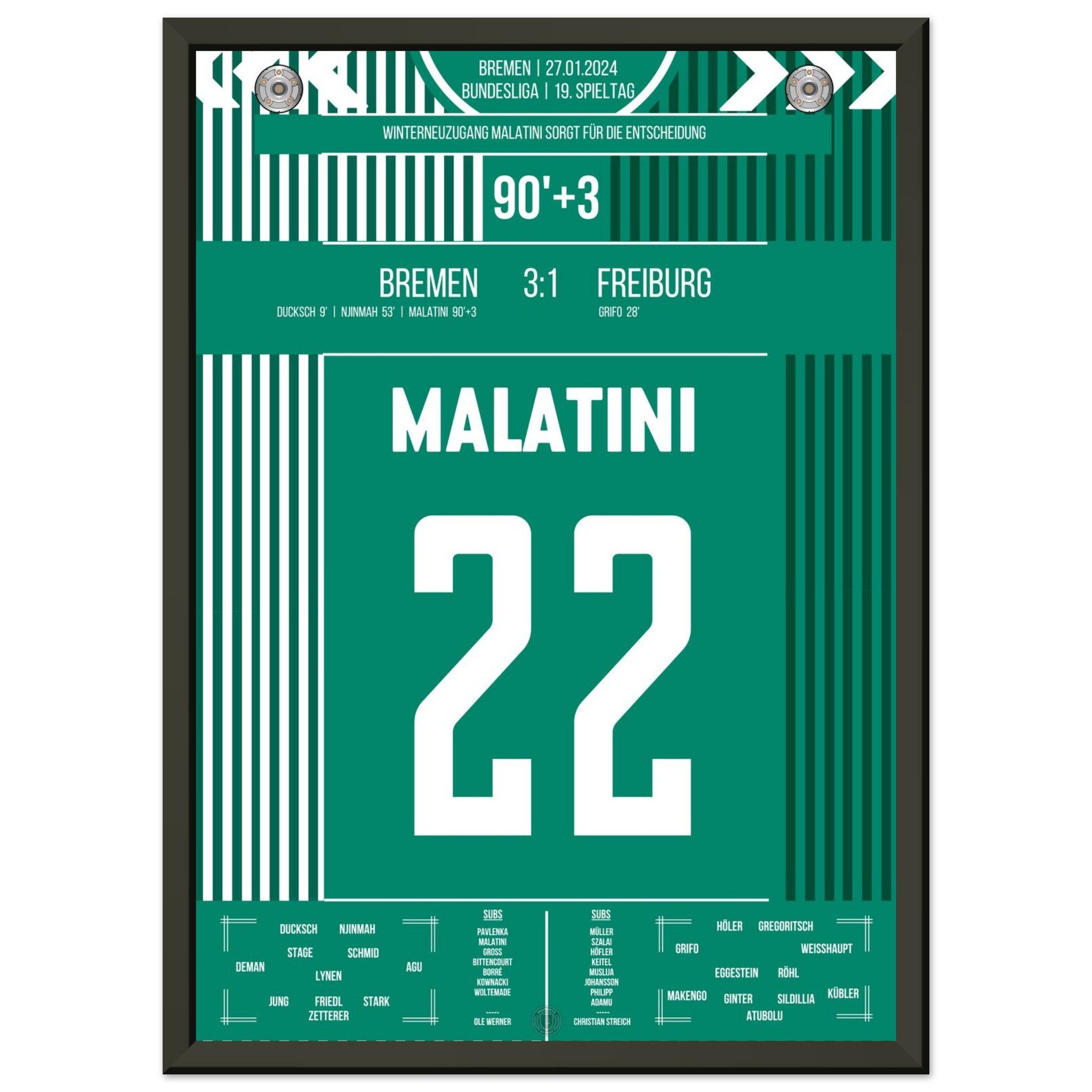 Puede tener la seguridad de que cada póster y marco se envía en un embalaje resistente para garantizar que llegue en perfectas condiciones. Es el complemento perfecto para la colección de cualquier aficionado al fútbol o el regalo perfecto para el fanático incondicional del fútbol en su círculo de amigos o familiares.