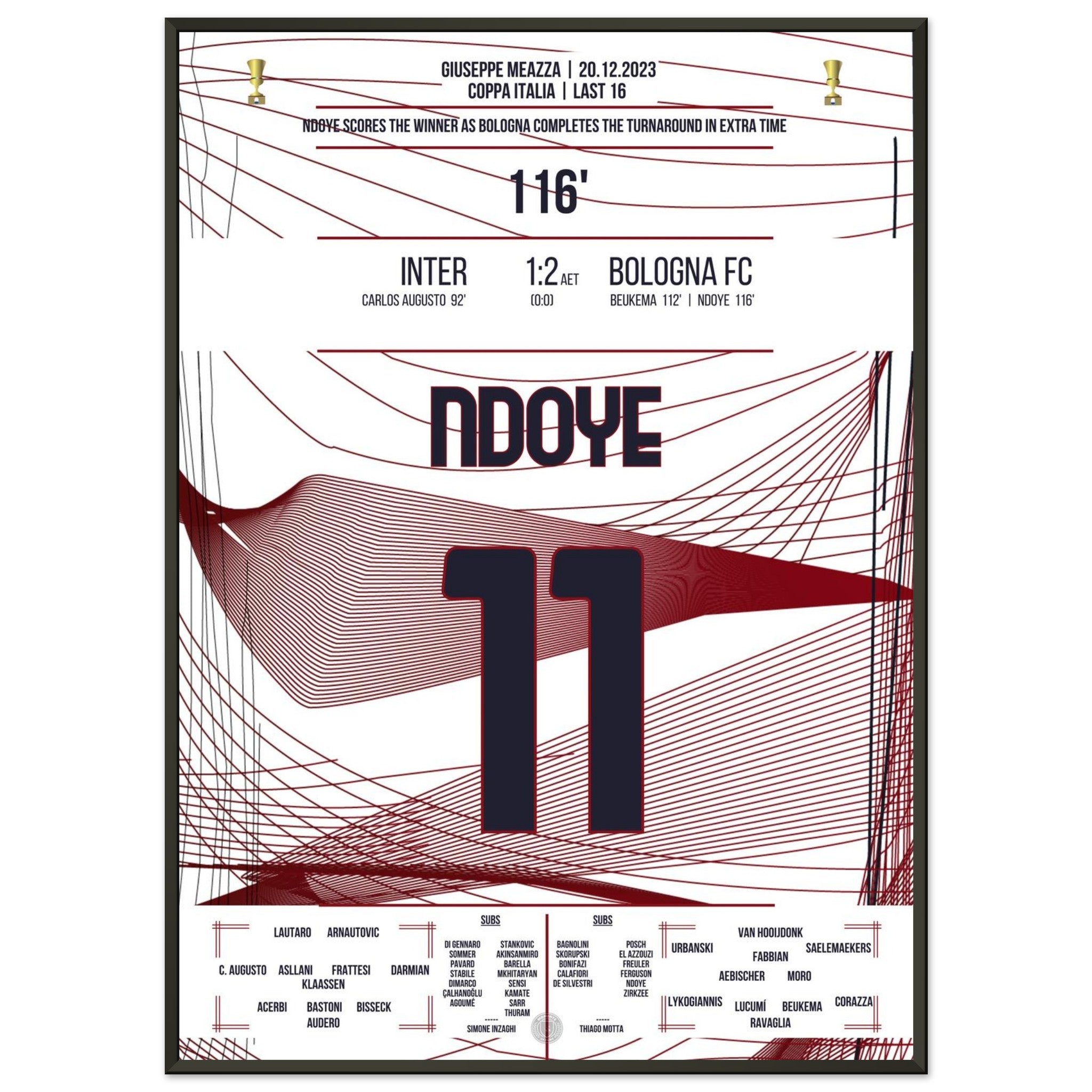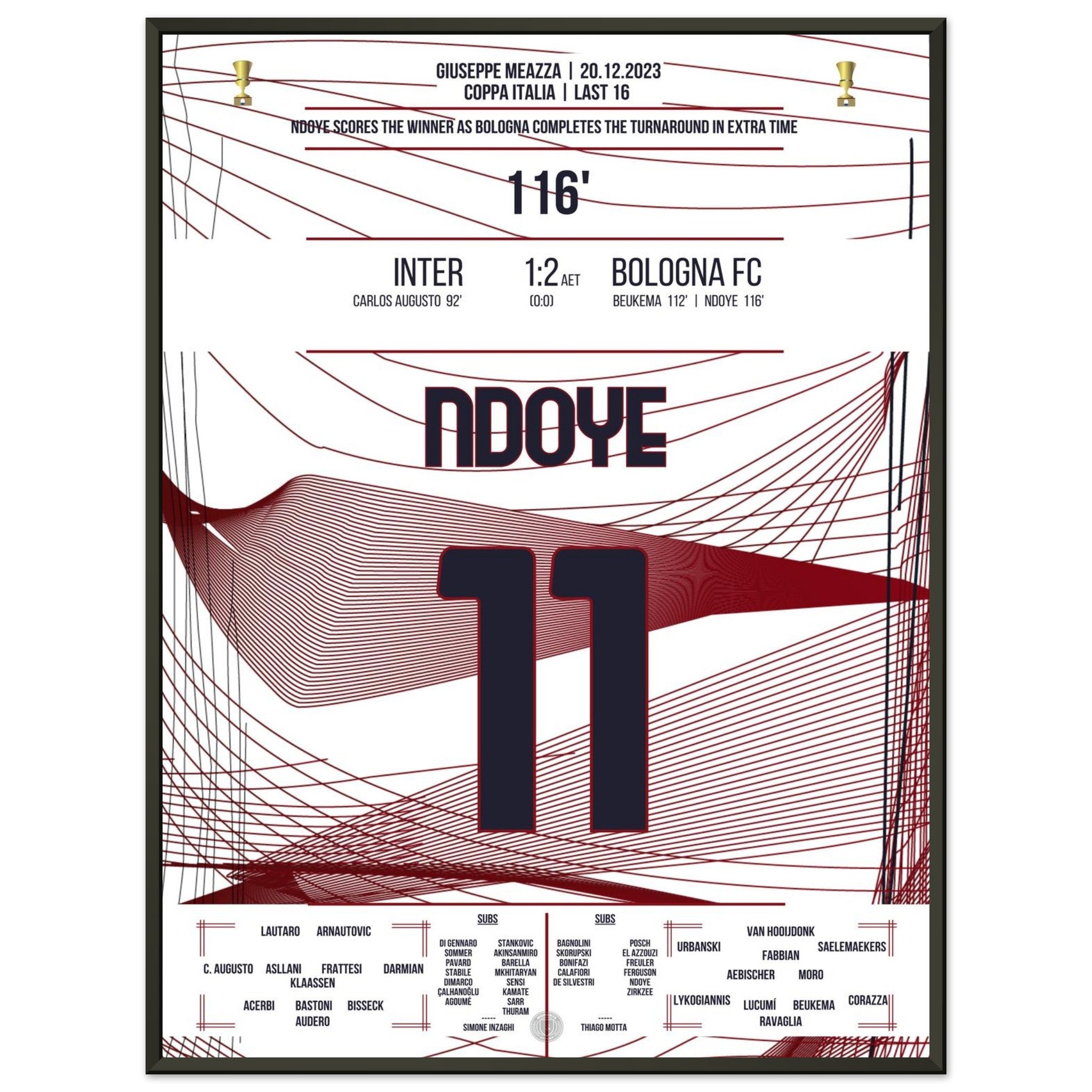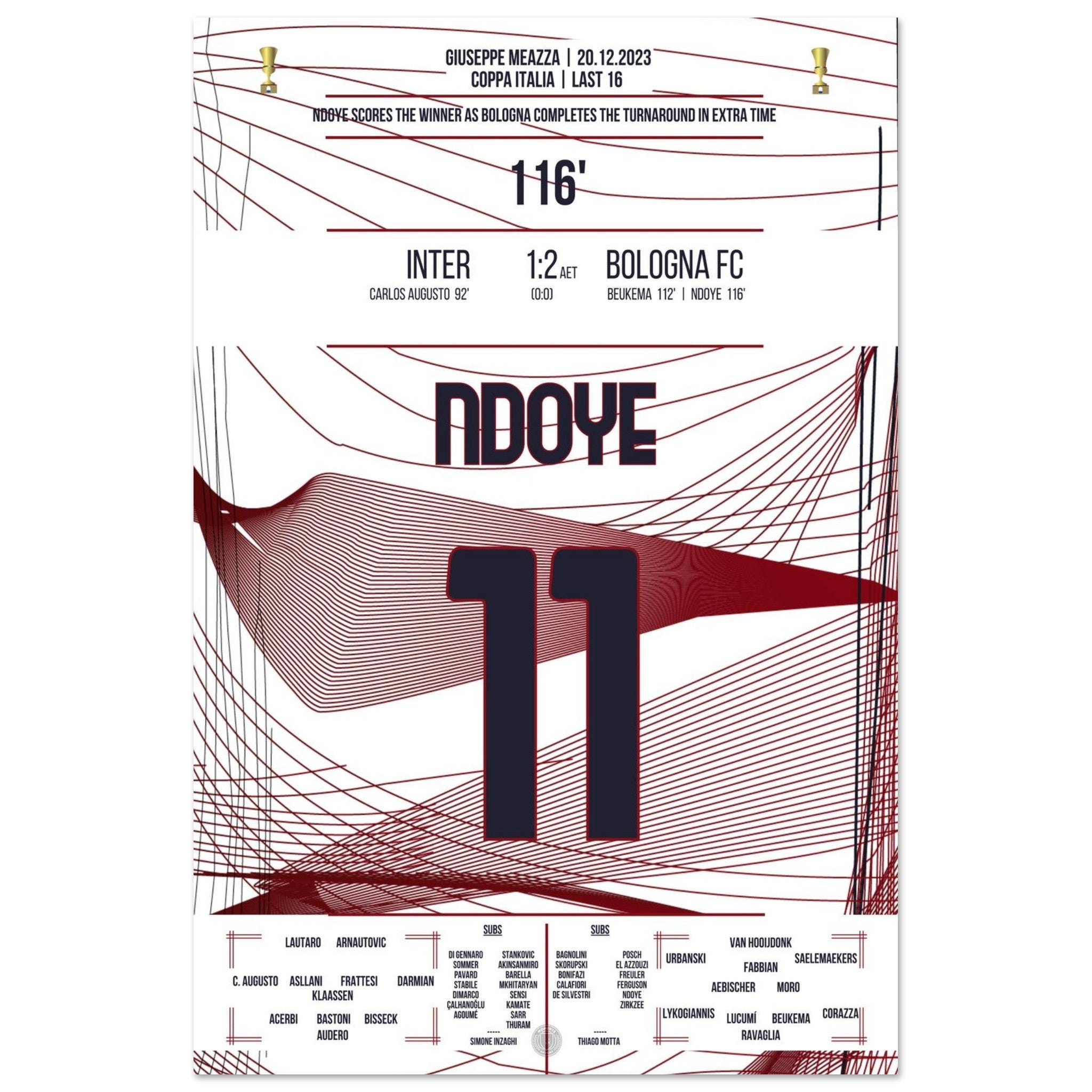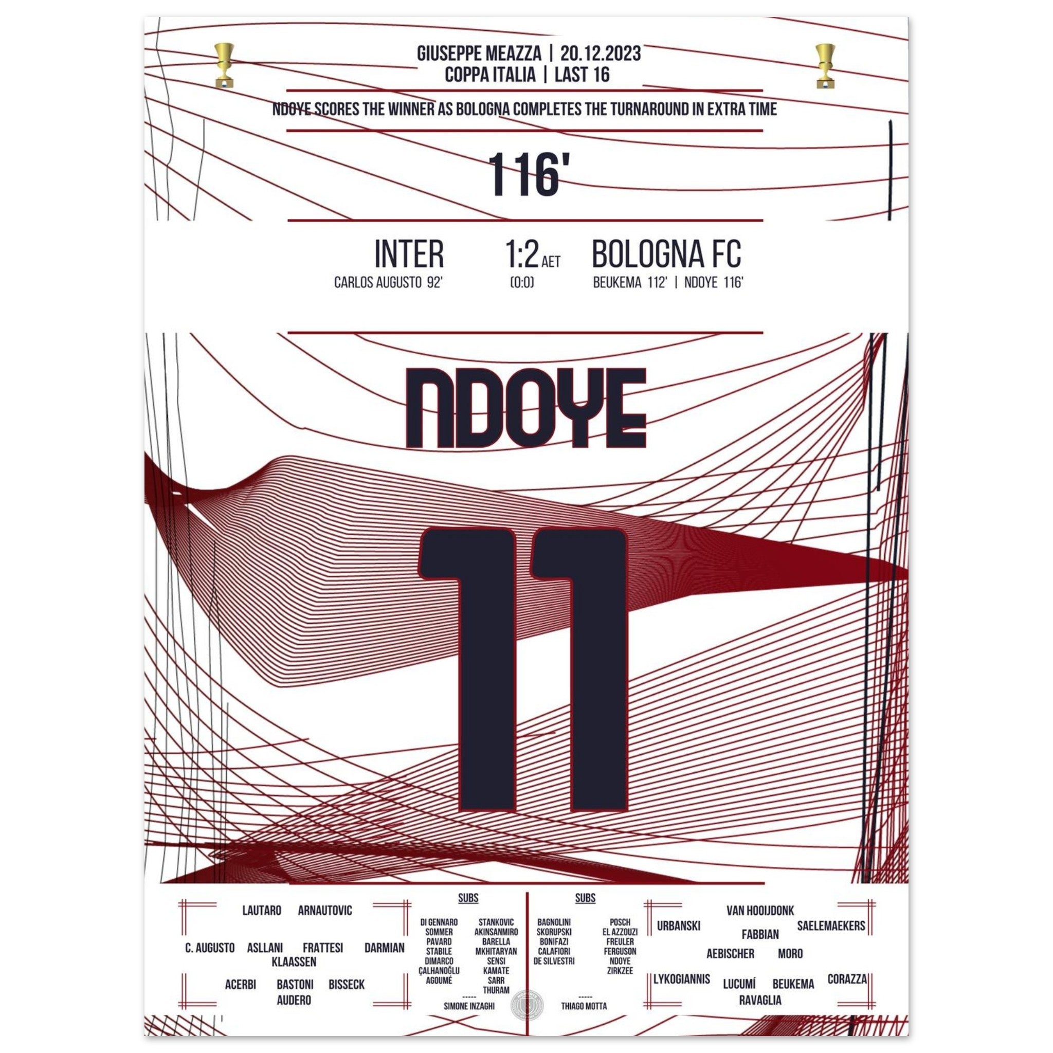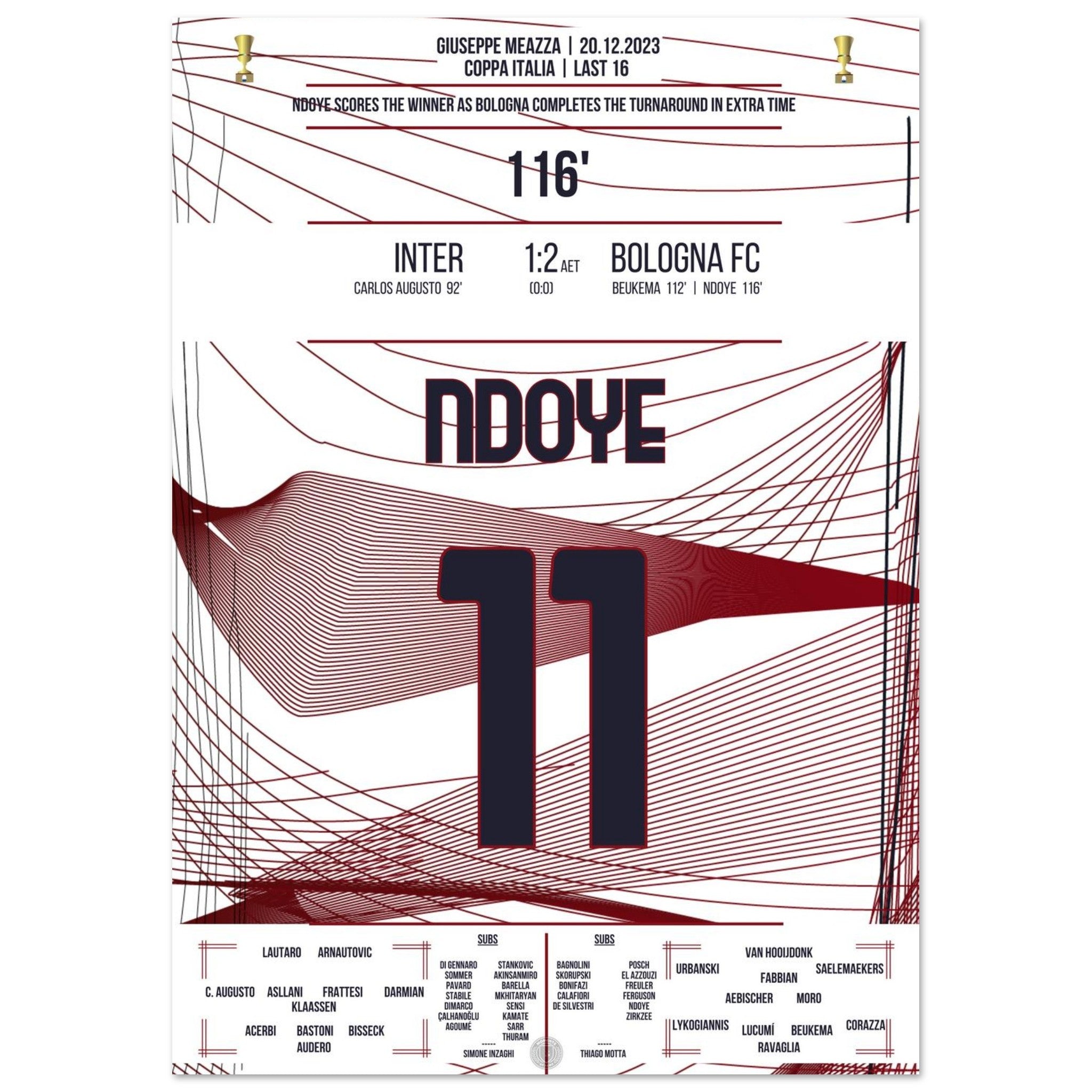 Ndoye marca el gol de la victoria en la prórroga contra el Inter.