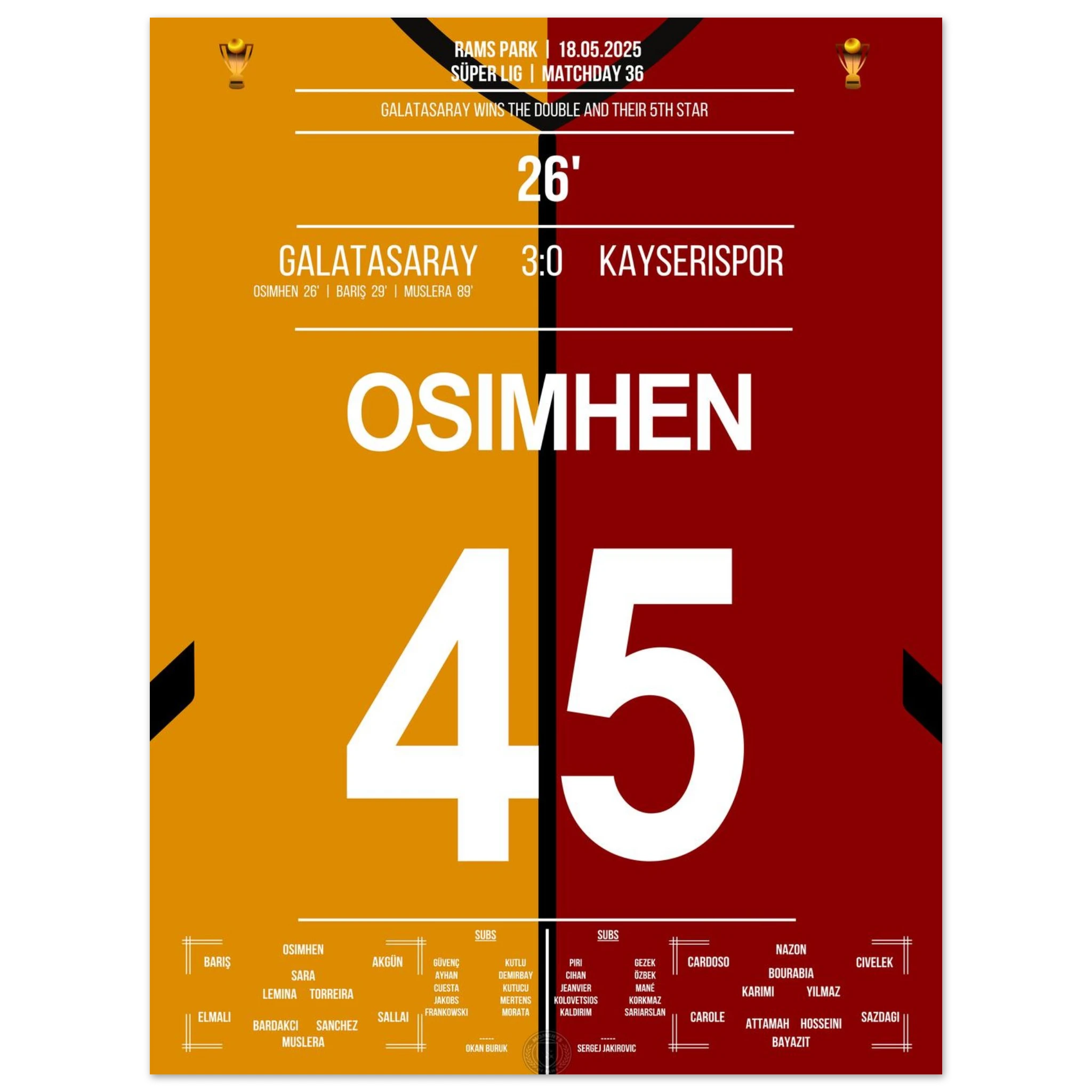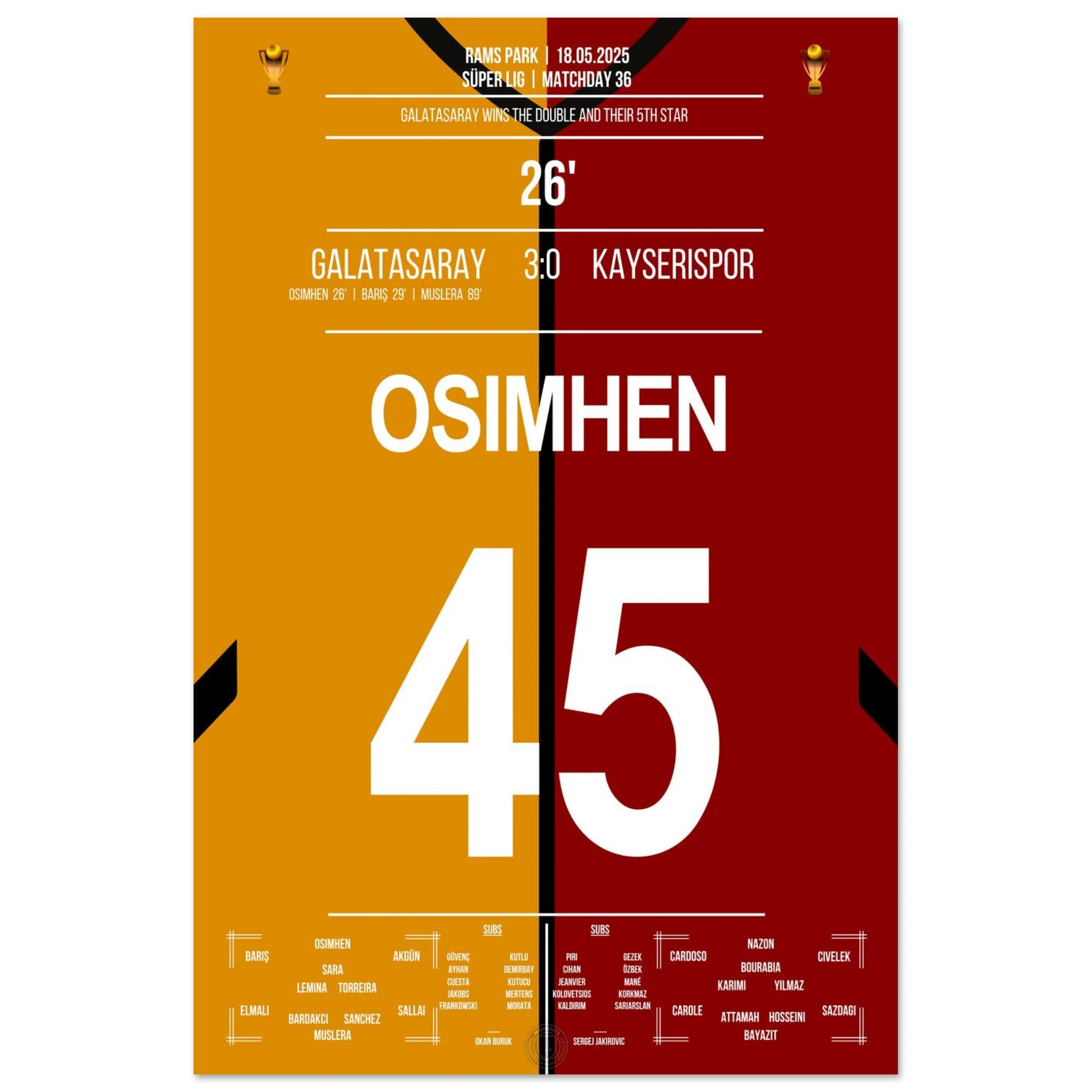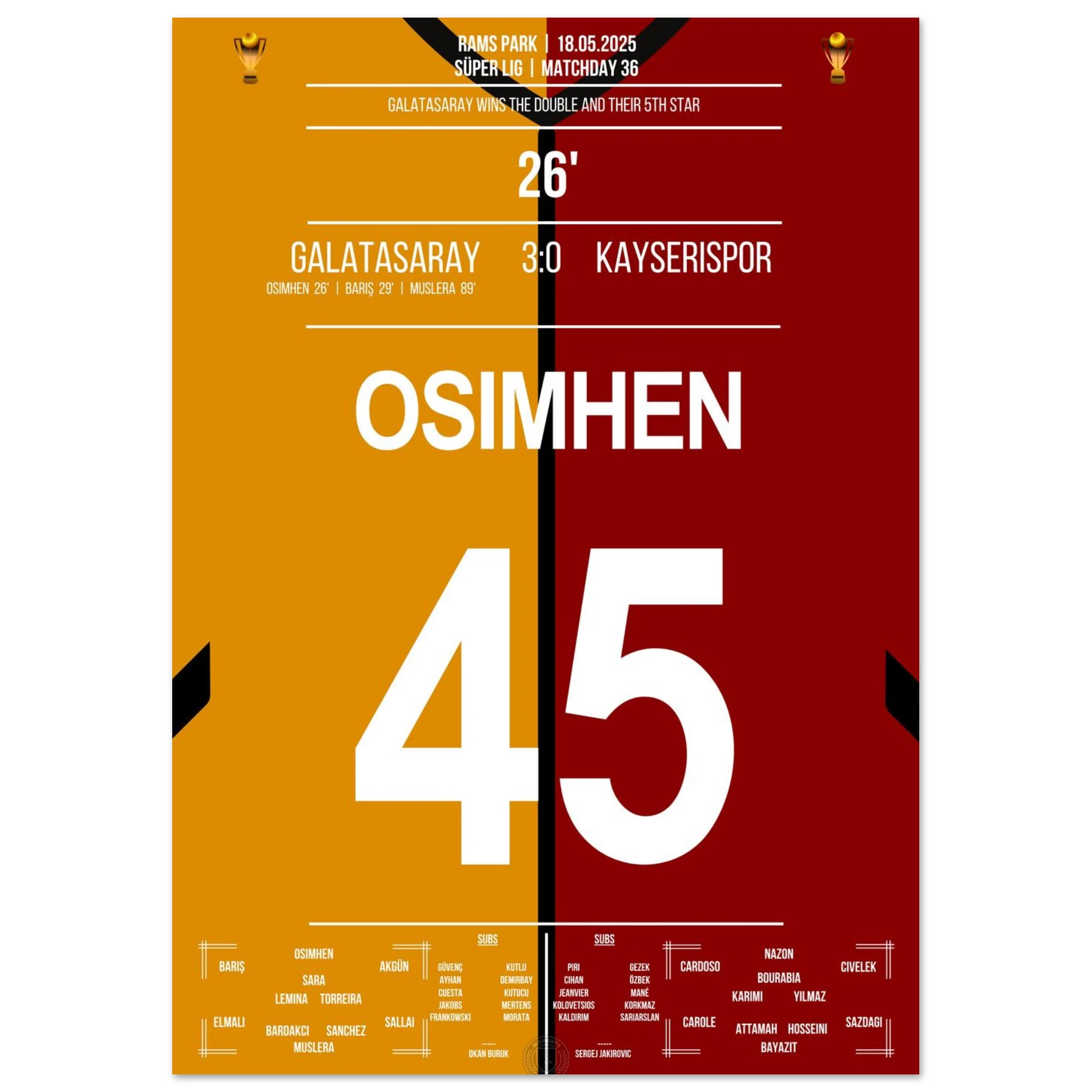 <tc>Osimhen scores and Galatasaray wins its fifth star </tc>