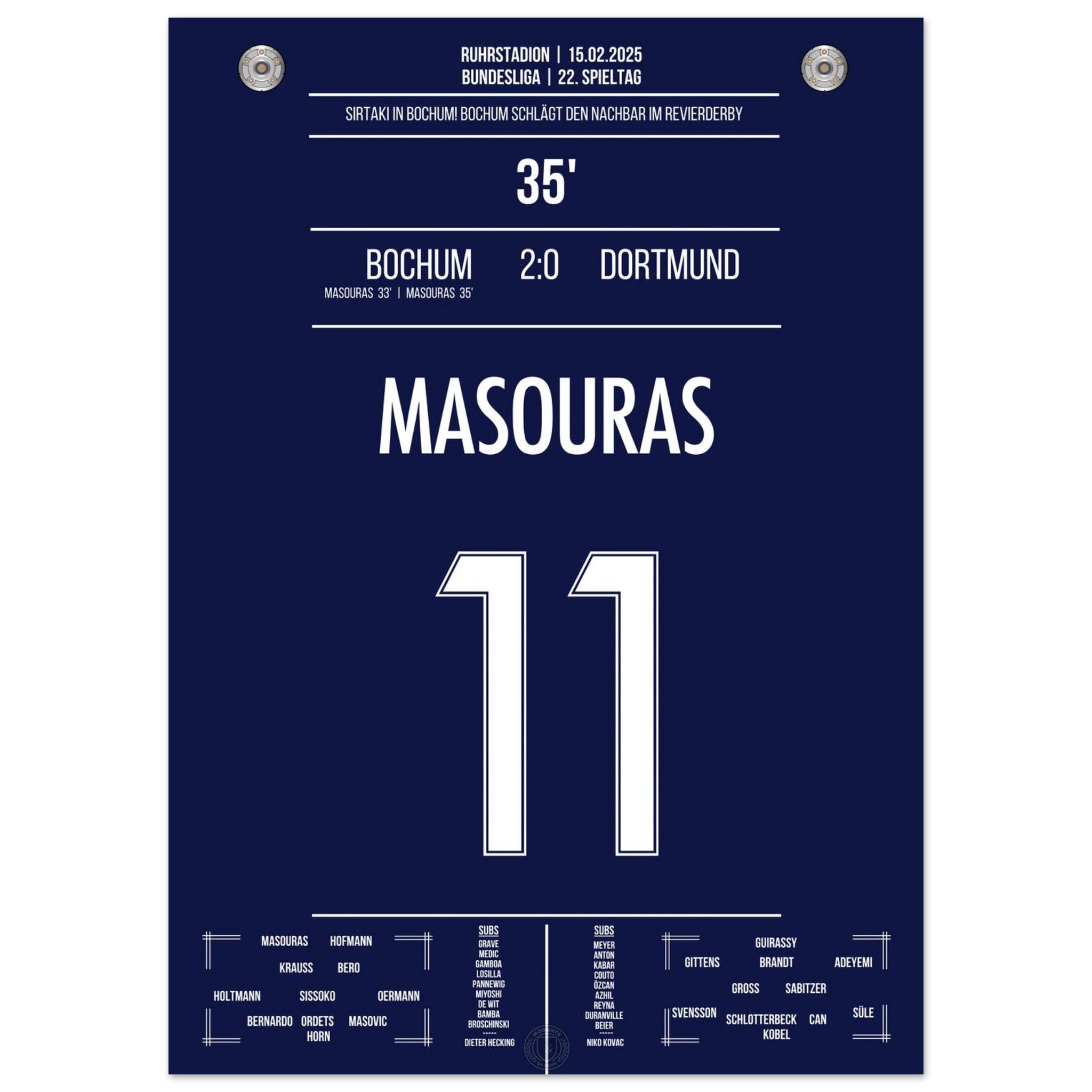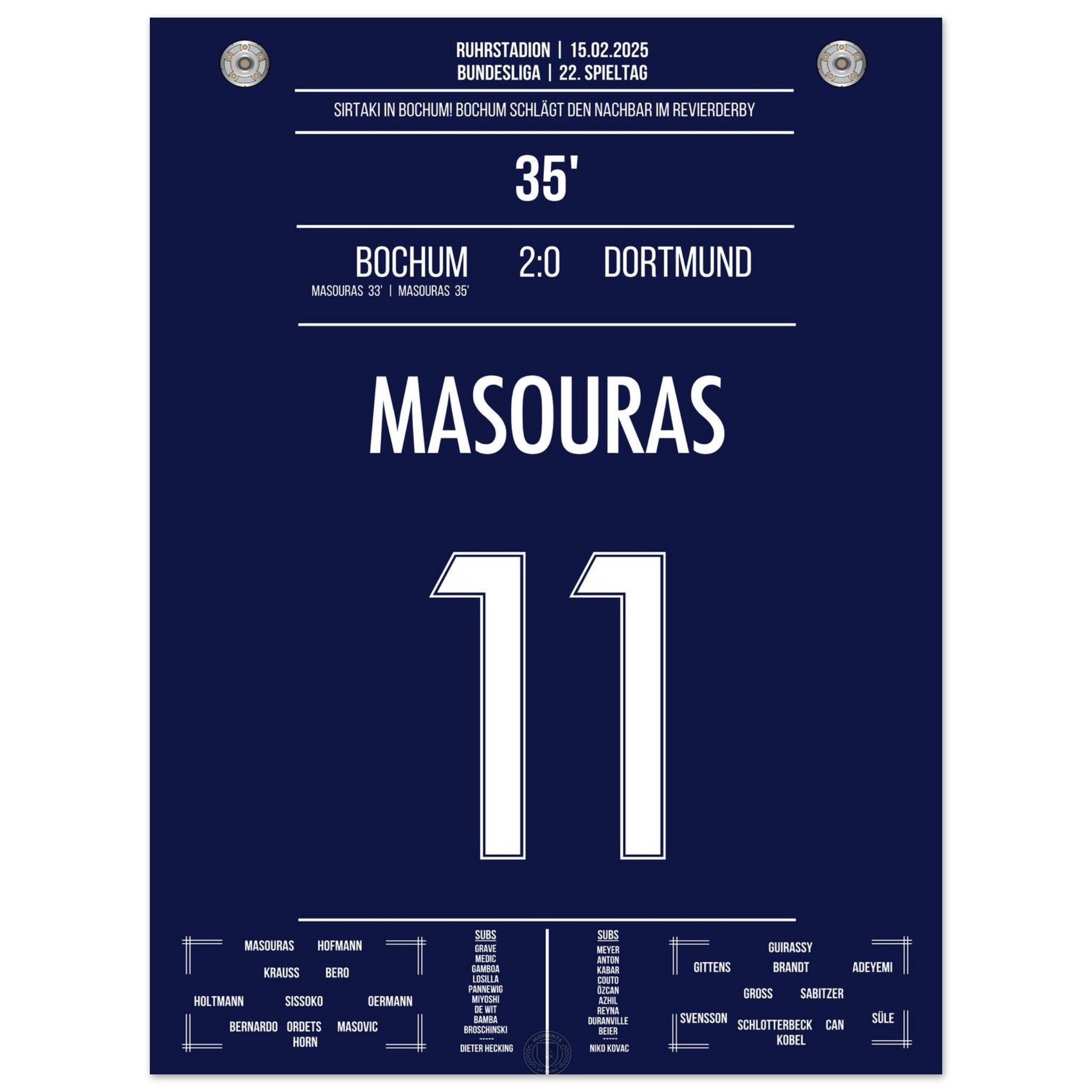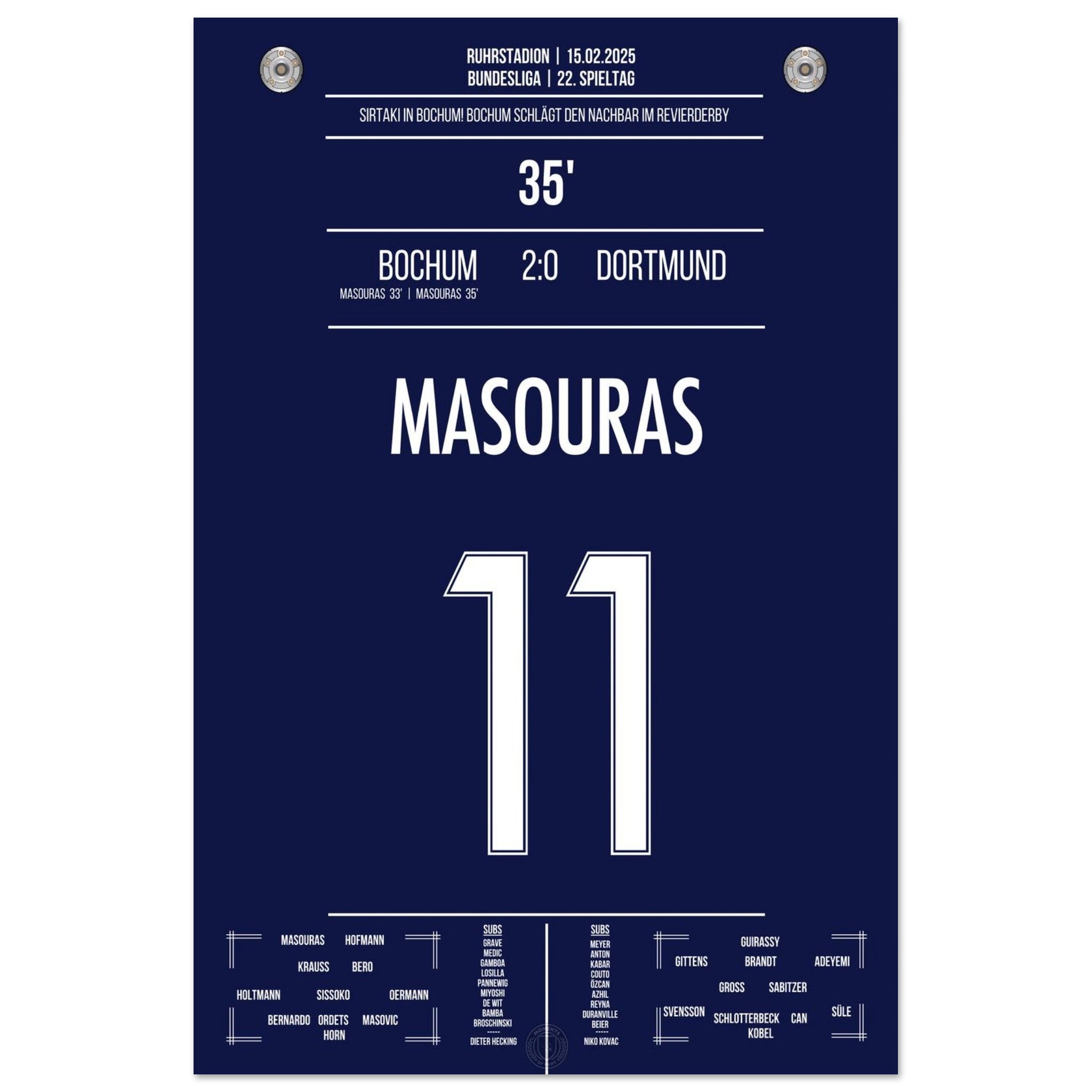 Sirtaki en Bochum! El doblete de Masouras vence al Dortmund en el derbi del Ruhr.