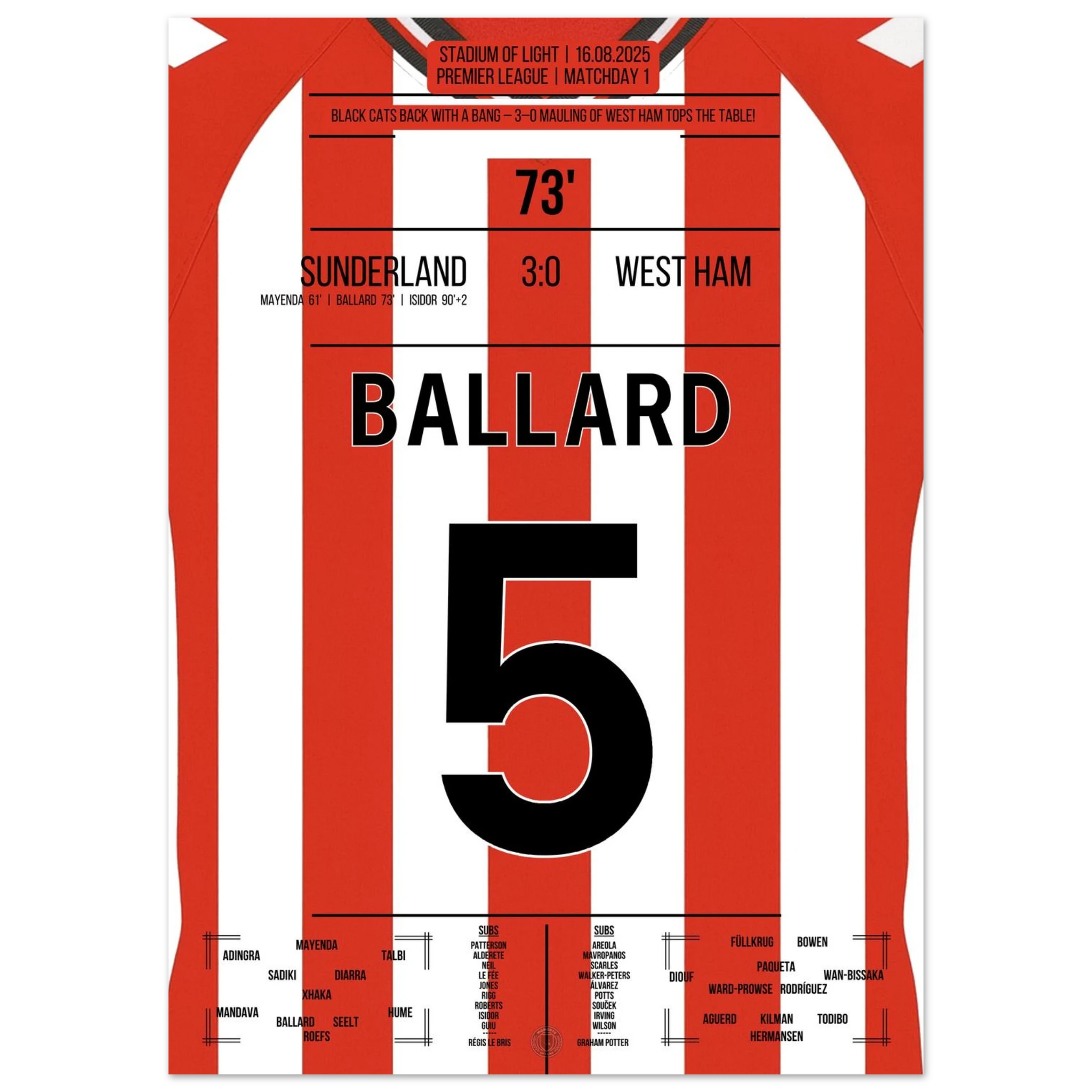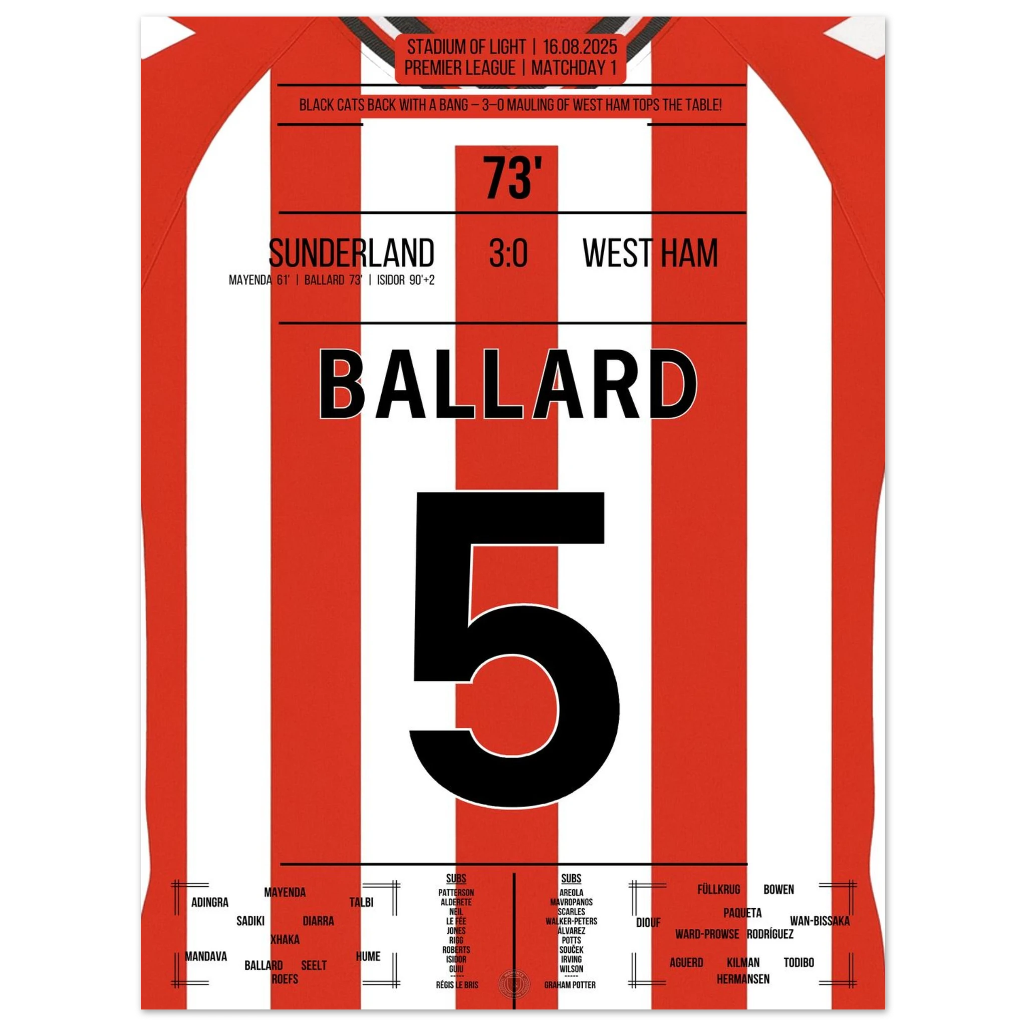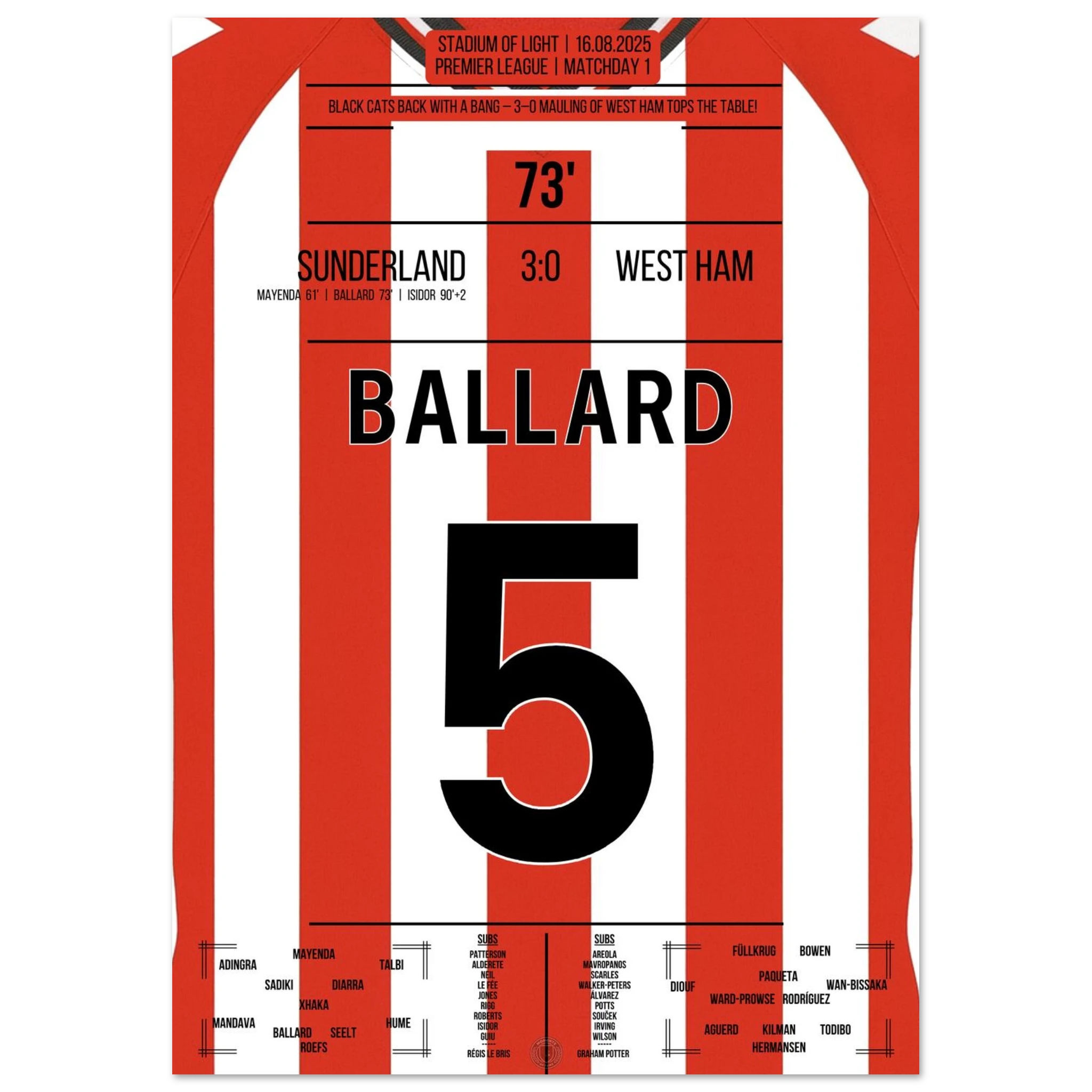 16. August 2025 Sunderland - West Ham: