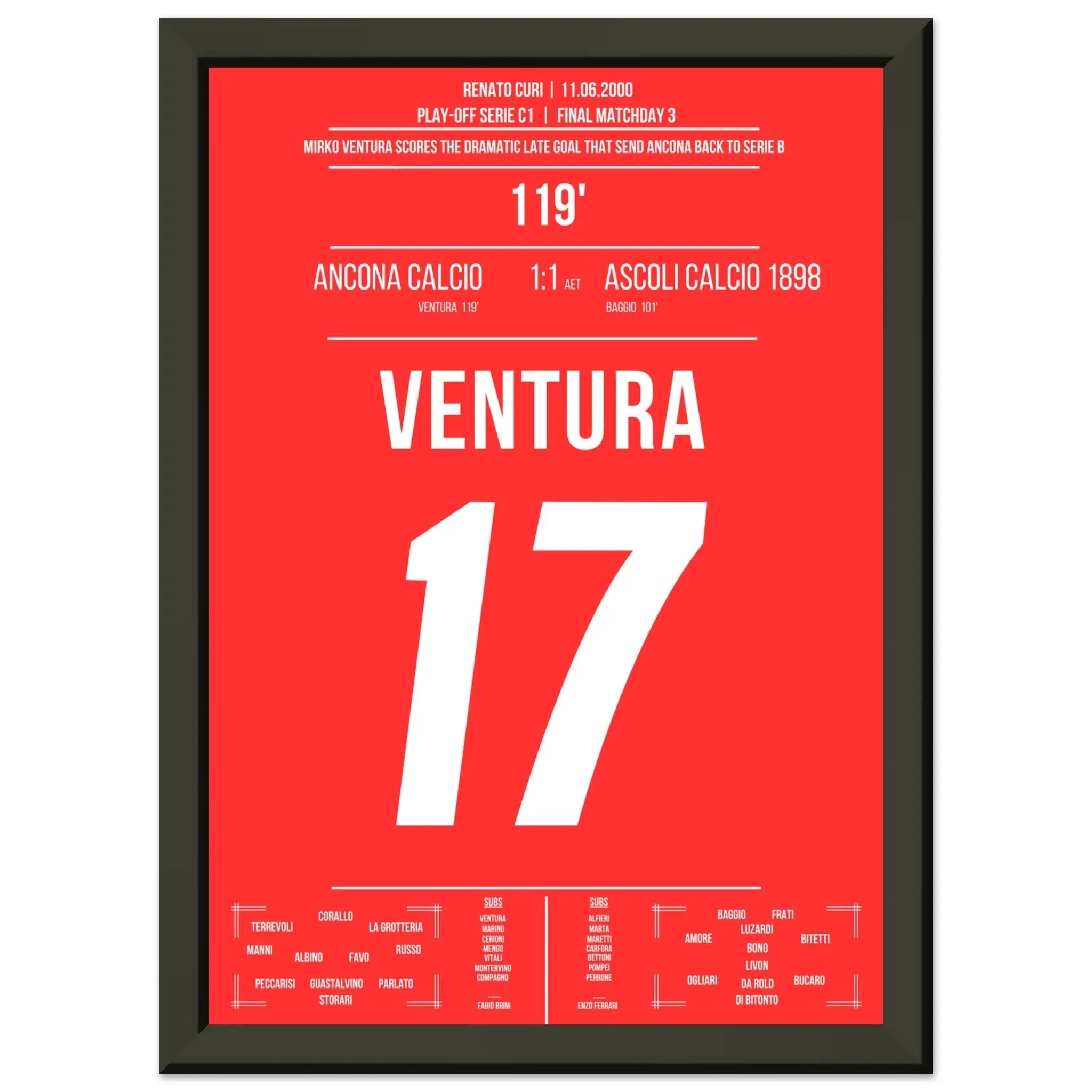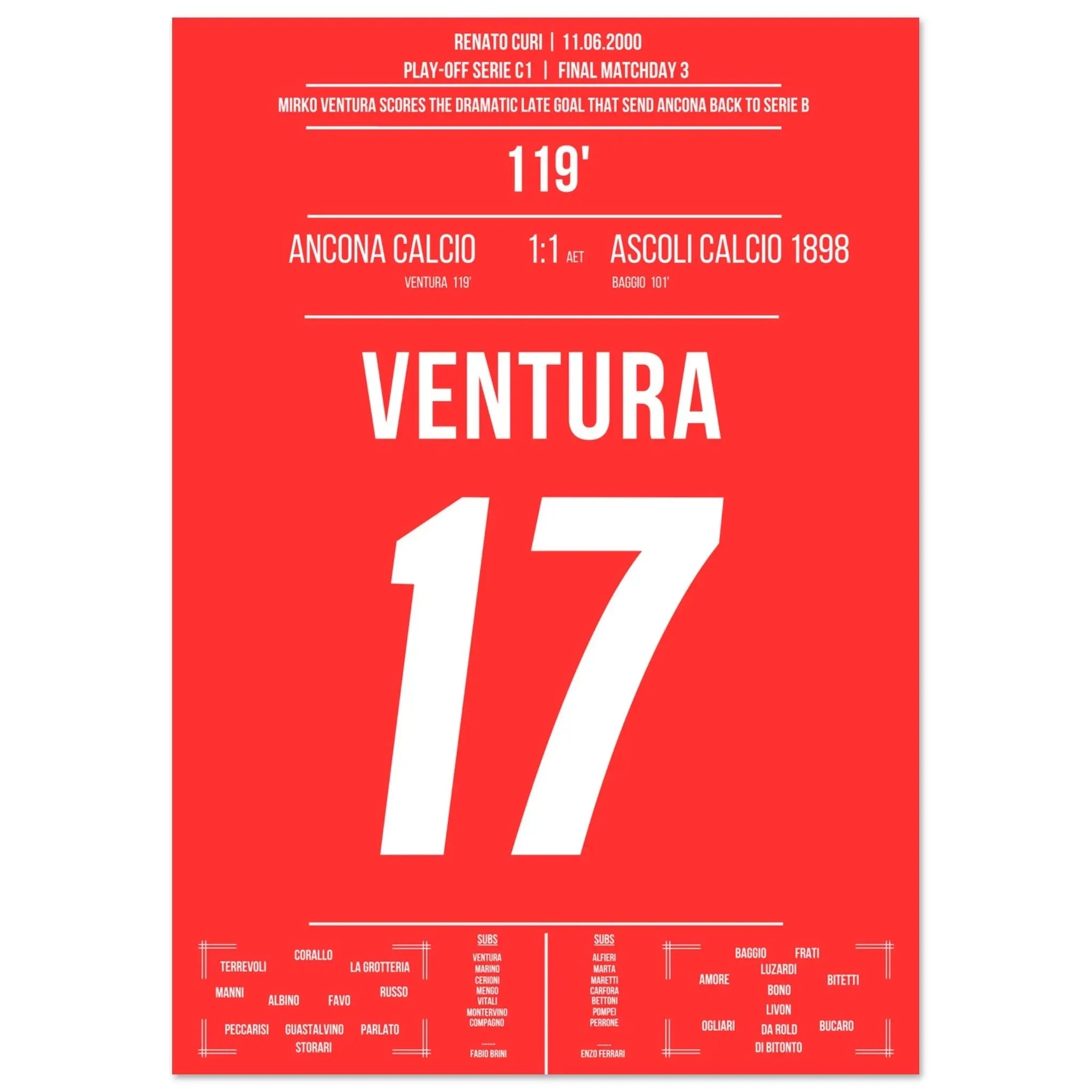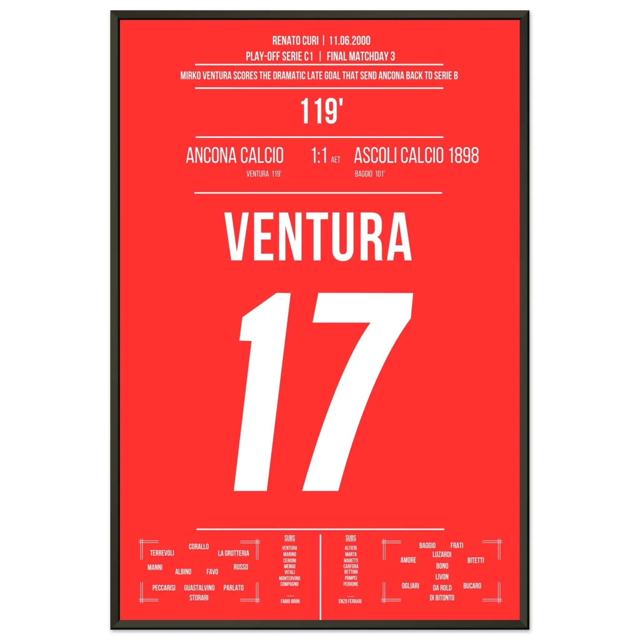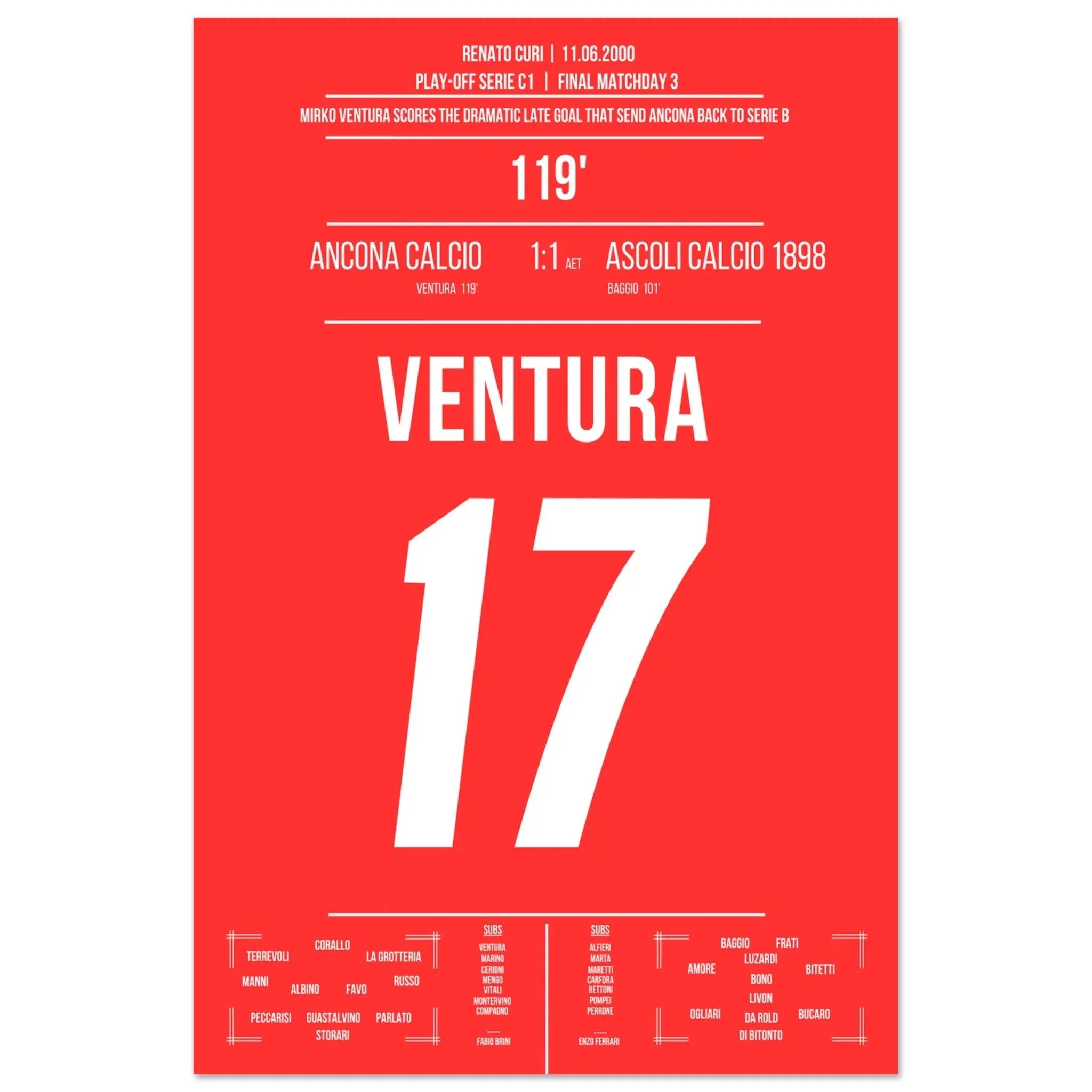El gol de Ventura para el ascenso de Ancona contra Ascoli en 2000