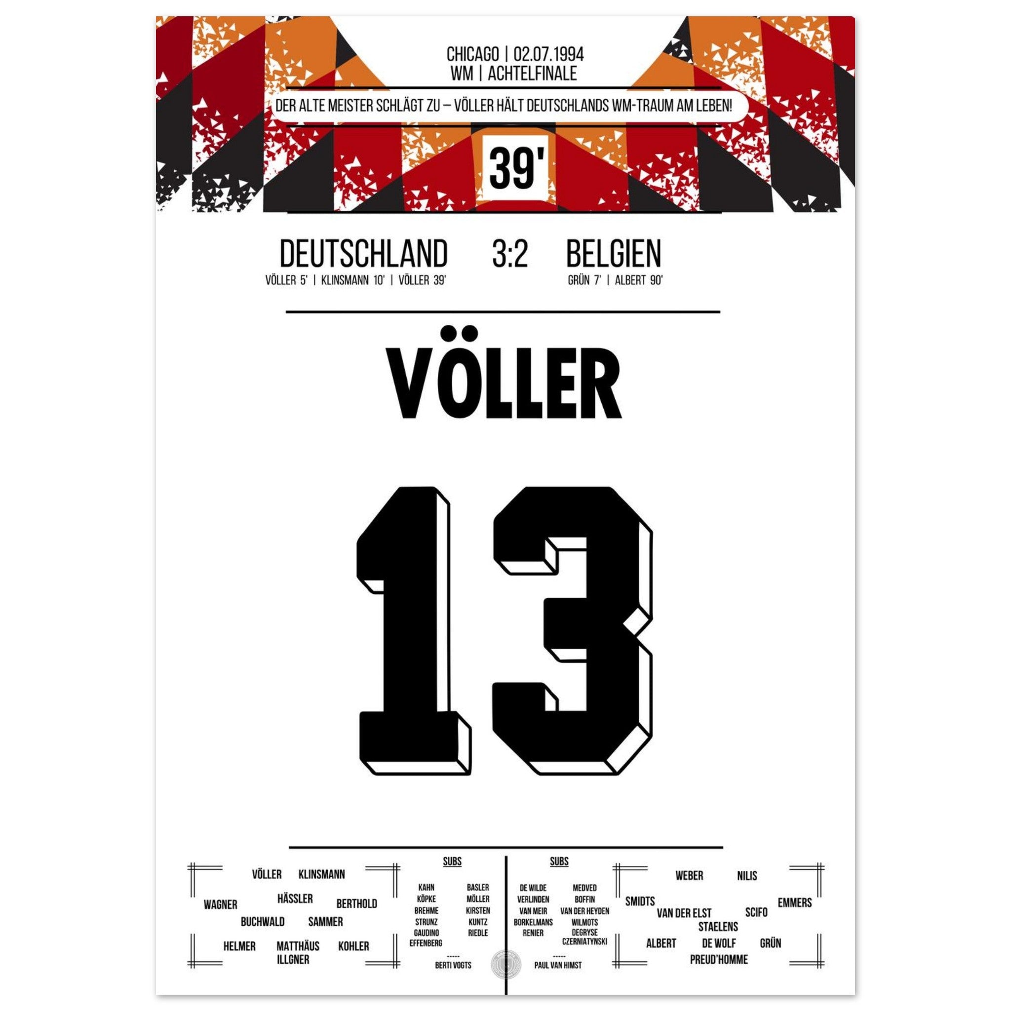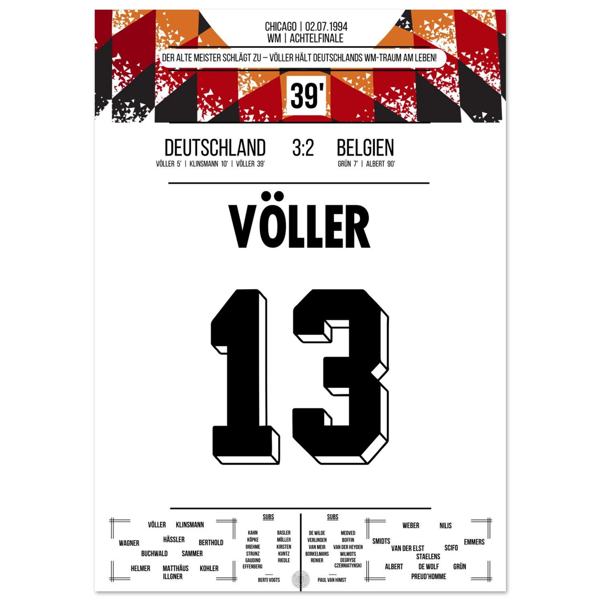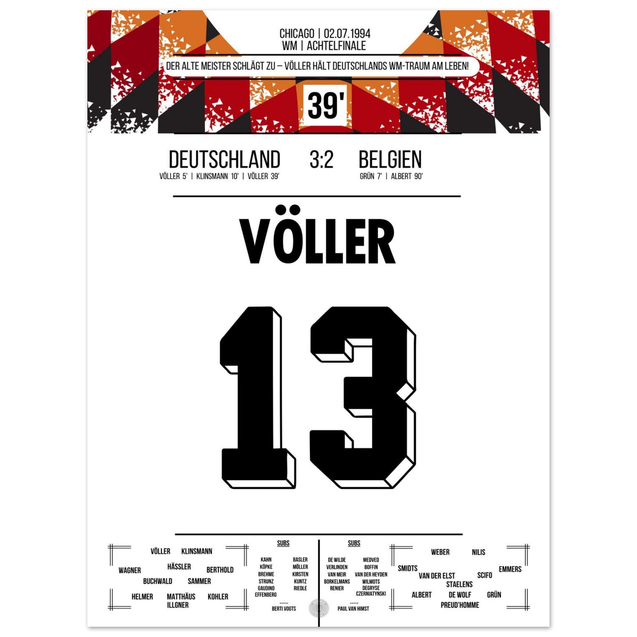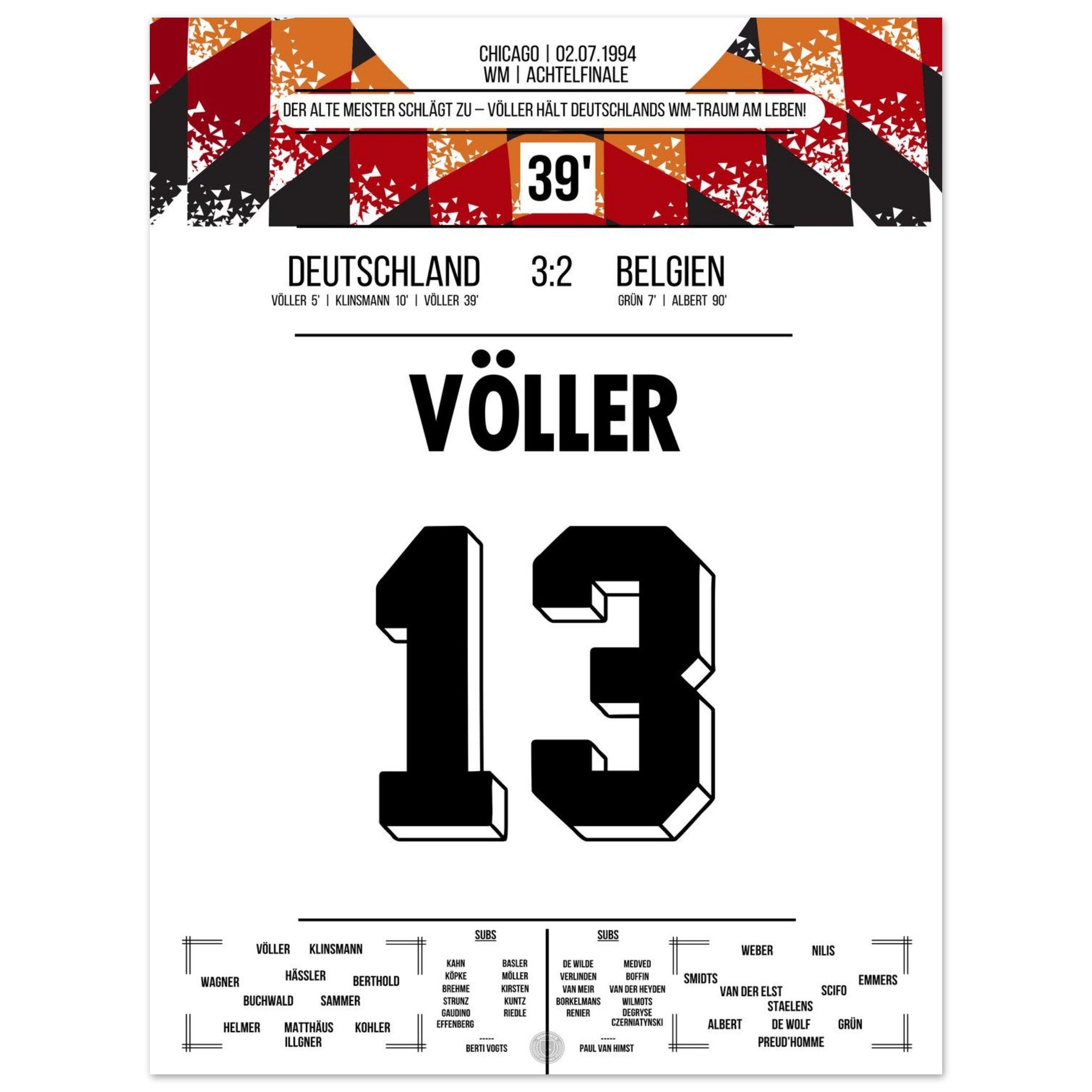 Völler marca dos goles en la victoria de Alemania en los octavos de final de la Copa del Mundo 1994.