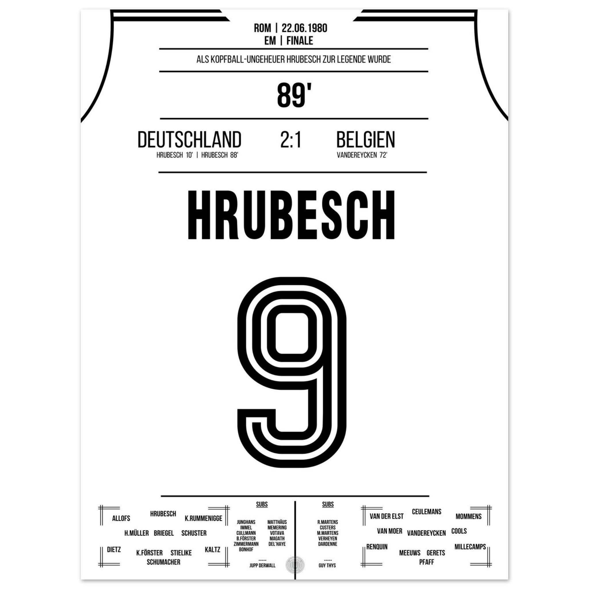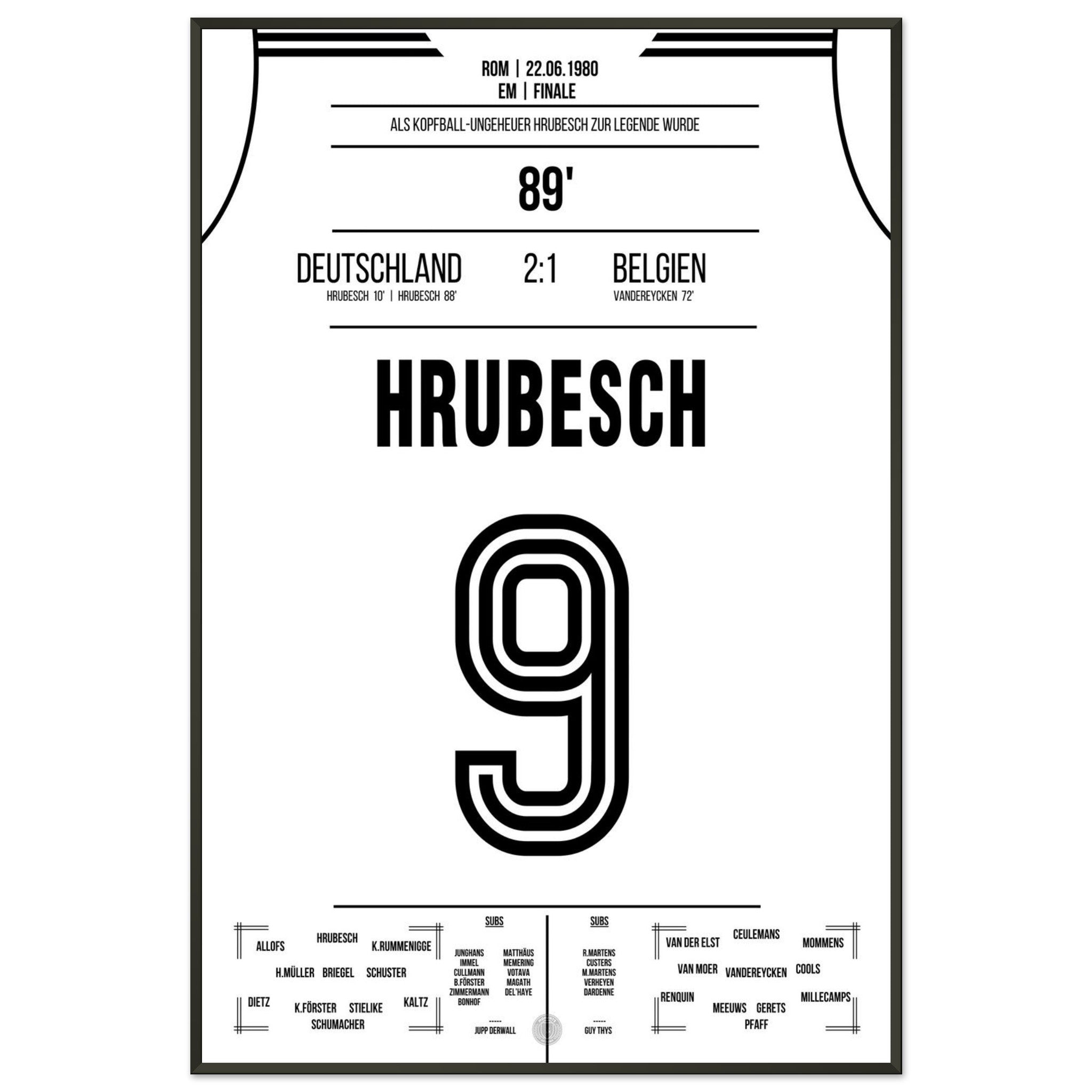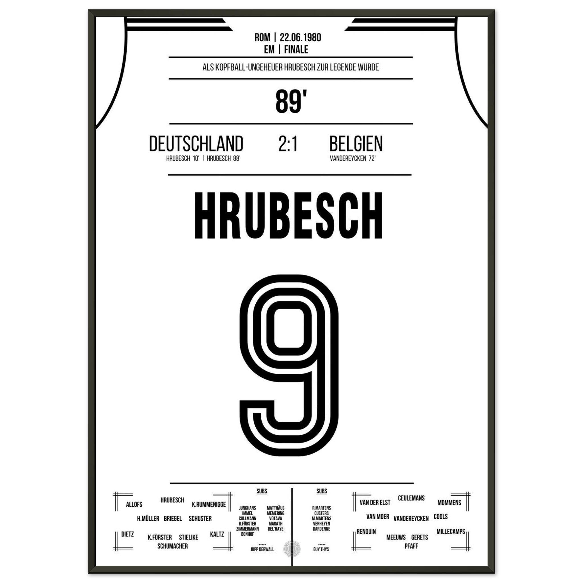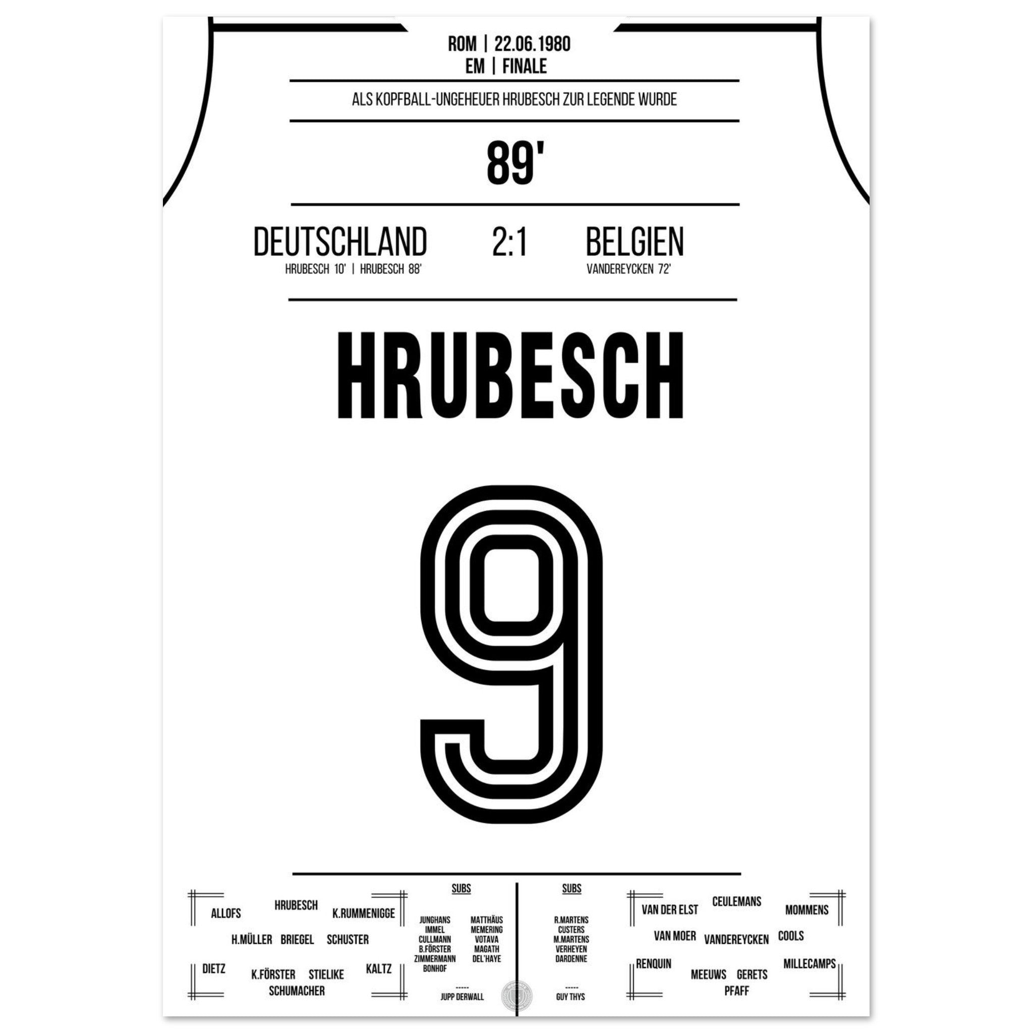 Hrubesch colpisce di testa la Germania per il secondo titolo di campione d'Europa.