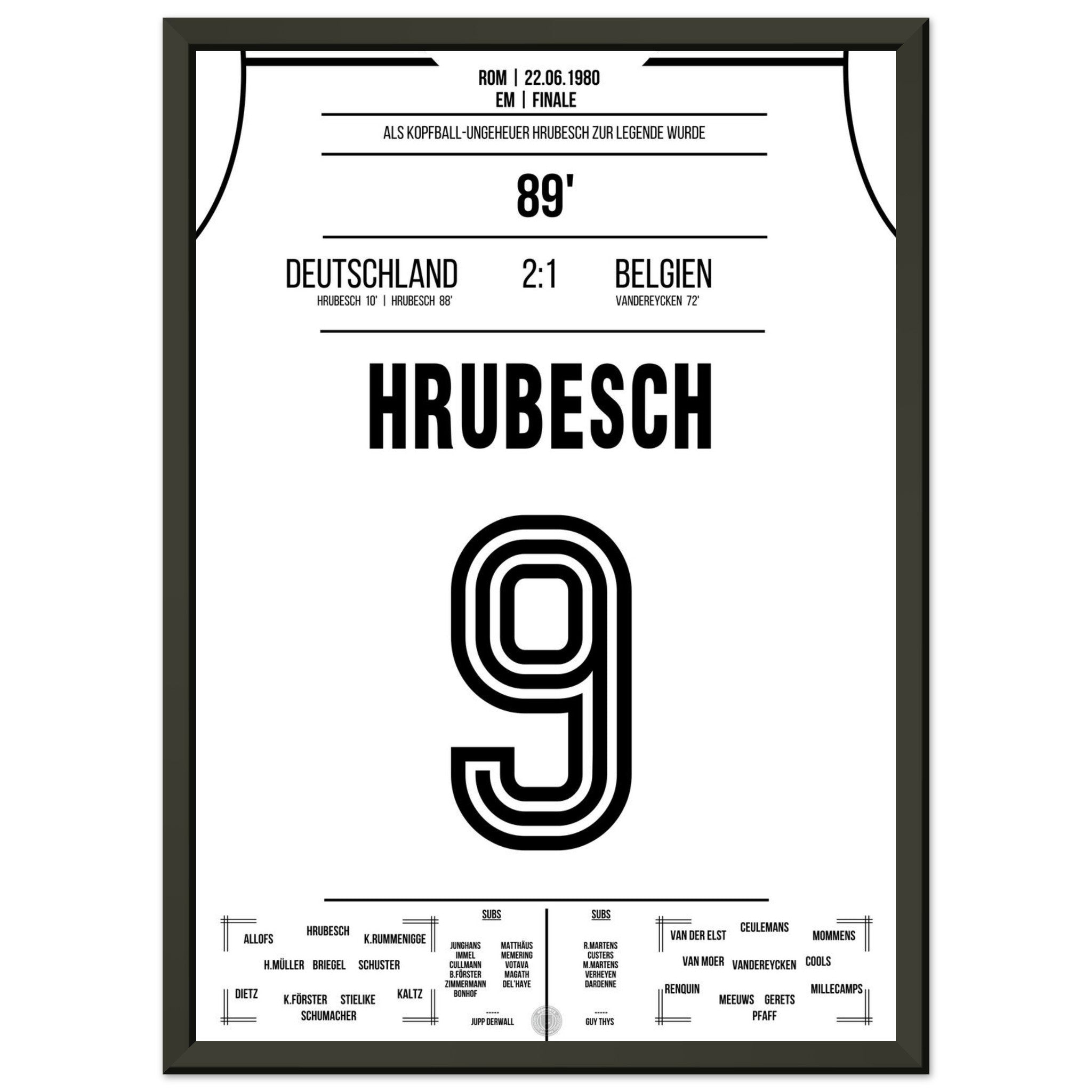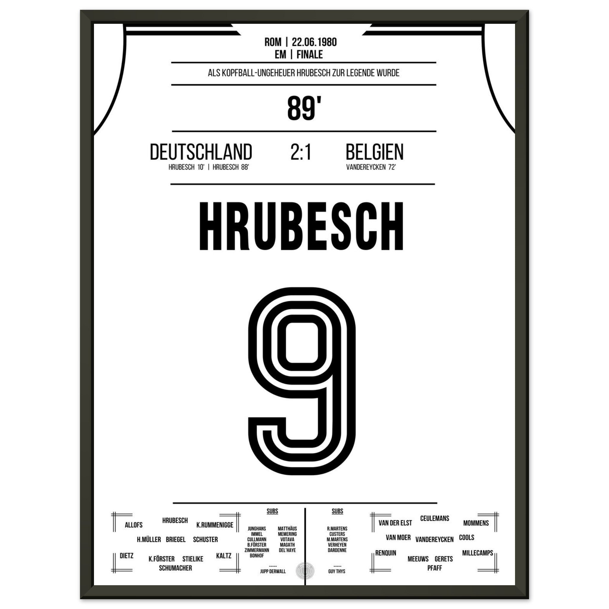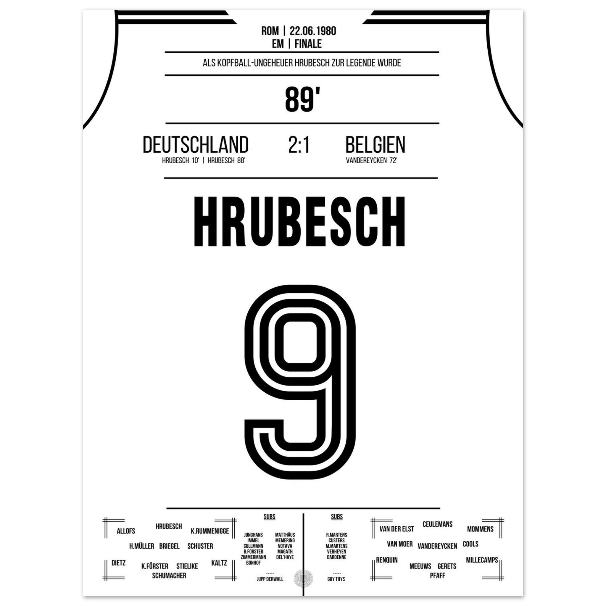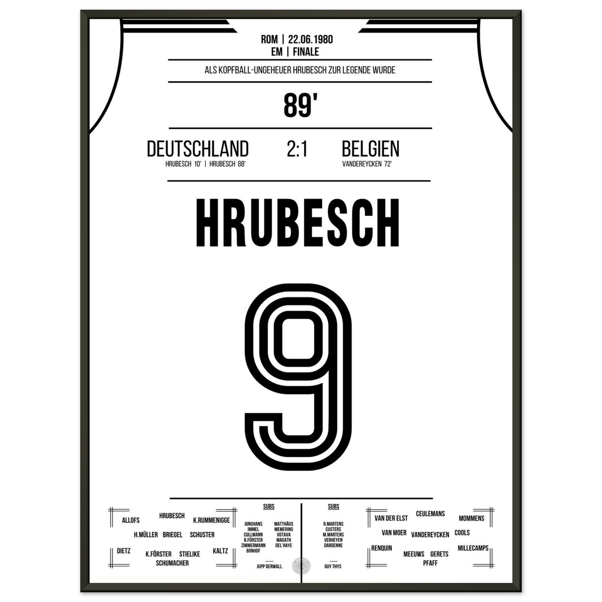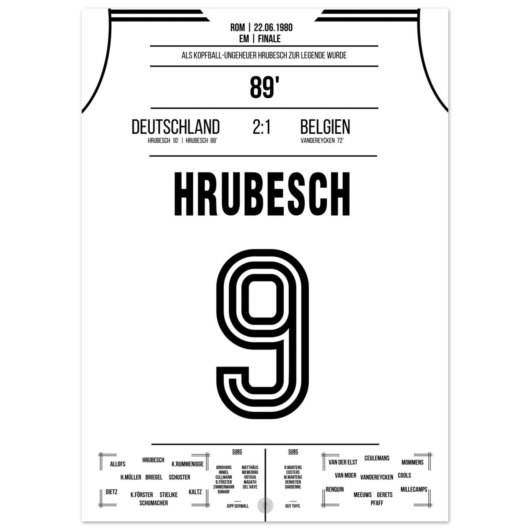 Hrubesch colpisce di testa la Germania per il secondo titolo di campione d'Europa.