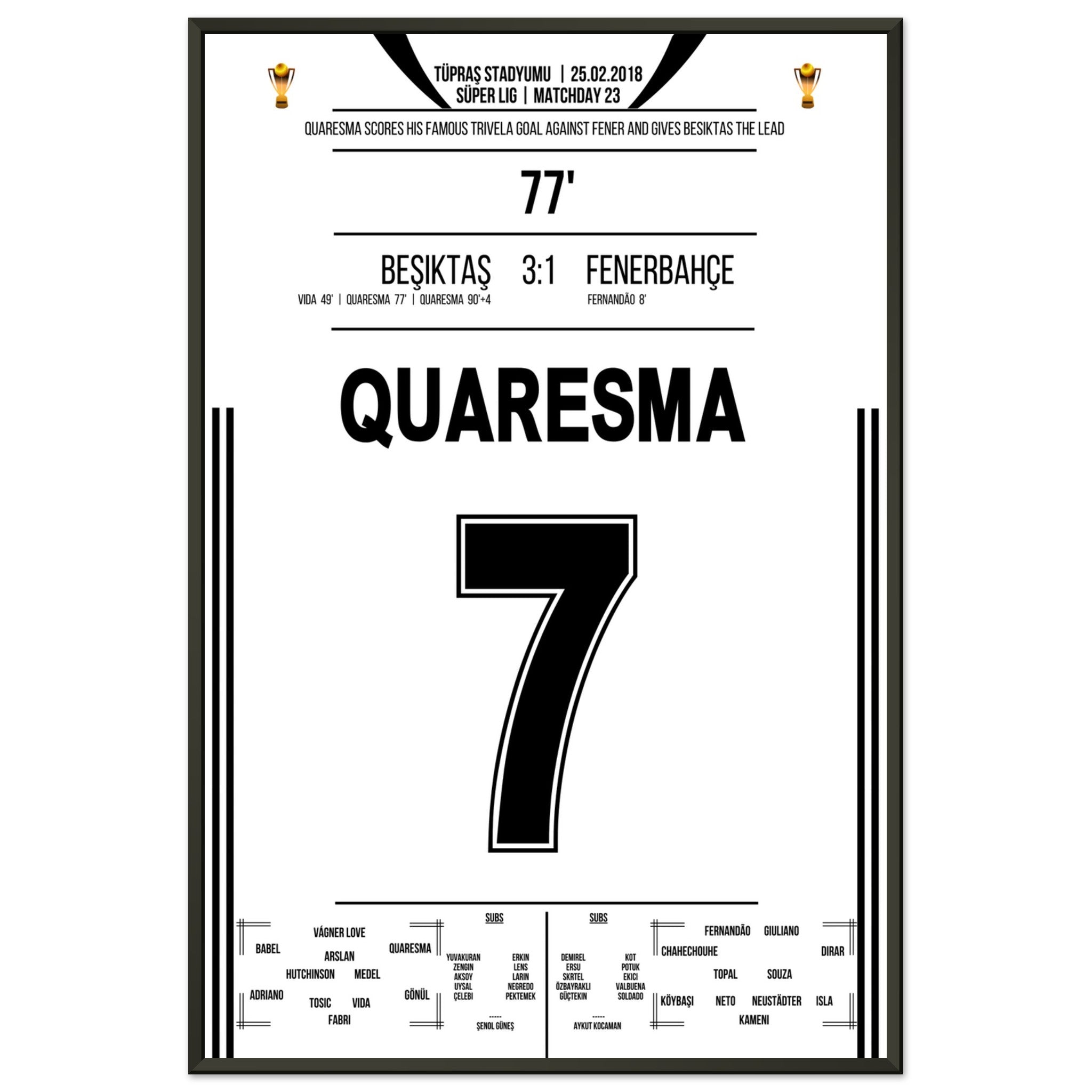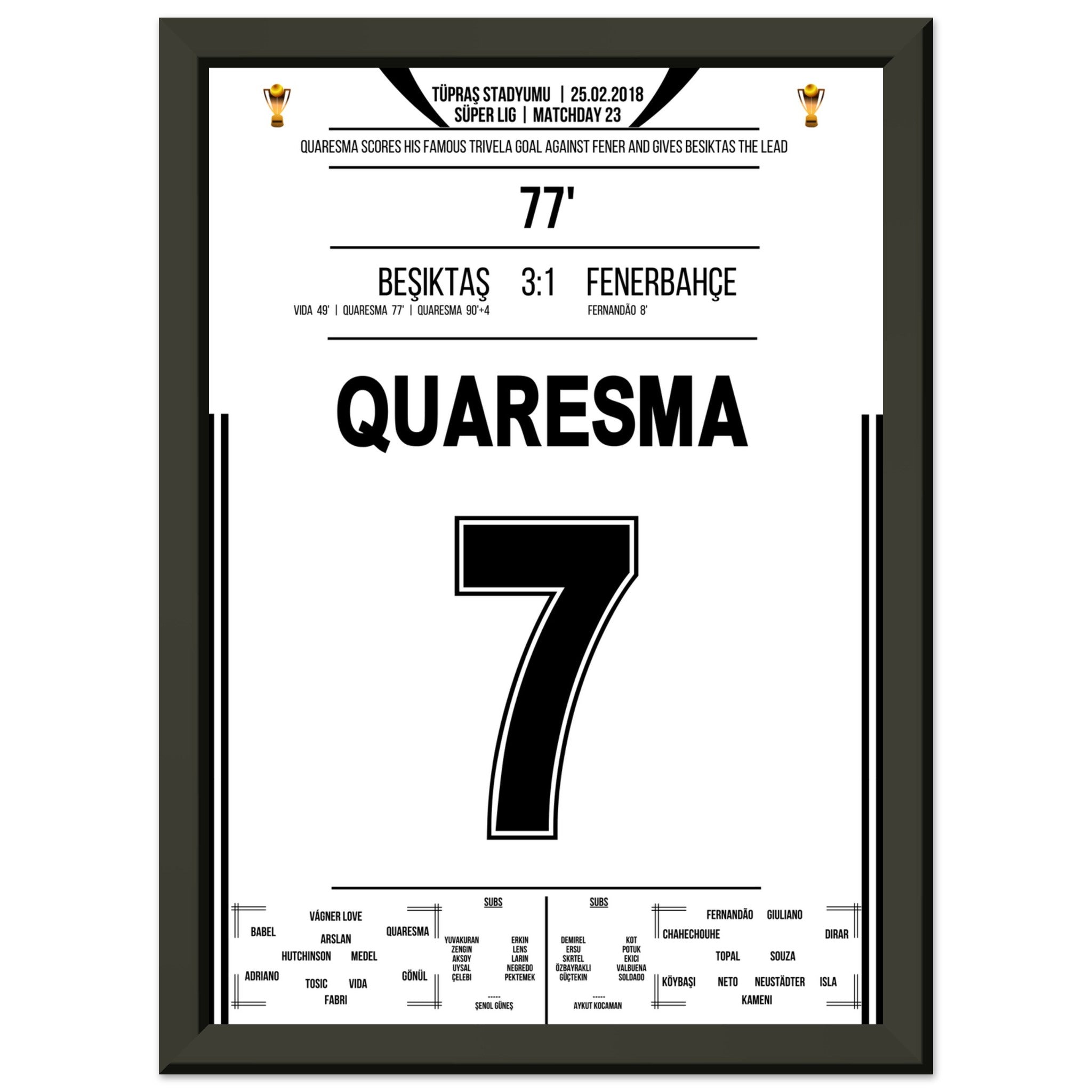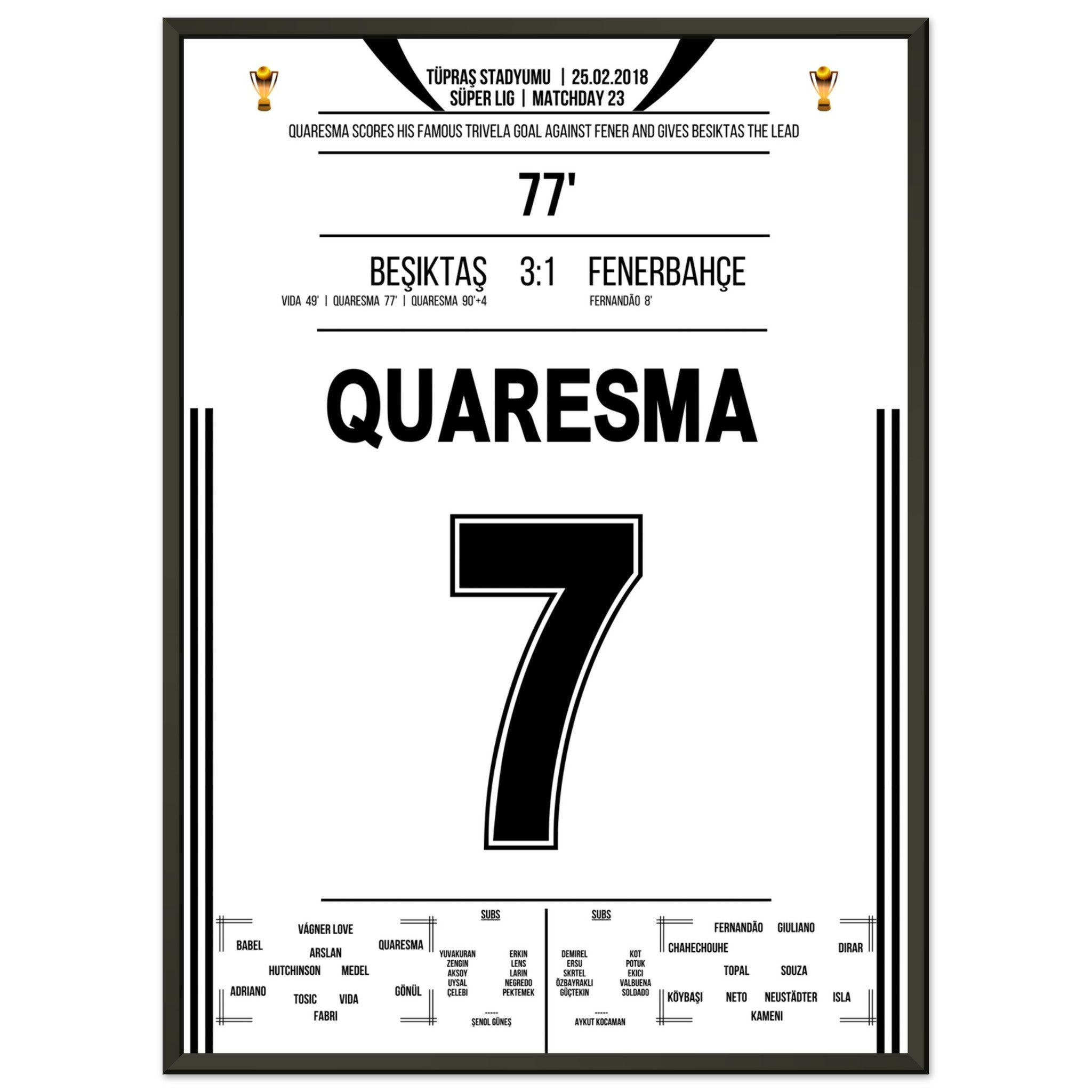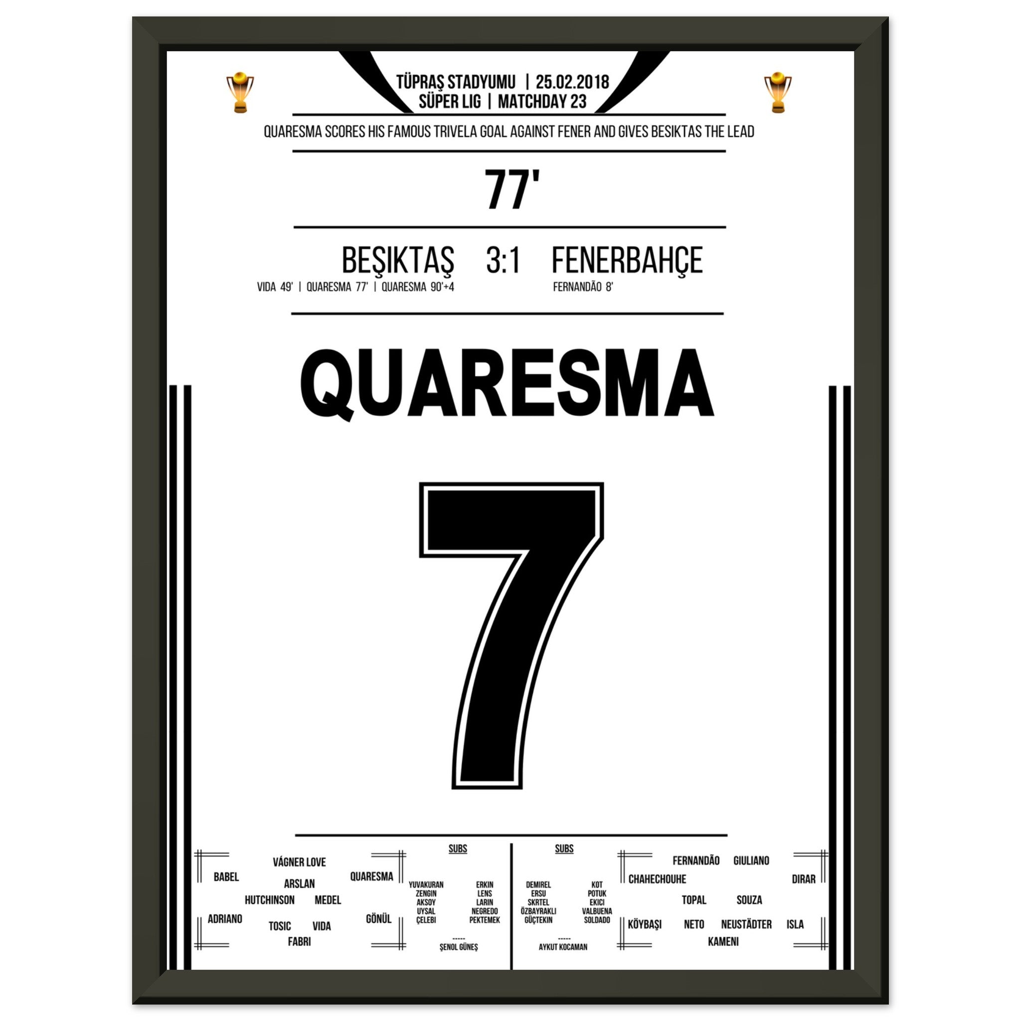 Ecco la nostra stampa premium di questo indimenticabile momento calcistico, per un'esperienza da tifoso indimenticabile. Stampata su carta premium pesante e semilucida, questa opera d'arte risplende con colori intensi e una delicata lucentezza che mette in risalto ogni dettaglio.