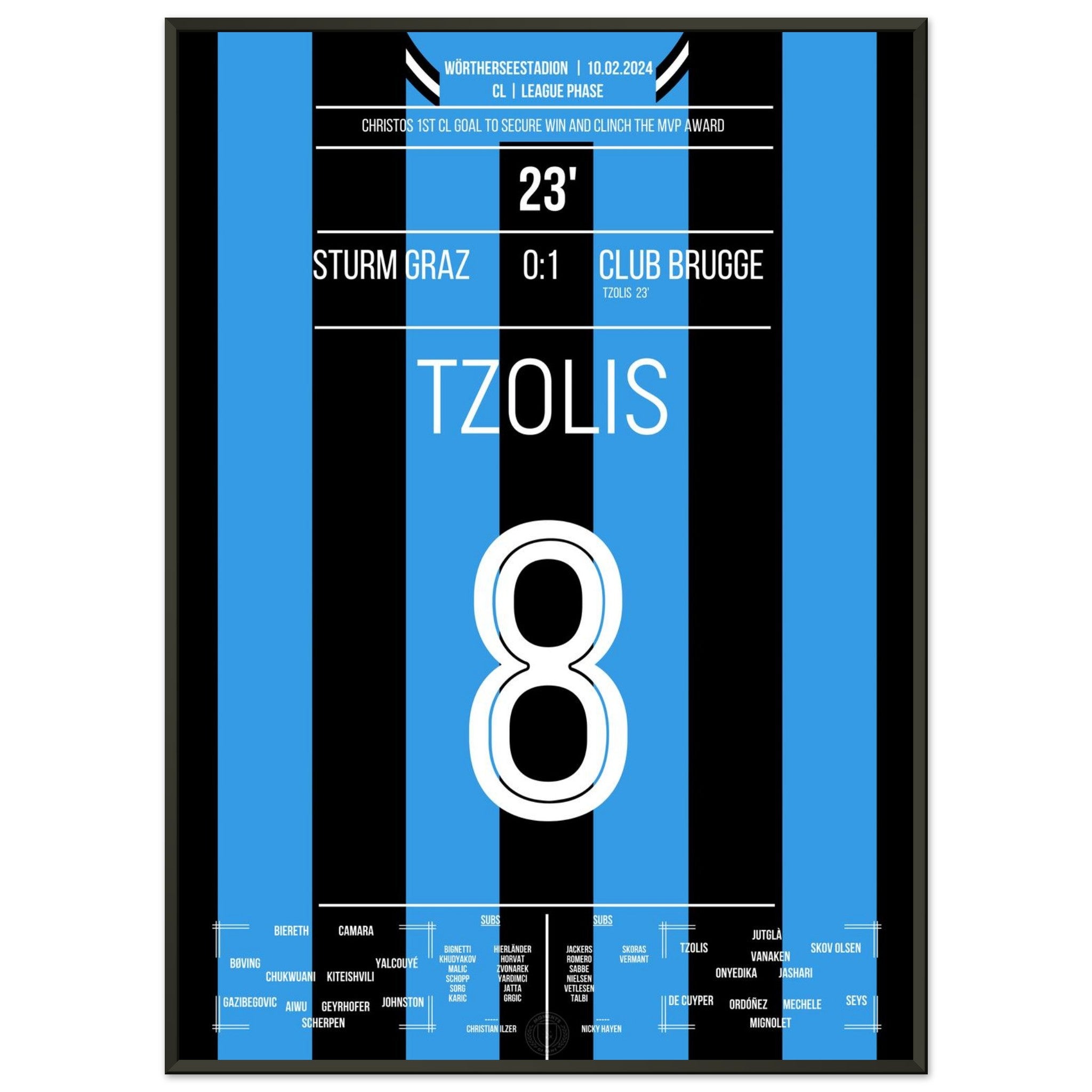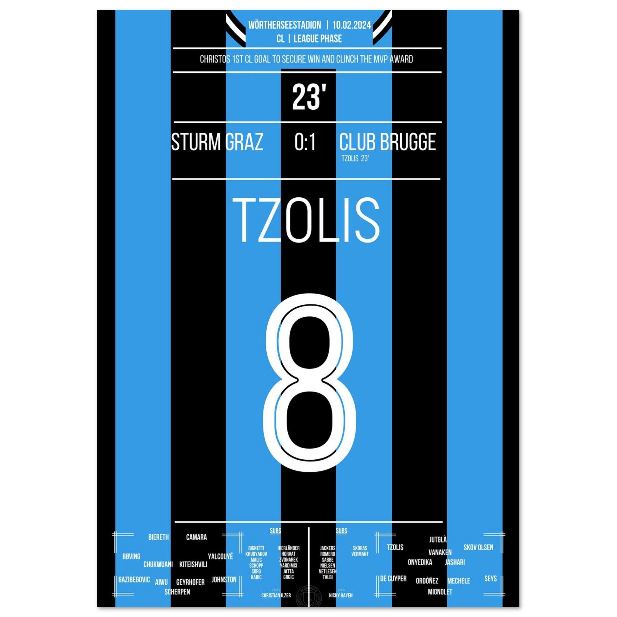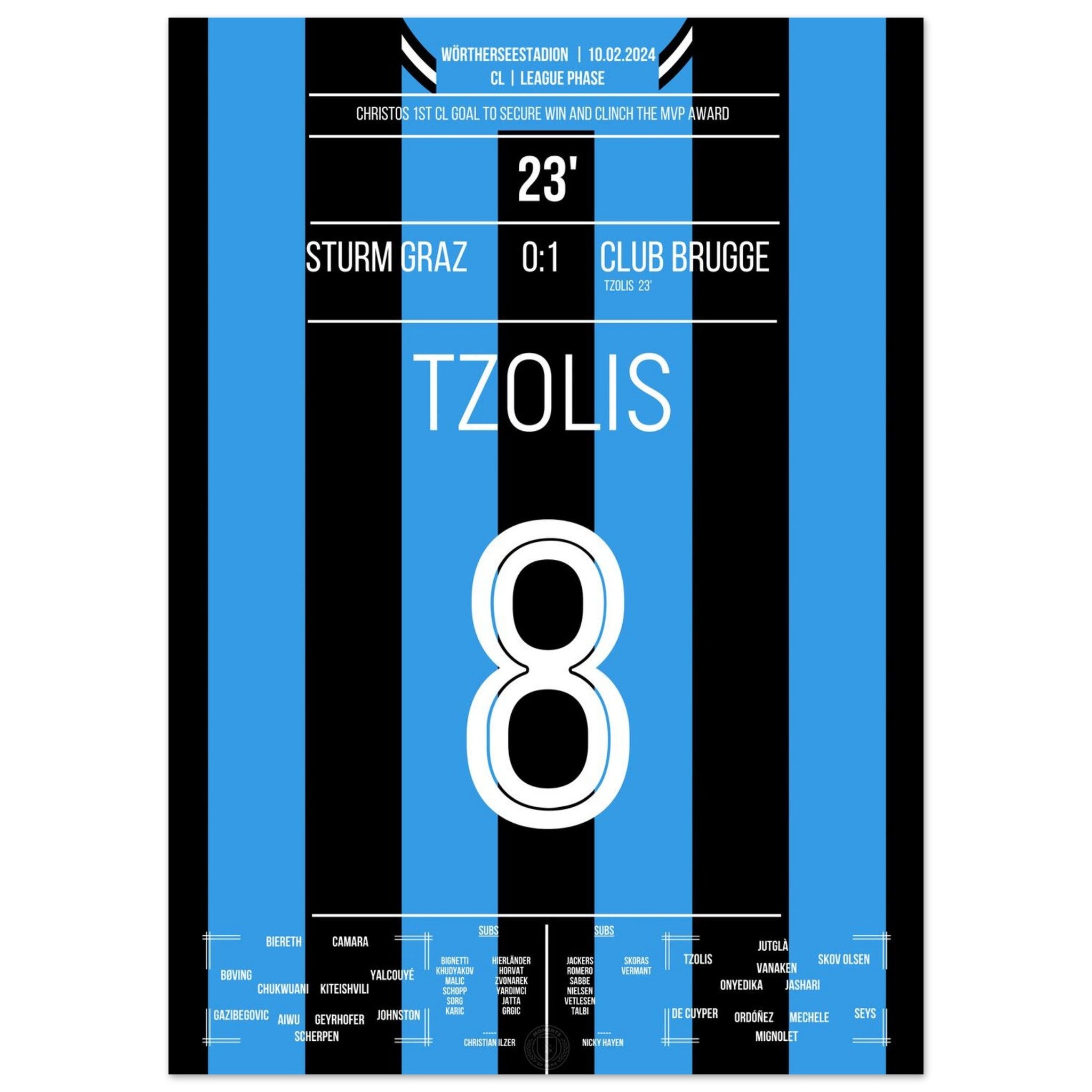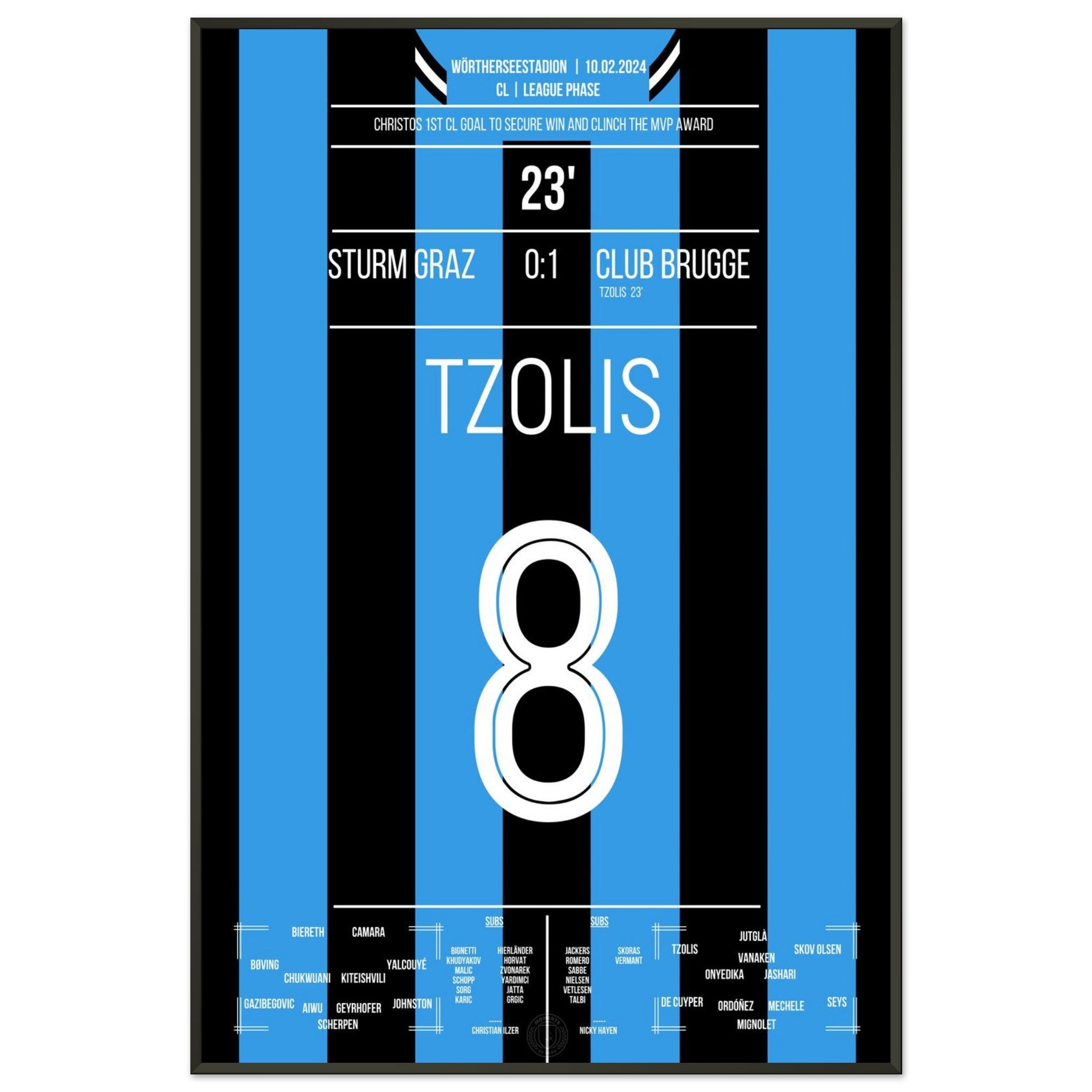 Tzolis segna il suo primo gol in Champions League per la vittoria in trasferta a Graz.