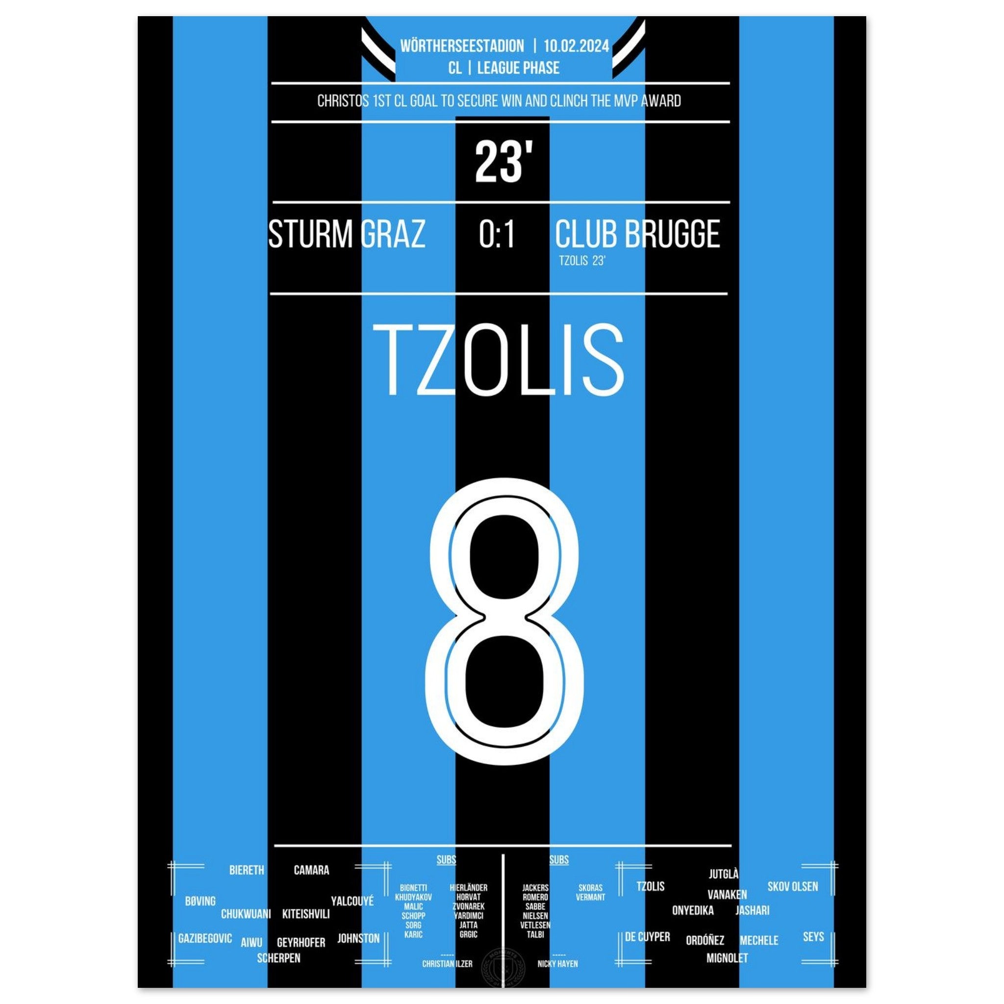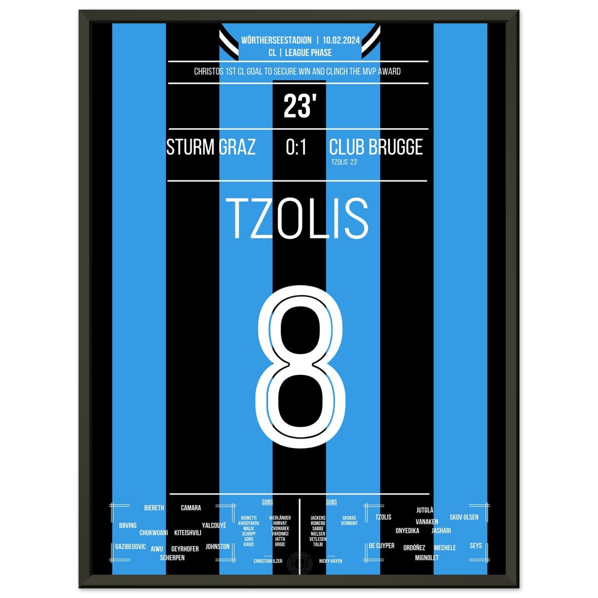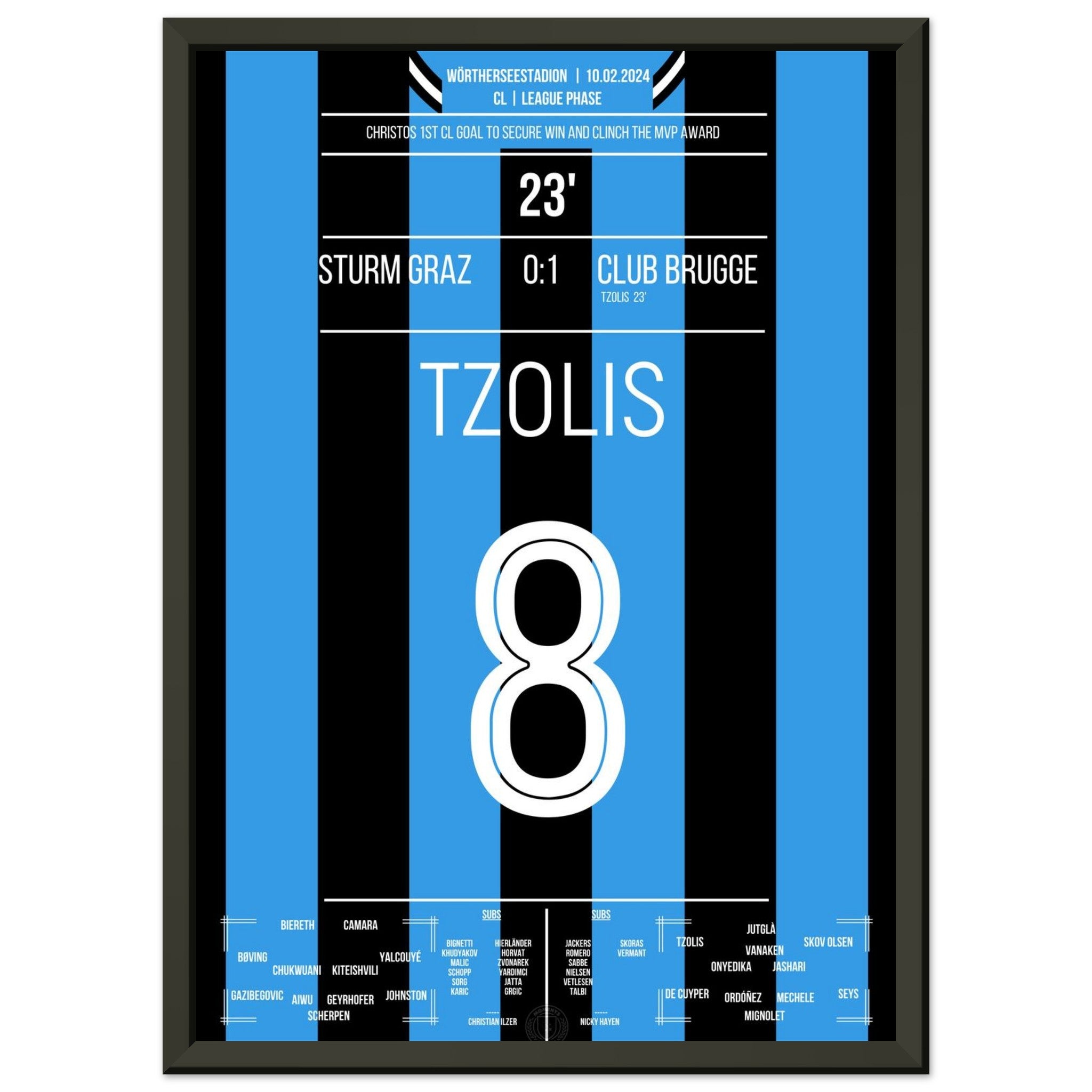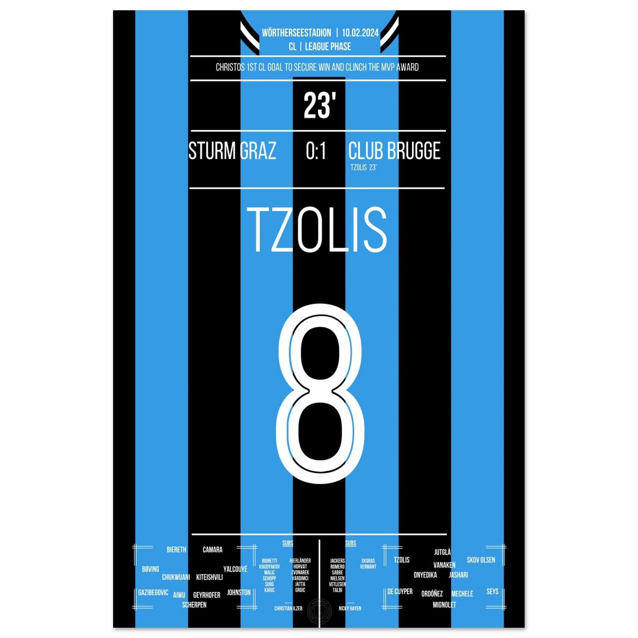 Tzolis segna il suo primo gol in Champions League per la vittoria in trasferta a Graz.