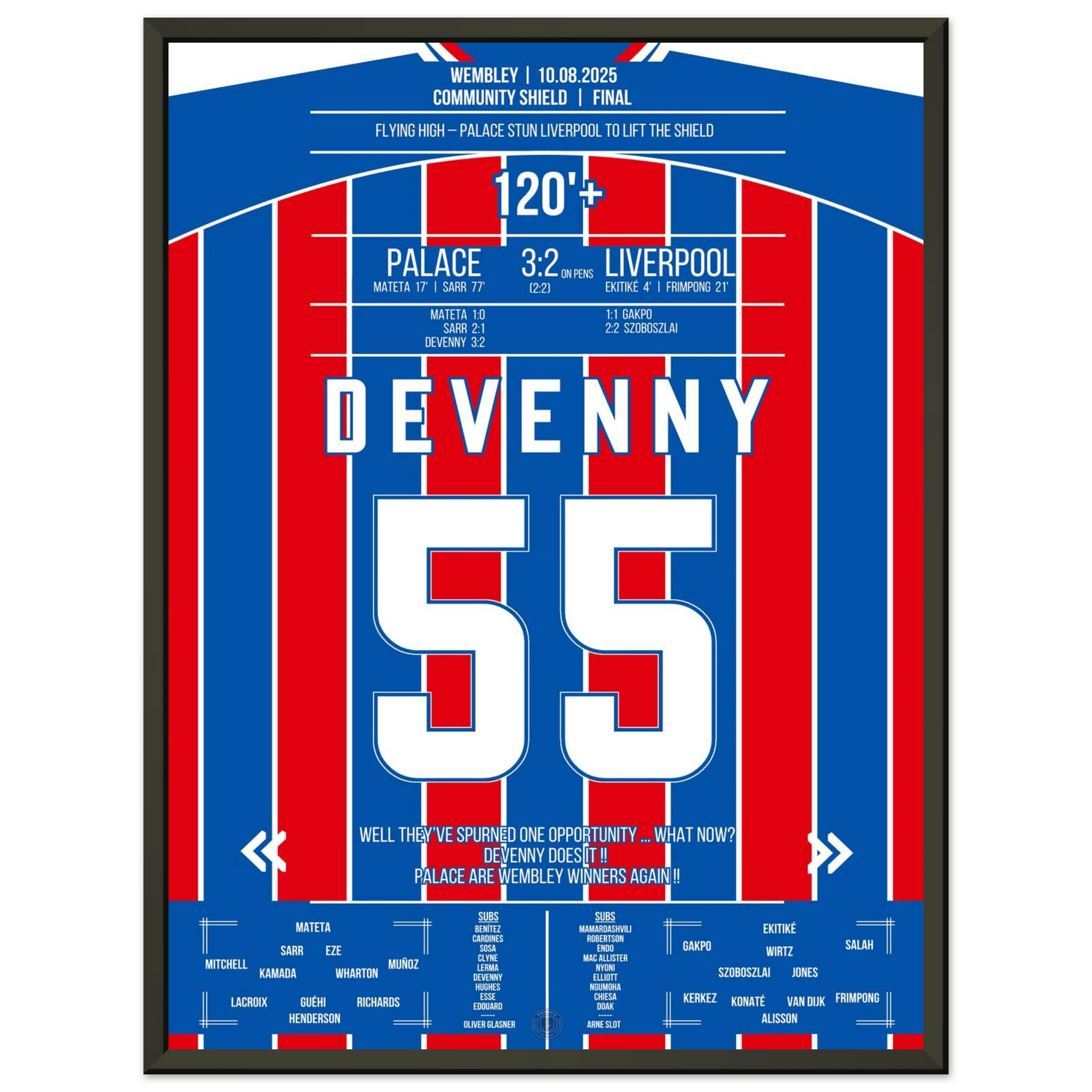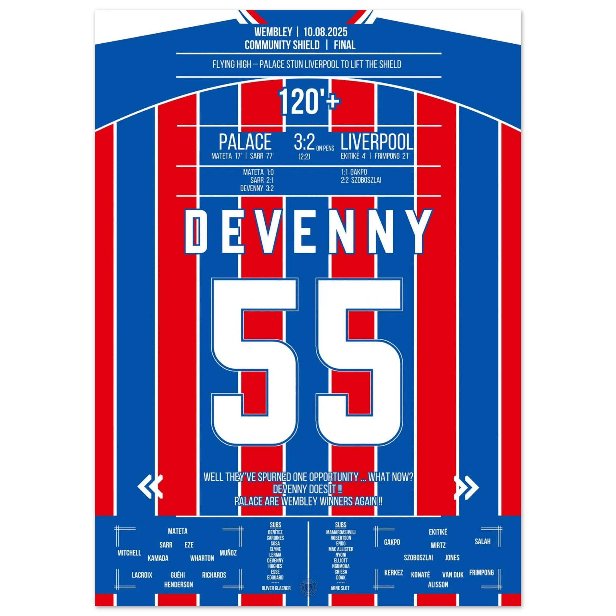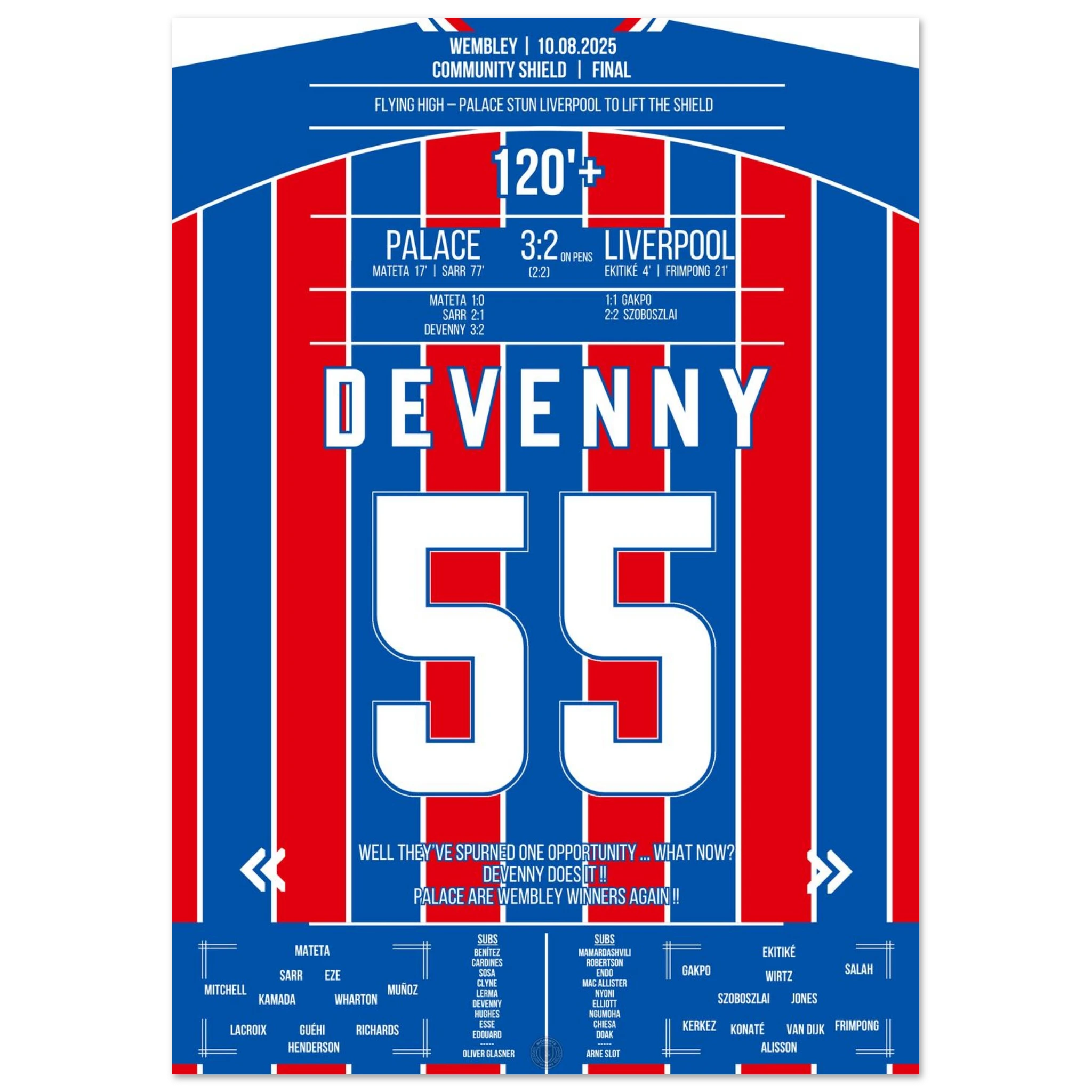 August 10, 2025 – Devenny ice-cold: Palace clinches the Shield from the spot