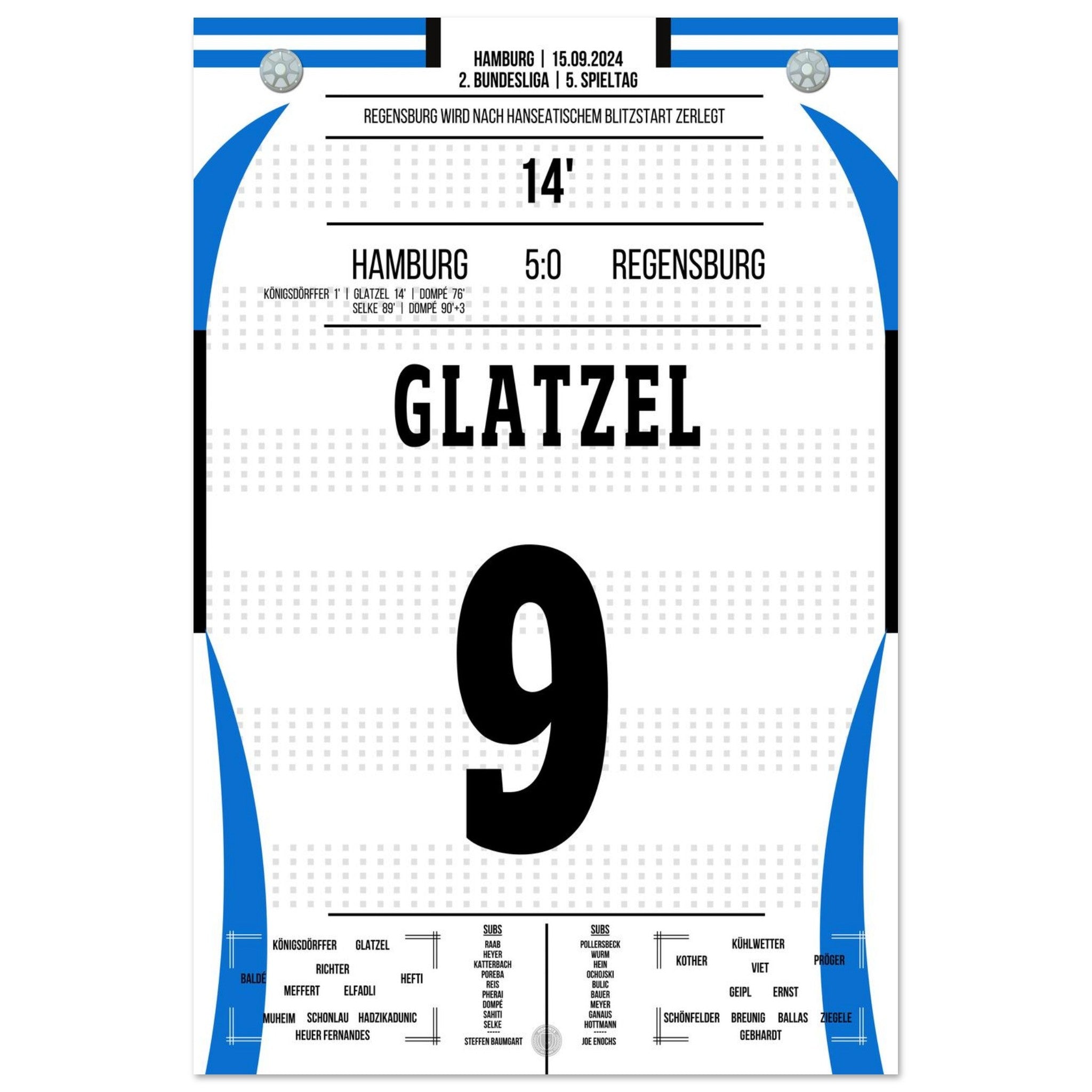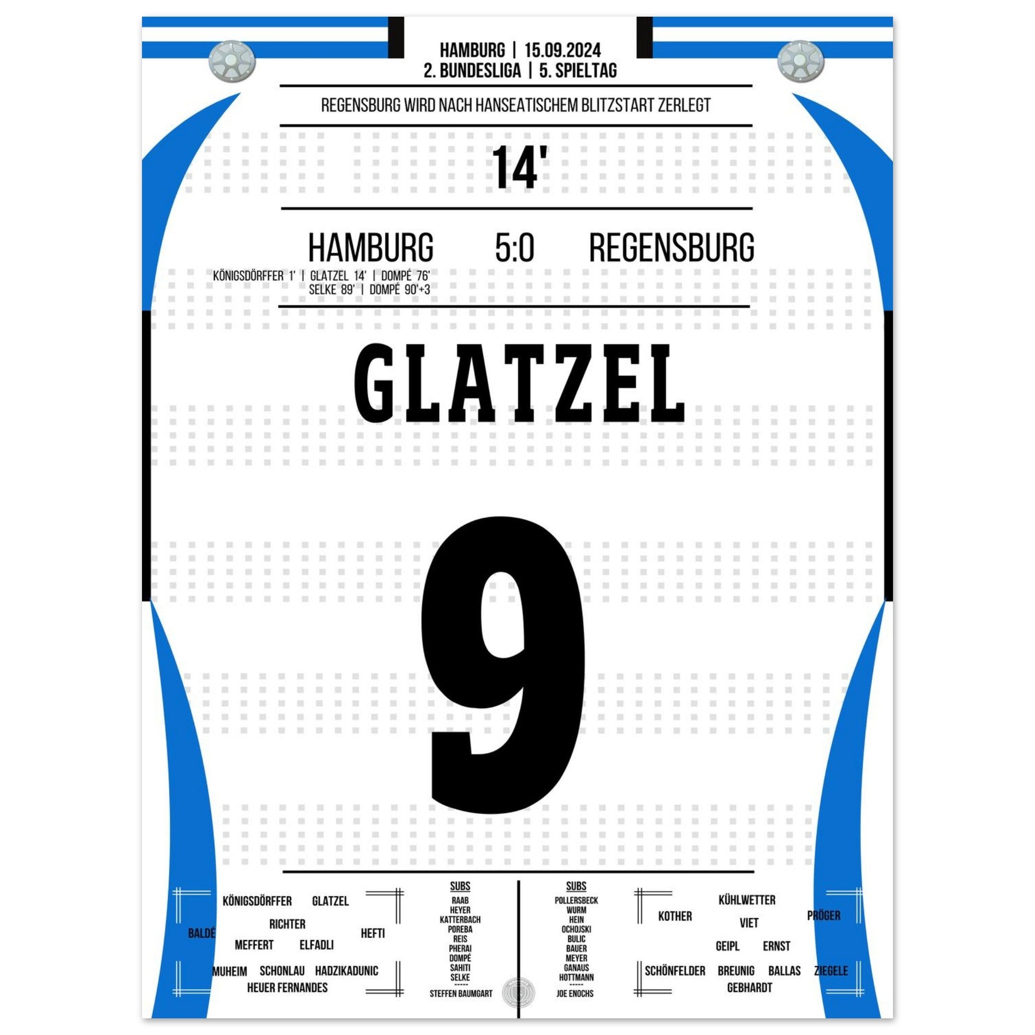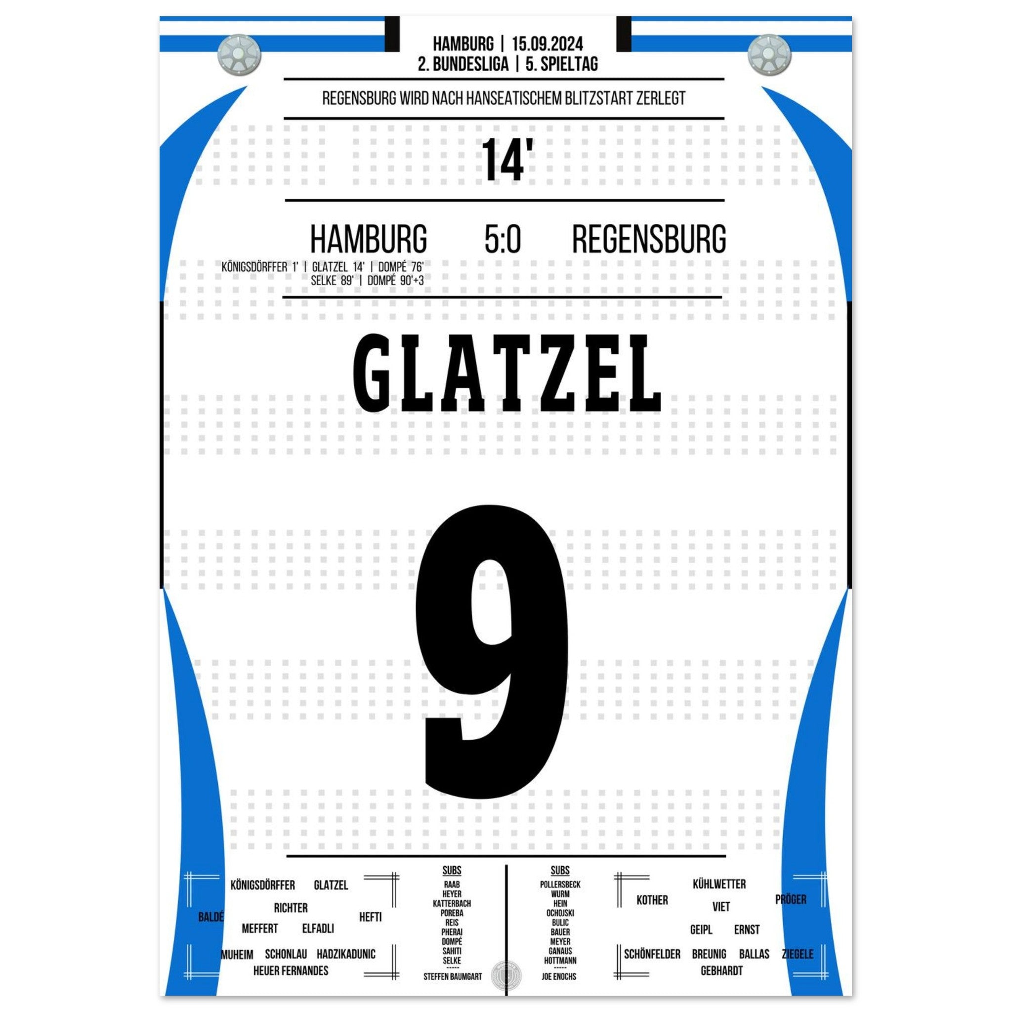 Glatzel scores in Hamburg's crushing victory against Regensburg.