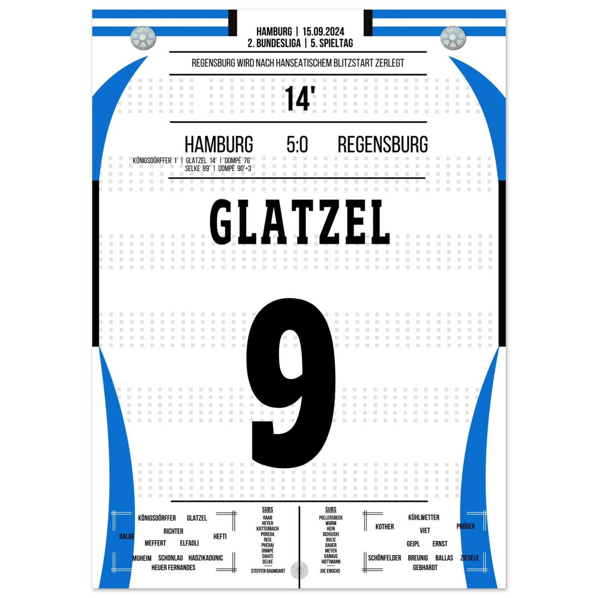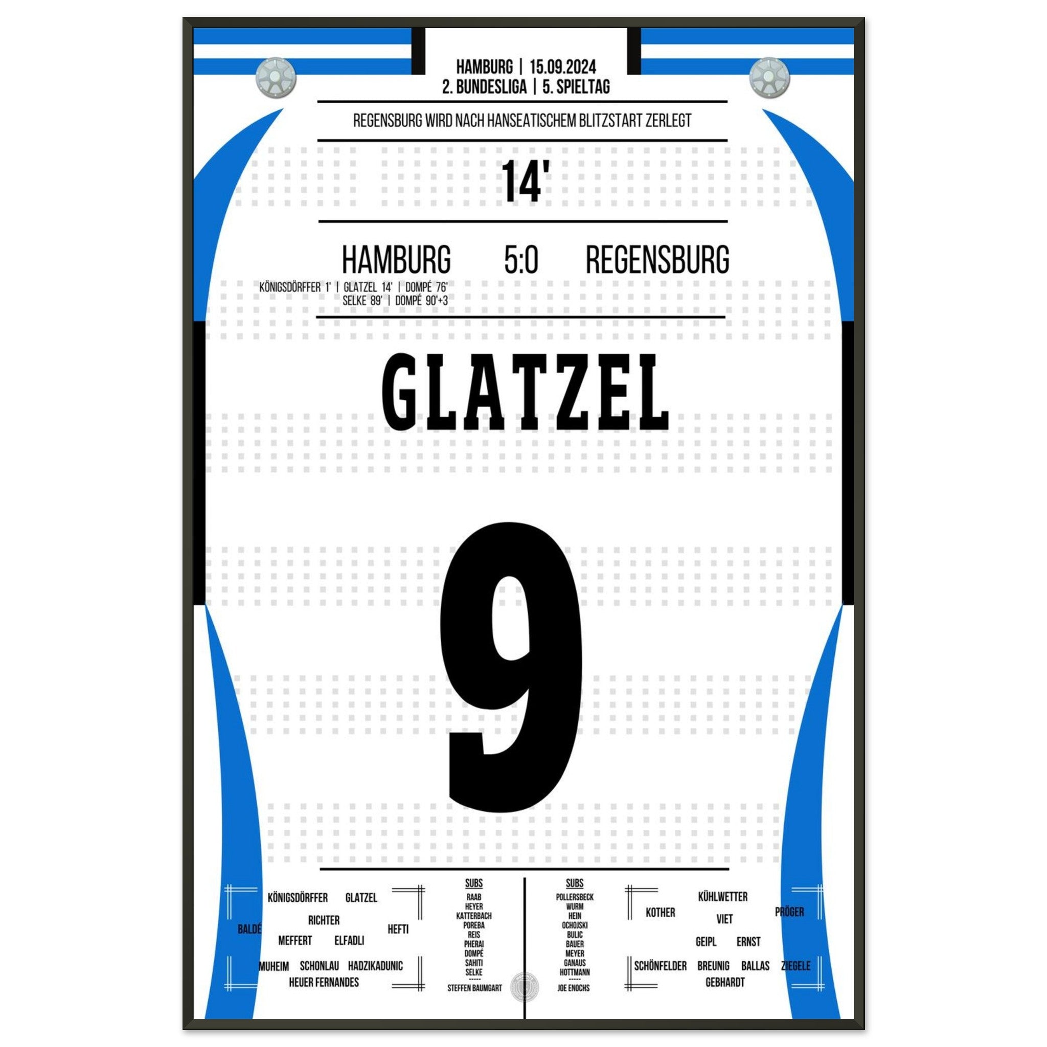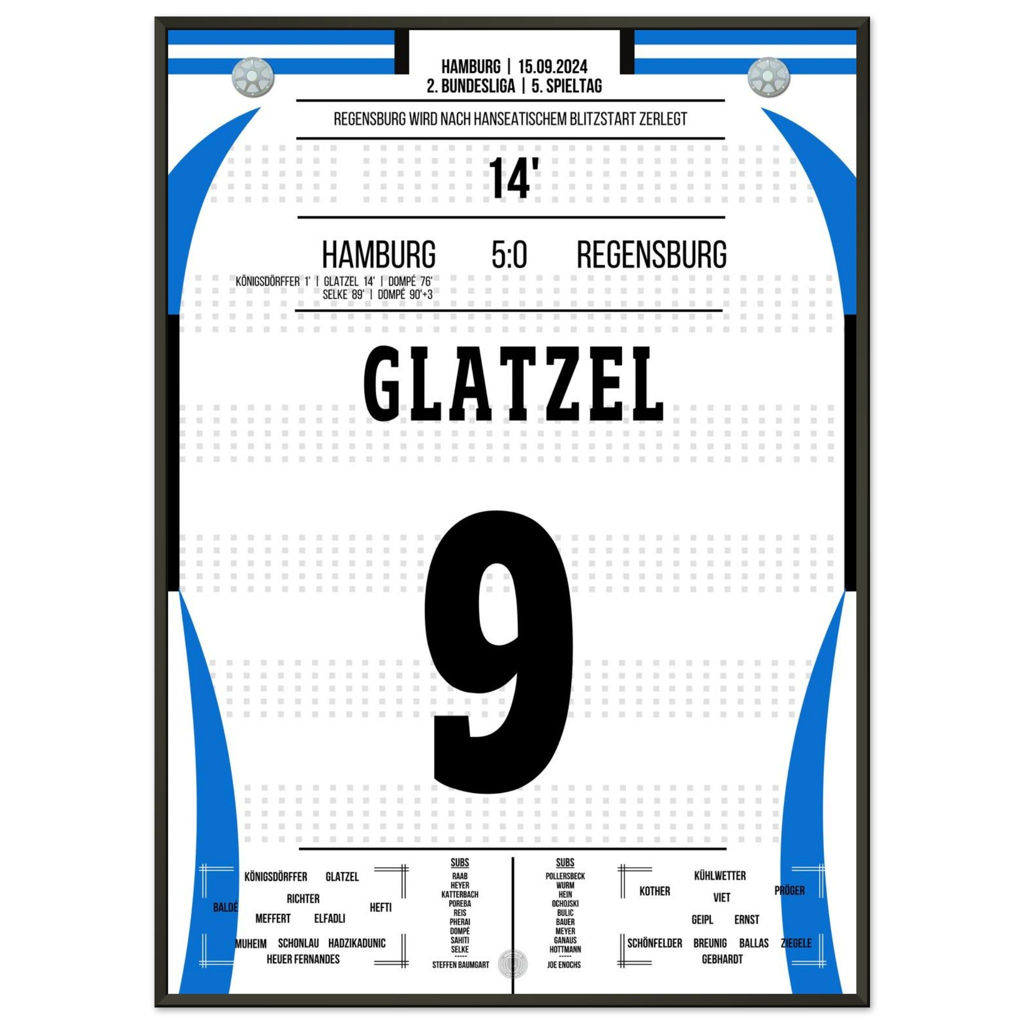 Glatzel scores in Hamburg's crushing victory against Regensburg.