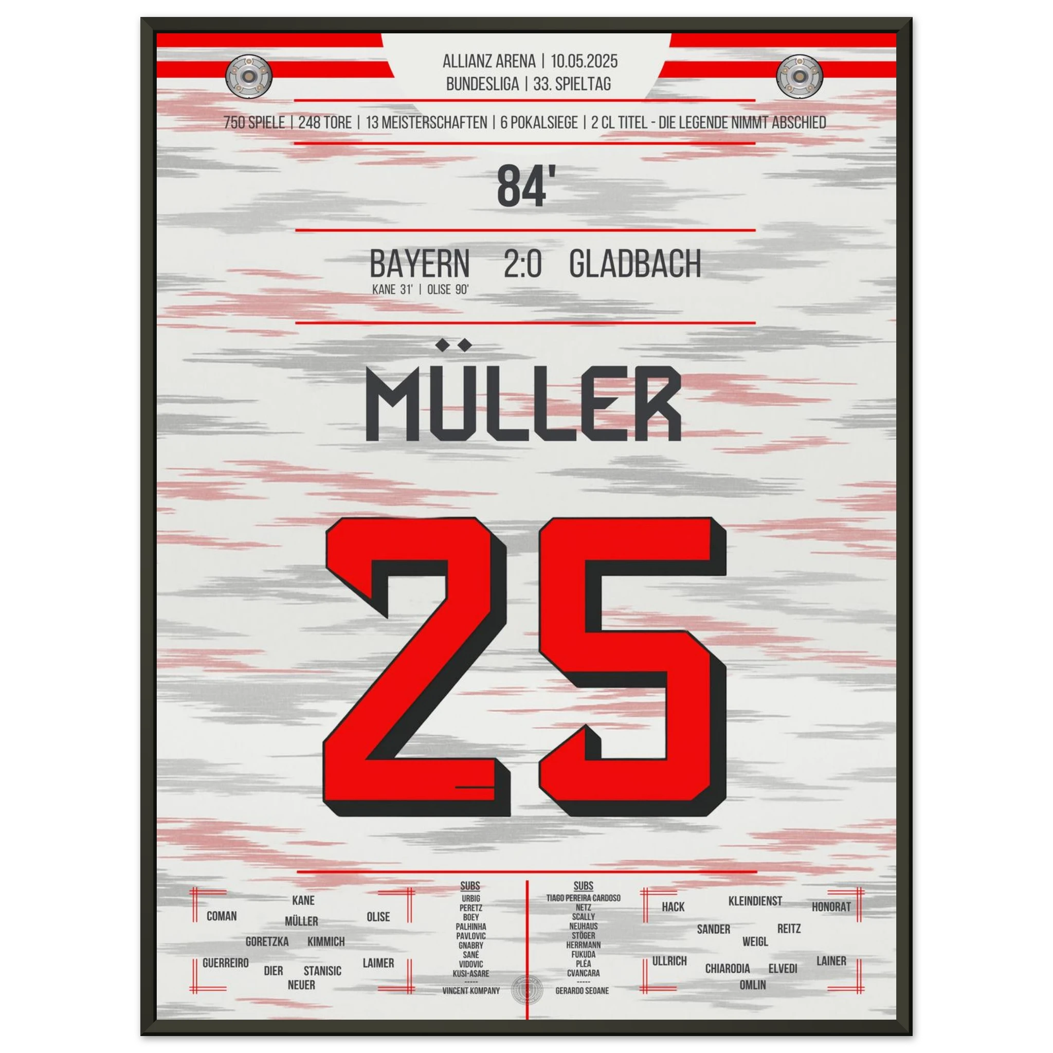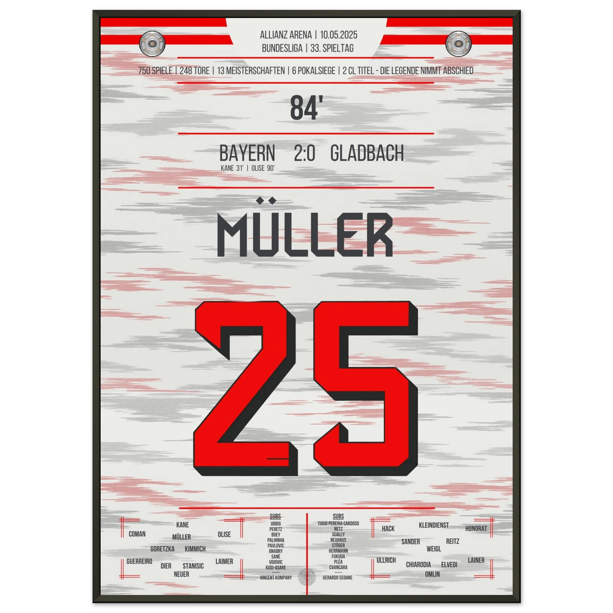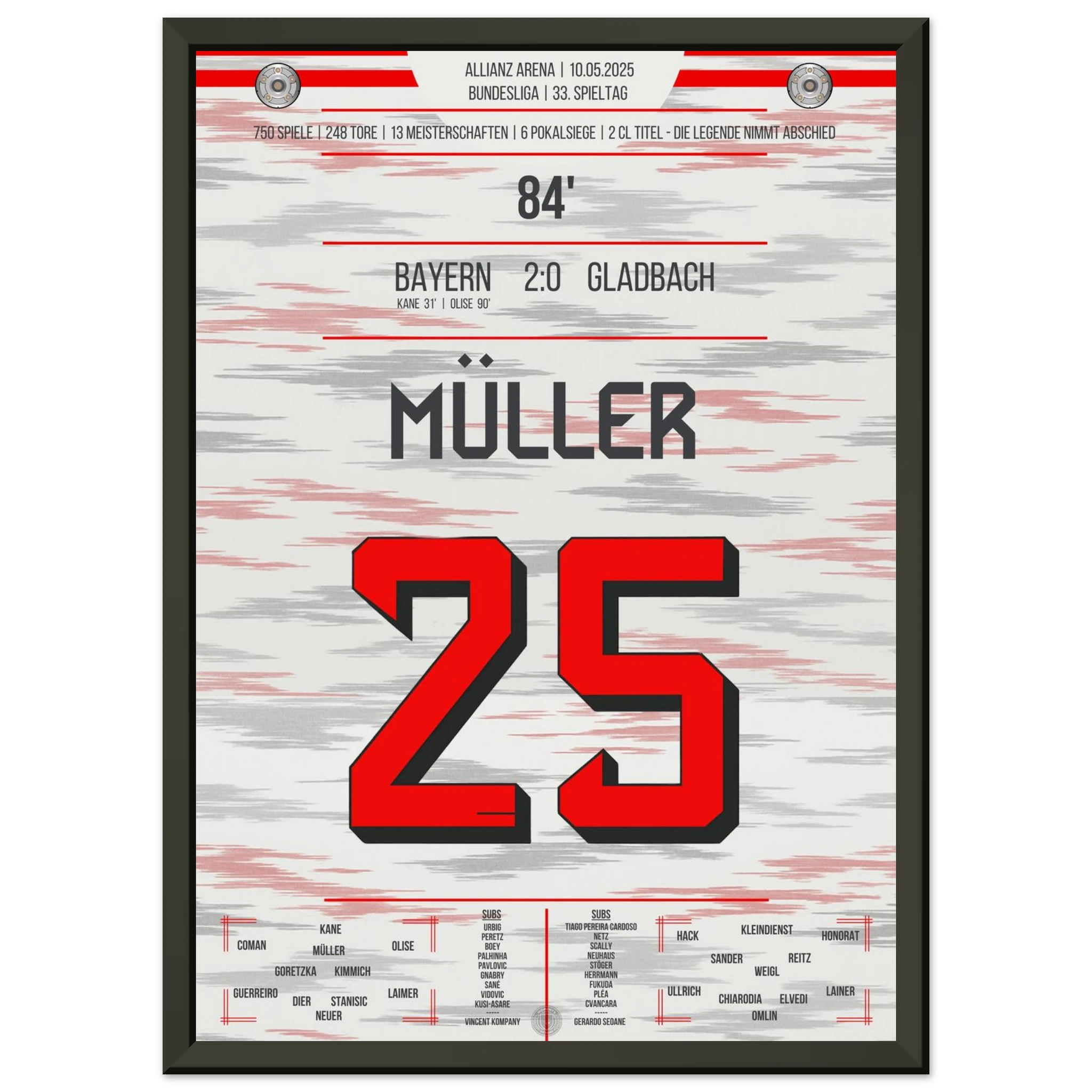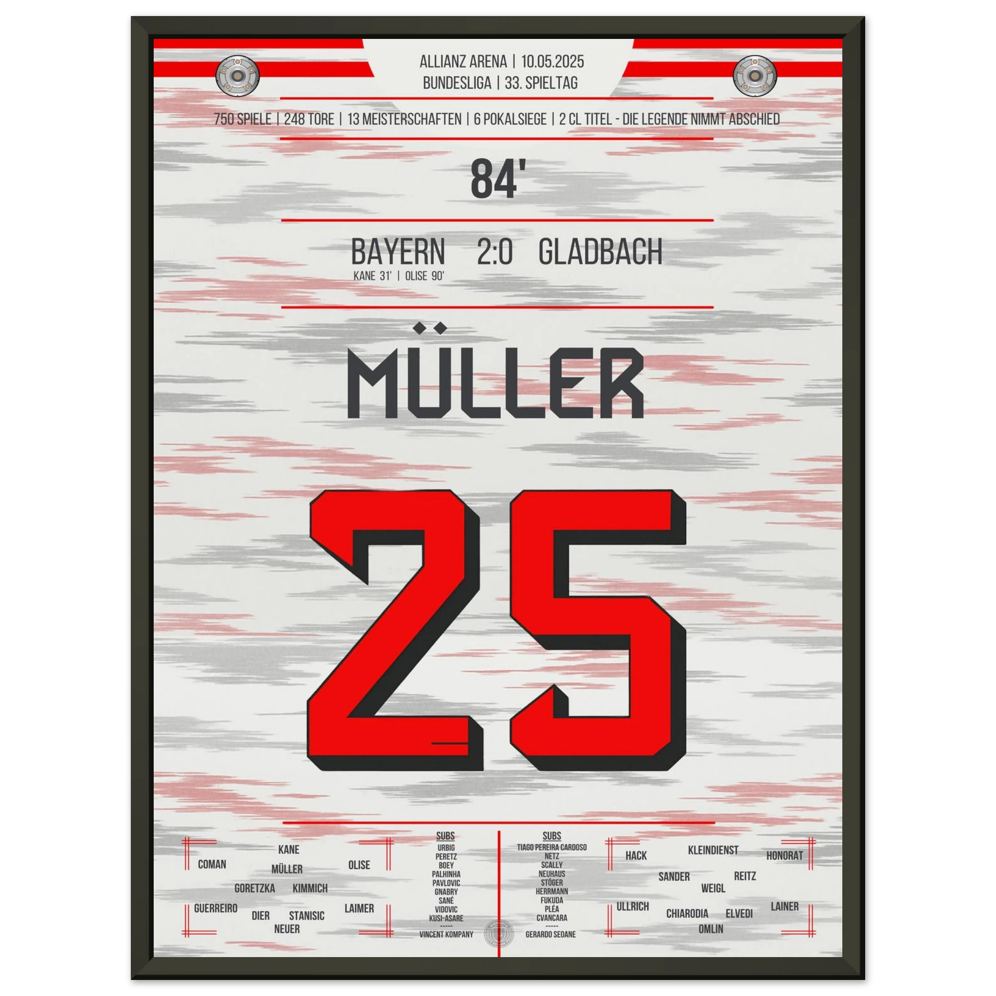 Müller trifft in der 84. Minute und setzt damit ein emotionales Zeichen in seinem Abschiedsspiel. Mit diesem Tor krönt er seine Karriere und sorgt für einen unvergesslichen Moment im Stadion.